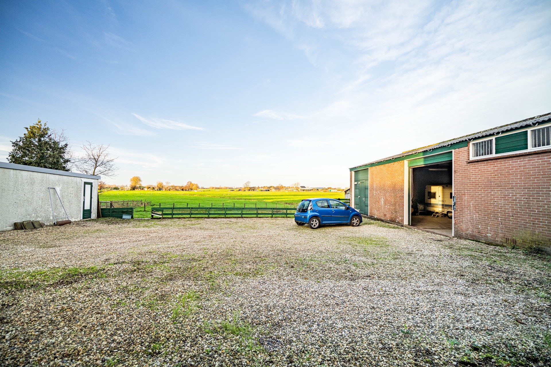 Op het perceel bevinden zich twee garages en een enorme loods. Deze loods is multifunctioneel inzetbaar: ideaal voor beroepsmatig gebruik, een hobbyruimte, werkplaats of opslag – hier kan vrijwel alles. Een groot deel van het perceel bestaat uit grasland, dat ooit is bijgekocht. Perfect voor het houden van paarden, schapen of andere hobbydieren. Achter de loods ligt bovendien nog een royaal stuk grond dat zich uitstekend leent voor een moestuin of extra buitenruimte.