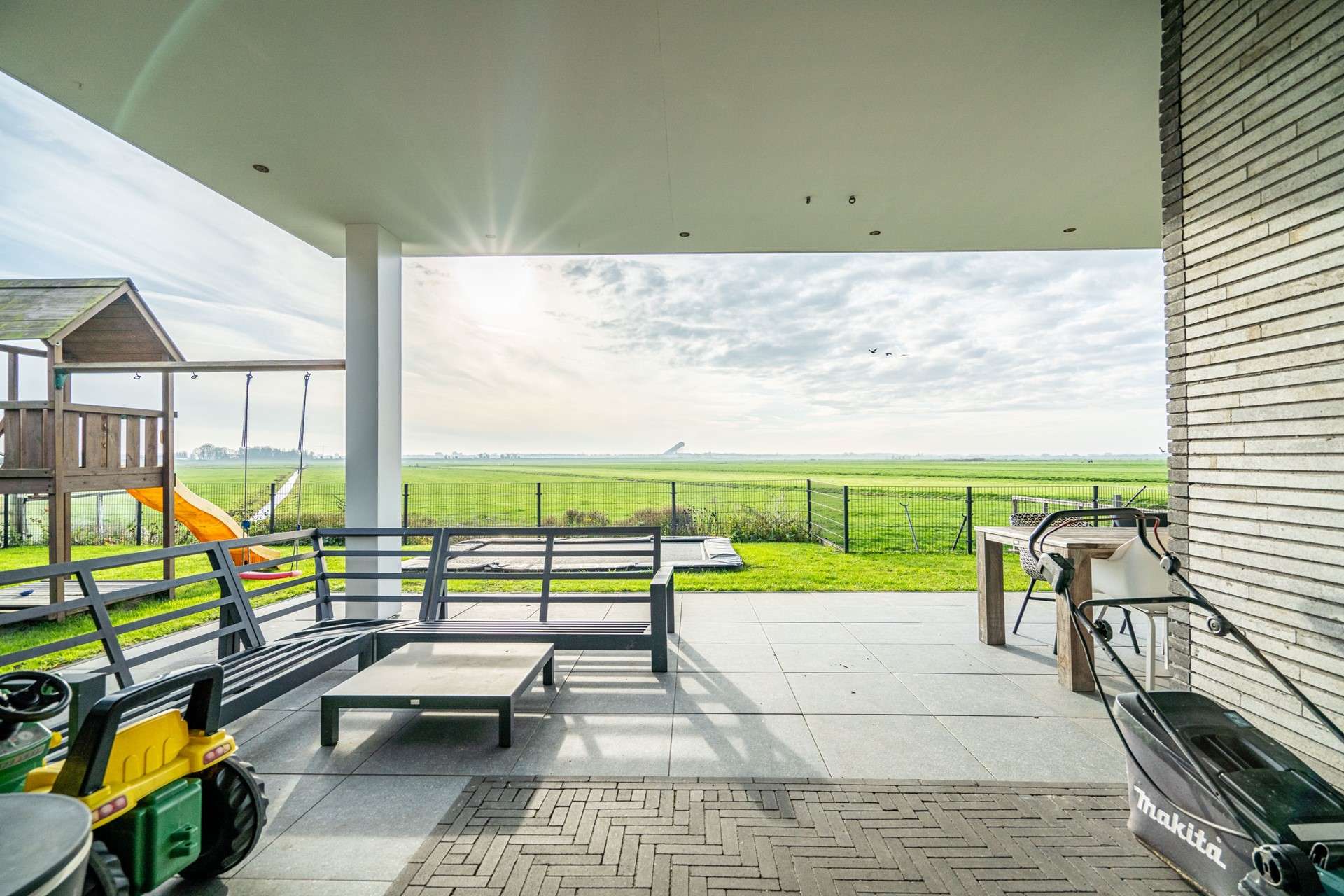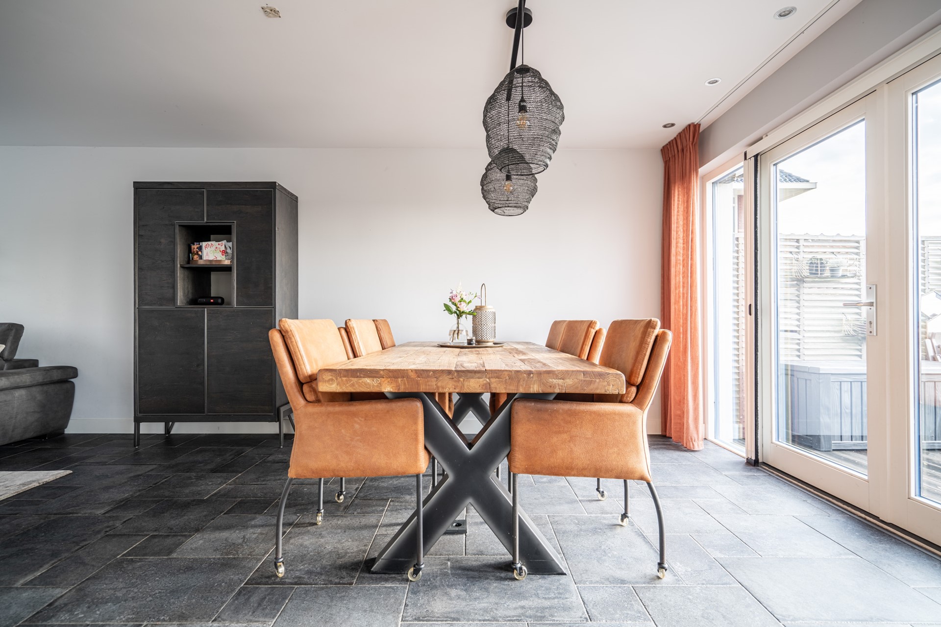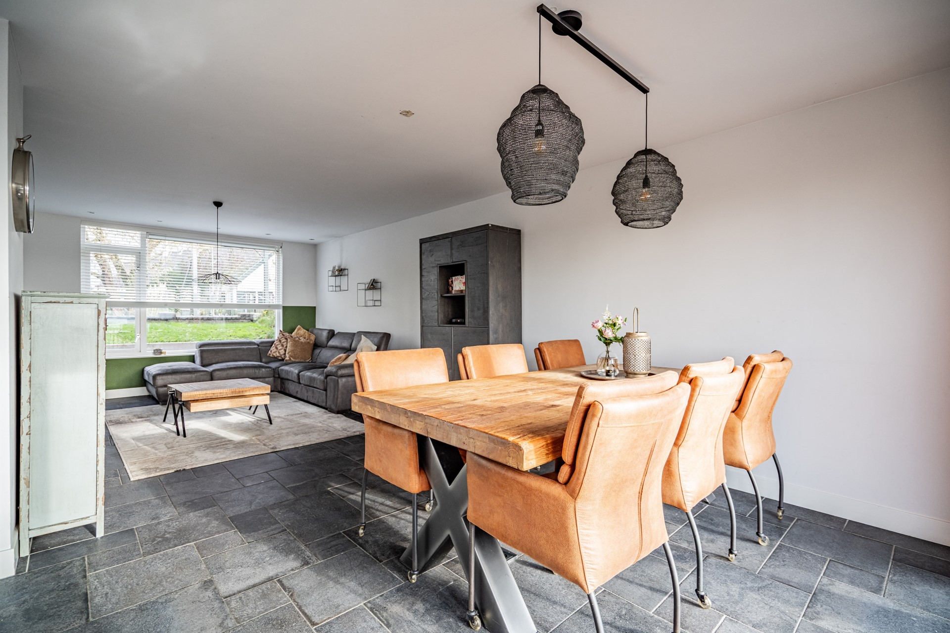 Een heerlijk lichte woonkamer met fantastisch vrij uitzicht op de weilanden aan de achterzijde.