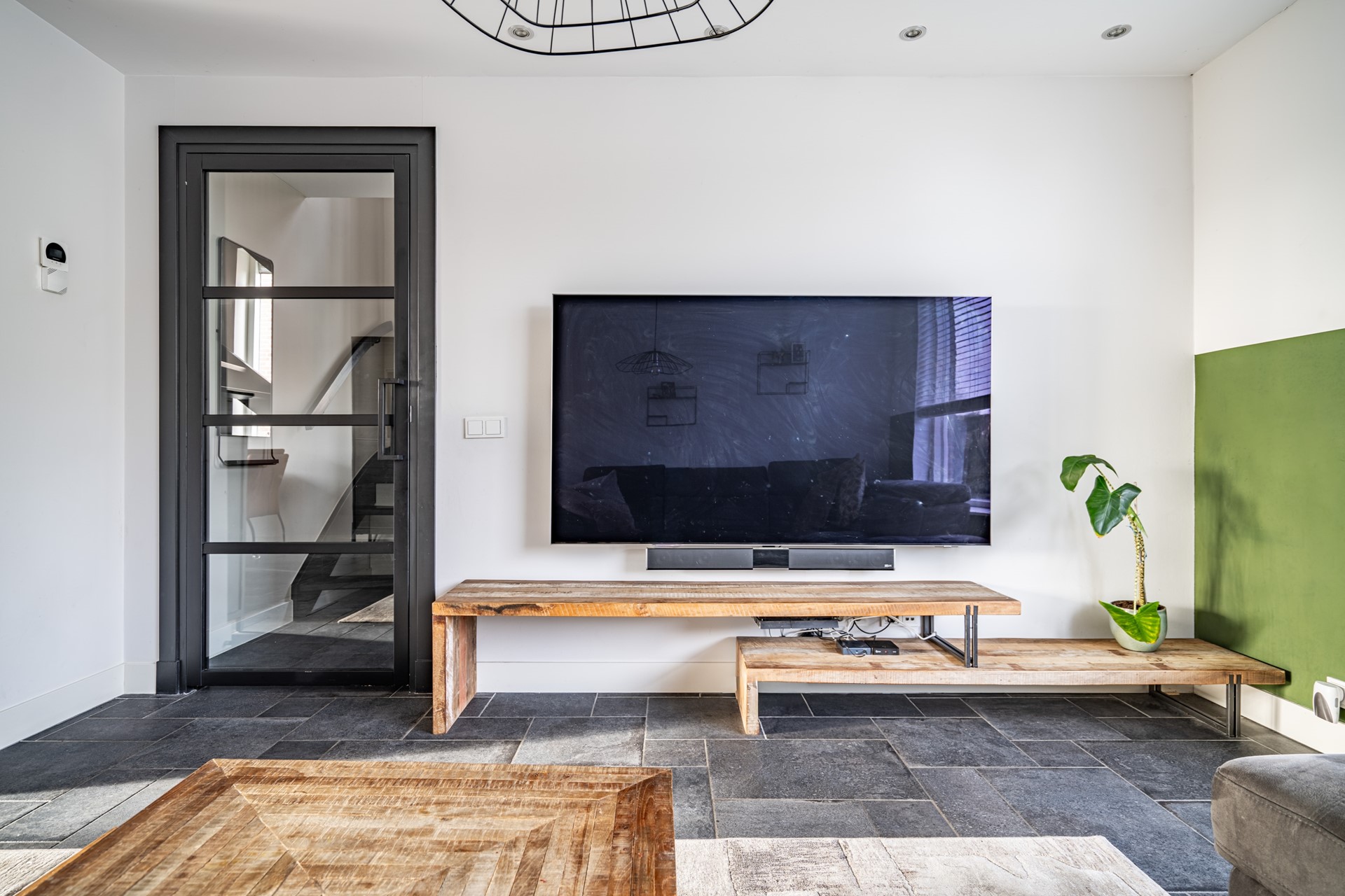 Op de begane grond ligt een mooie plavuizenvloer voorzien van vloerverwarming.