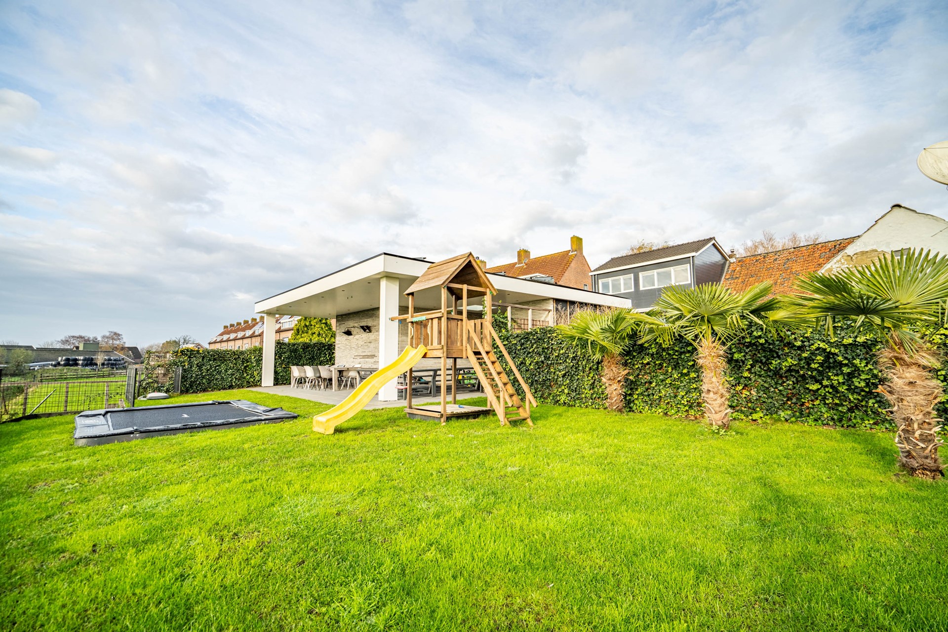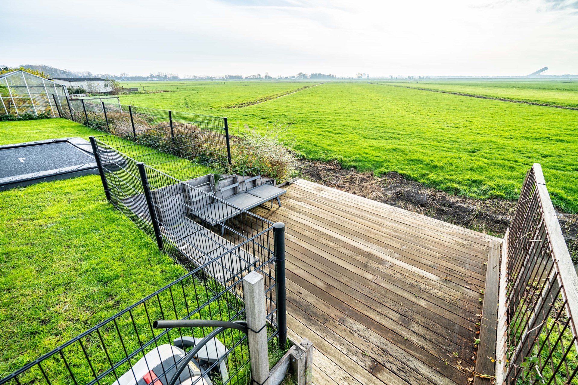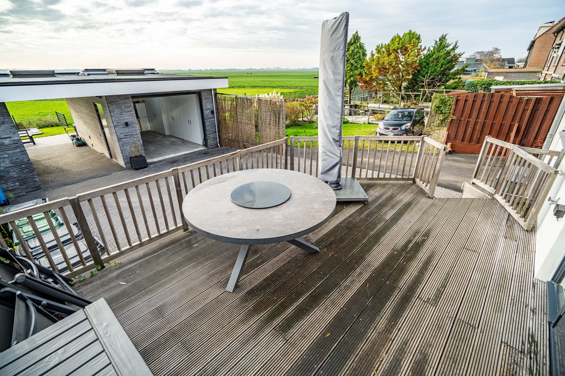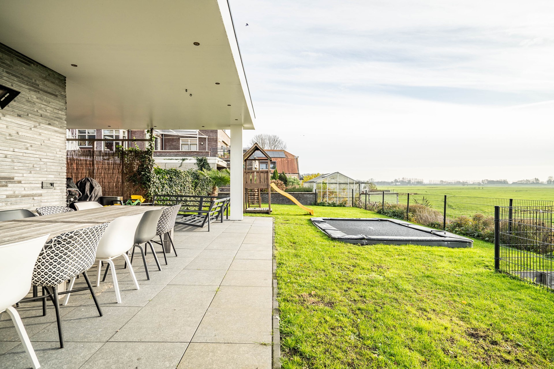 Via de openslaande deuren bereikt u het royale terras gelegen op het zuiden. Een trap leidt u naar de riante achtertuin.