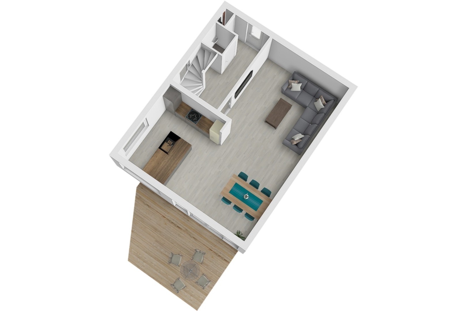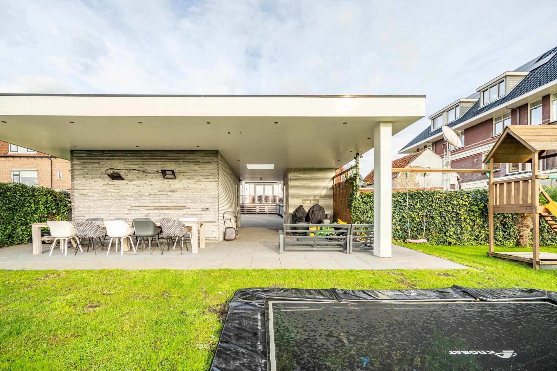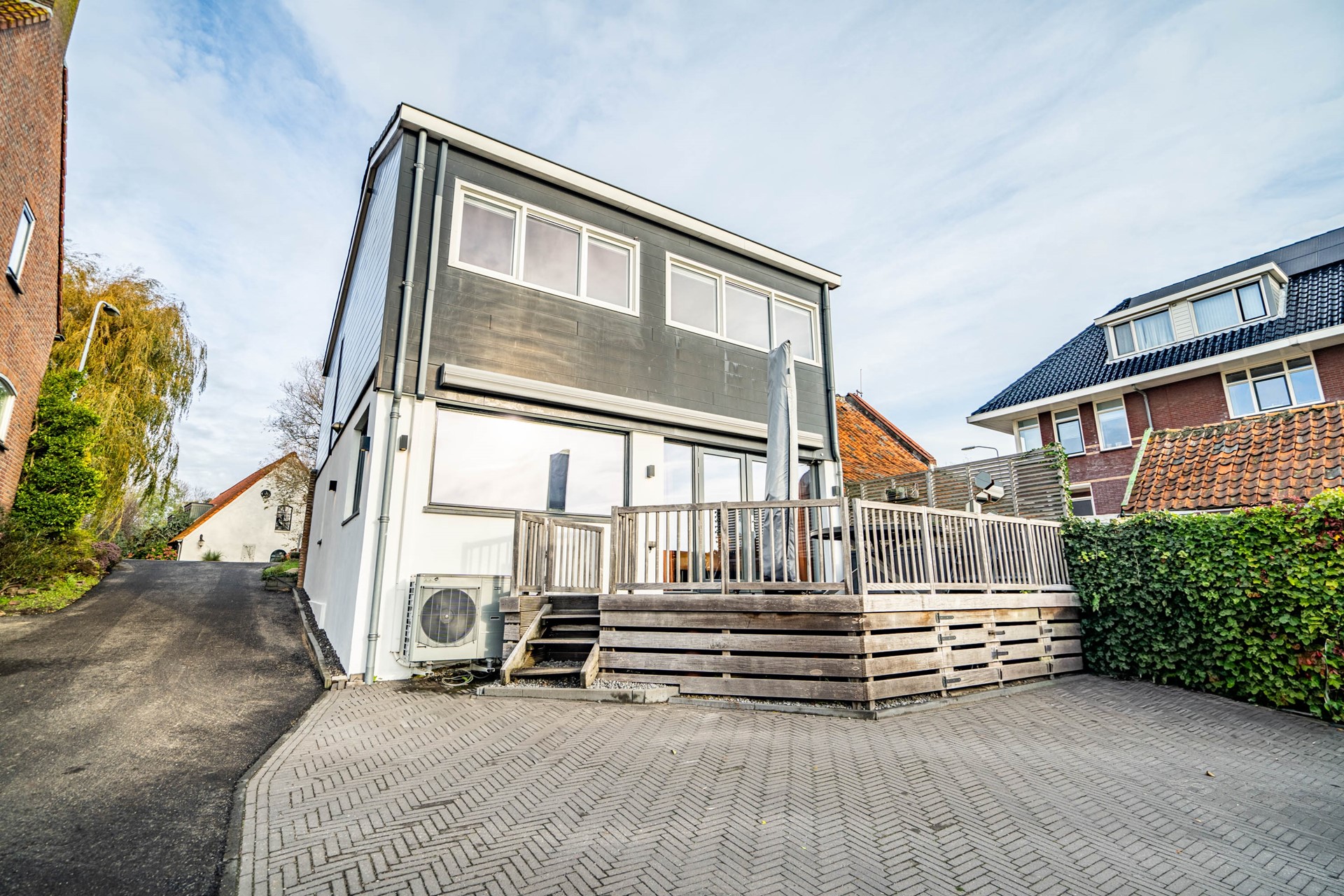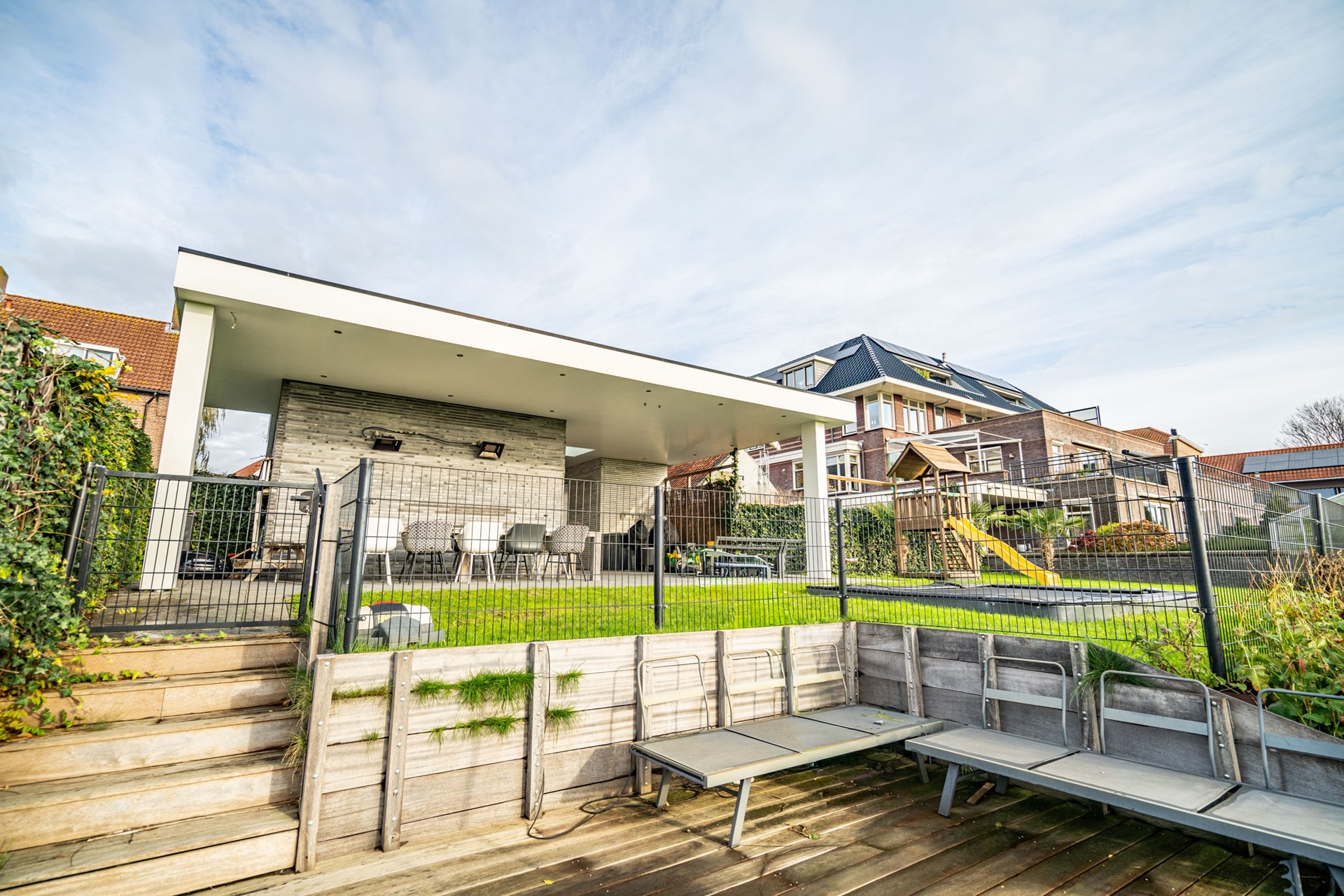 Via de openslaande deuren bereikt u het royale terras gelegen op het zuiden. Een trap leidt u naar de riante achtertuin.