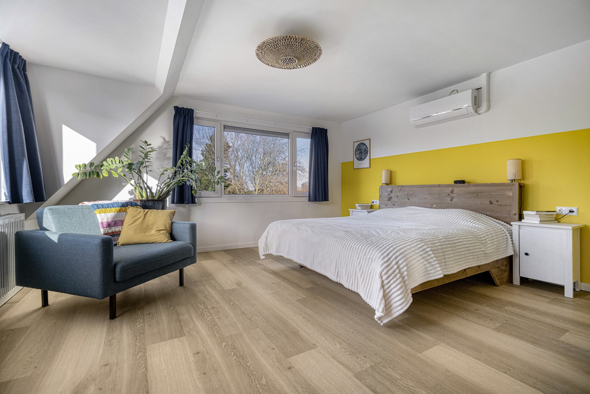 De slaapkamer aan de voorzijde is eveneens royaal en kan ook uitstekend als hoofdslaapkamer dienen. Ook hier is airconditioning aanwezig en geniet u van een adembenemend uitzicht over de weilanden richting Zoetermeer. Vanuit deze kamer is via een vlizotrap de zolder bereikbaar.