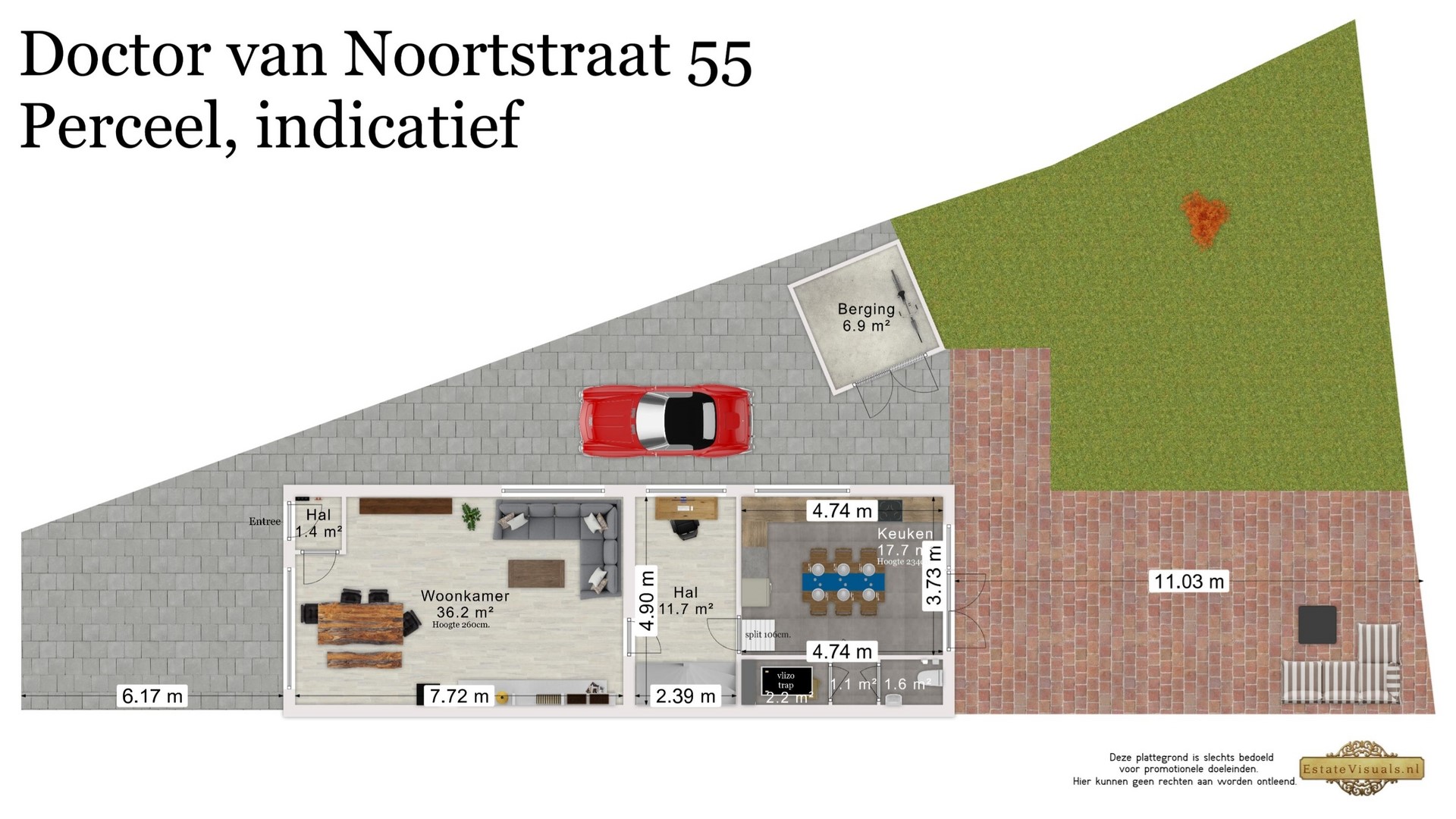 U bereikt de woning via een charmant bruggetje, waarna u op eigen terrein kunt parkeren. In de praktijk wordt de woning vaak via de achterzijde betreden, maar wij nemen u – zoals het hoort – mee via de voordeur.