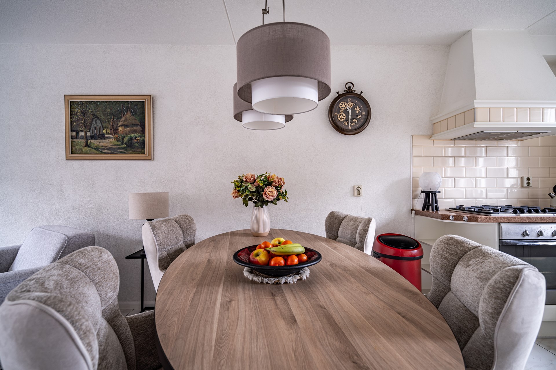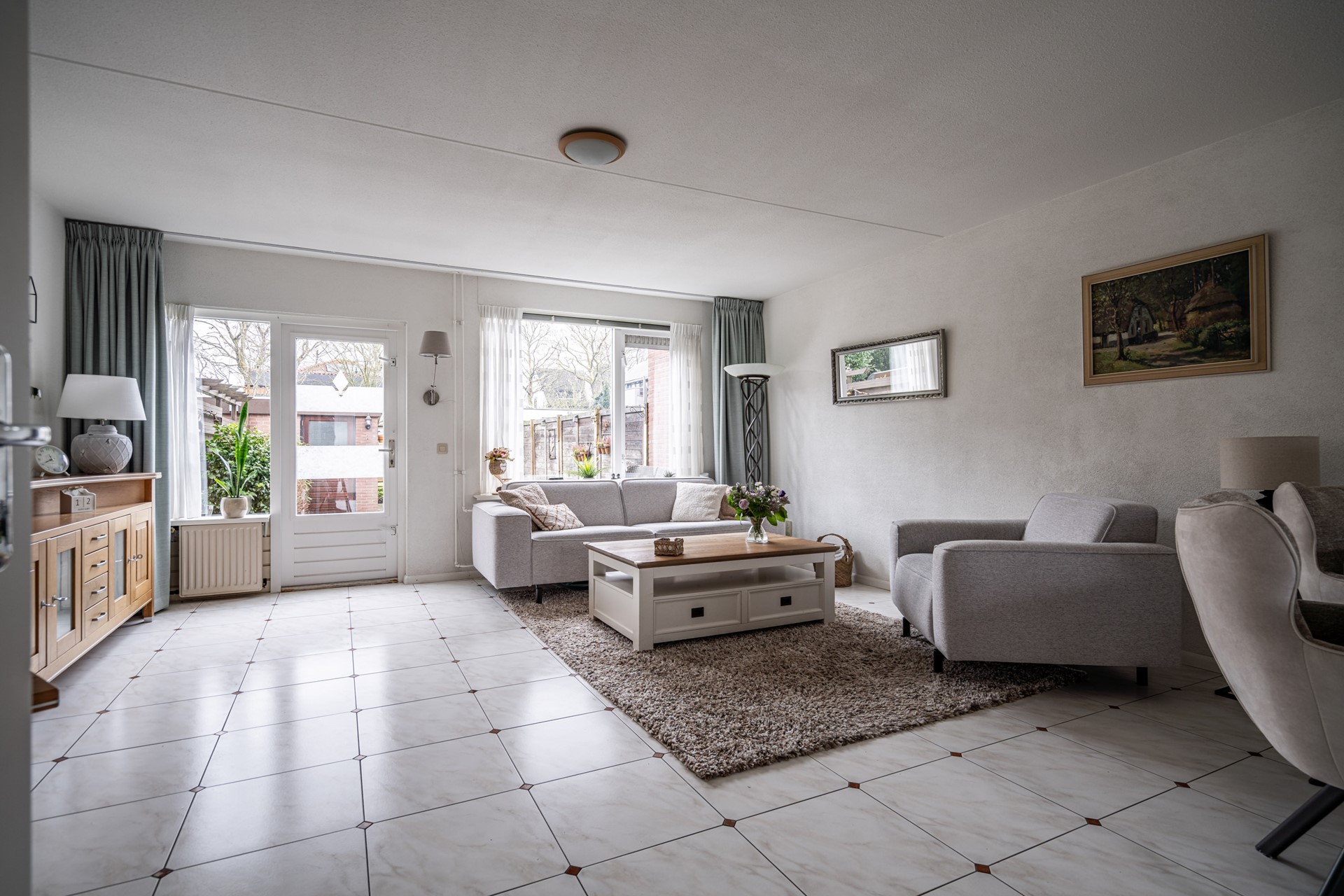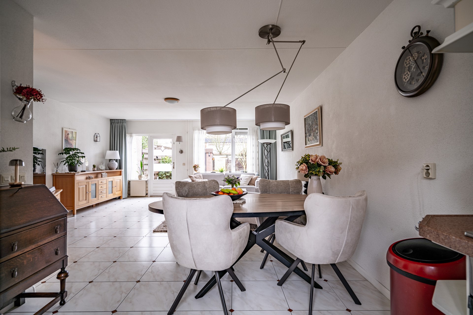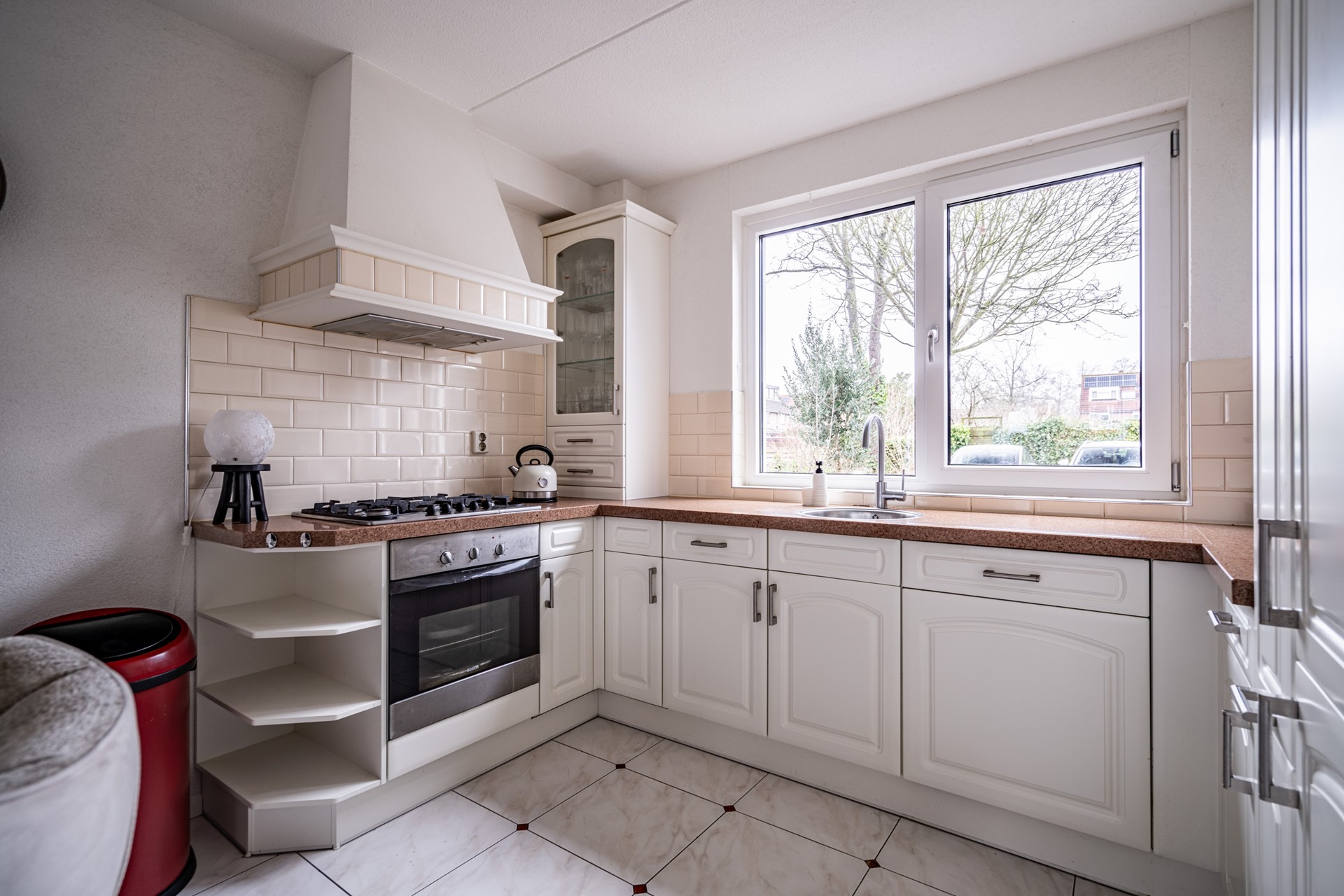 Bij binnenkomst ervaar je direct de prettige indeling en het ruime gevoel. De woning beschikt over een royale woon- en eetkamer met een open U-vormige keuken, compleet uitgerust met diverse inbouwapparatuur zoals een kookplaat, afzuigkap, oven, vaatwasser (2025) en een koelkast met vriezer (2025). Via de woonkamer heb je toegang tot de ruime achtertuin met stenen berging en een achterom.