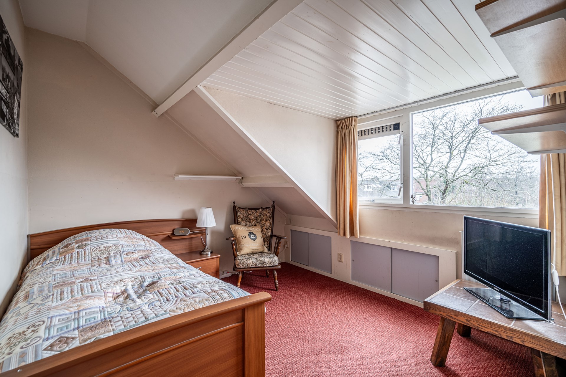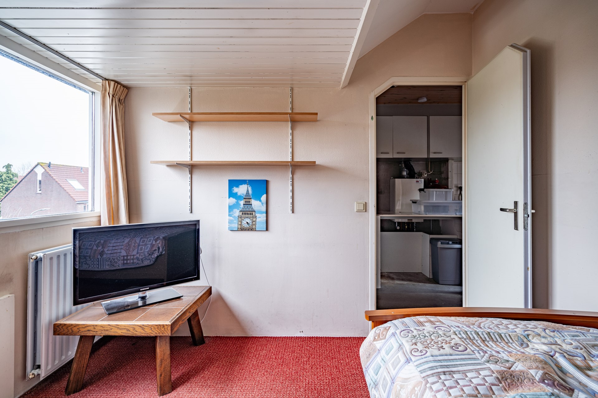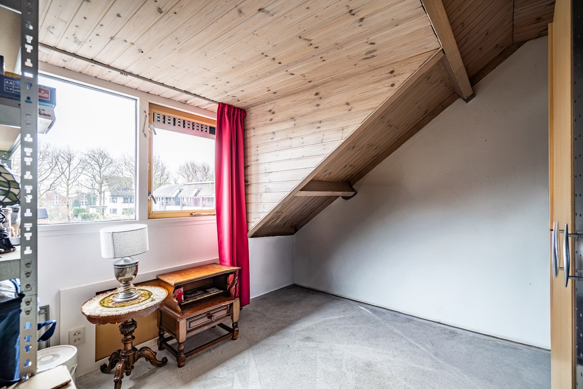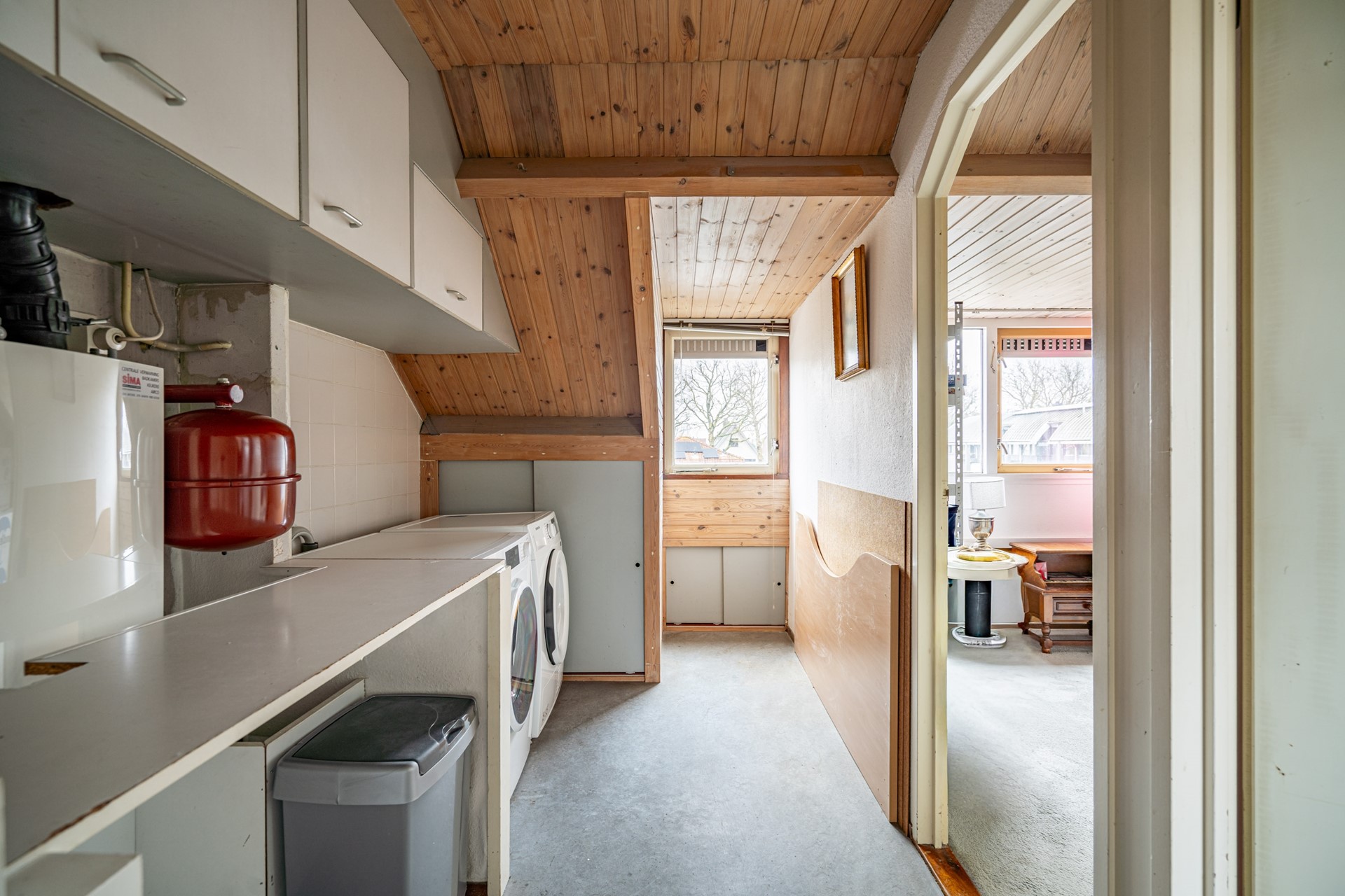 Via een luik is de vliering bereikbaar.