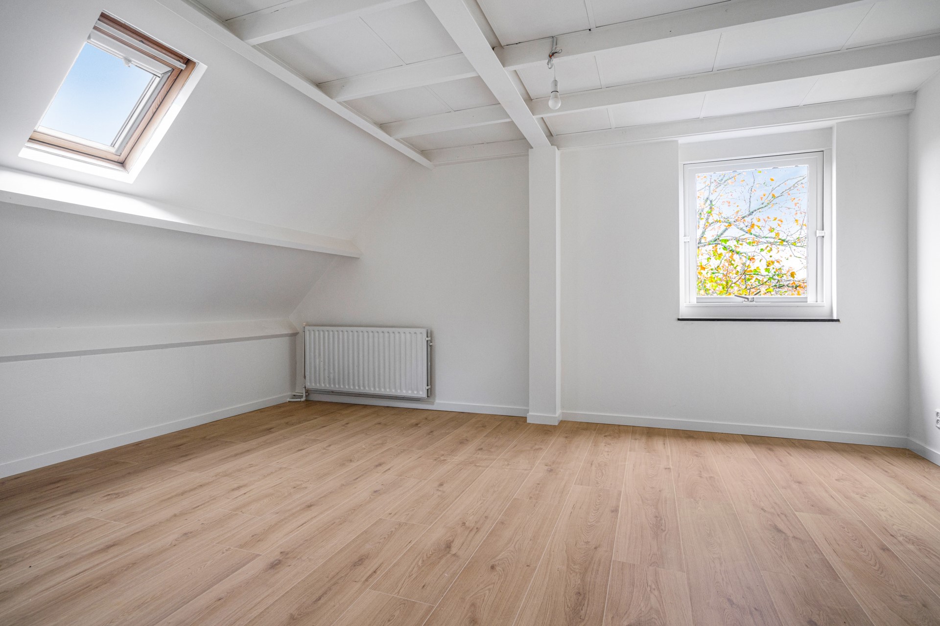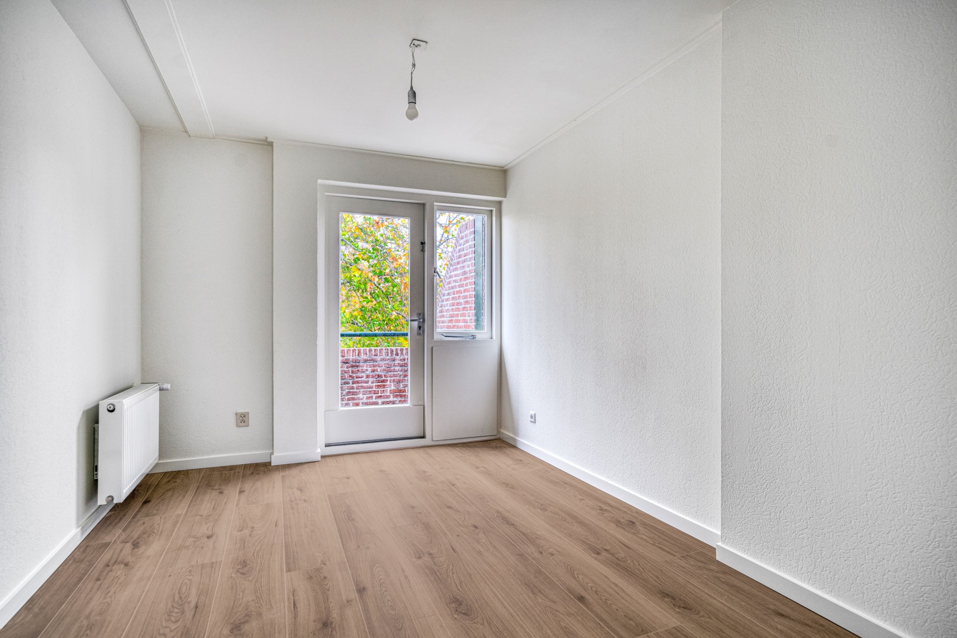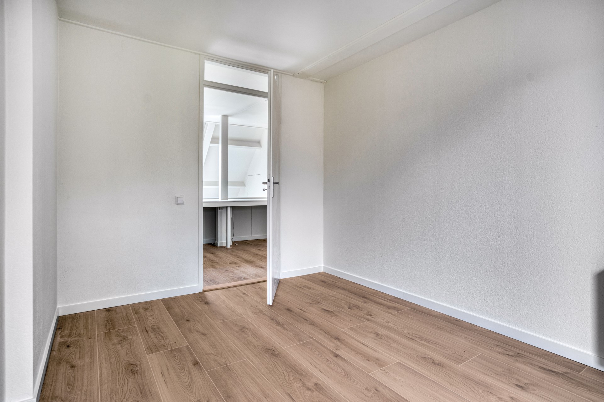 Hier loop je via een royale overloop naar de 2 ruime slaapkamers welke aan de voorzijde liggen. Een van de slaapkamers heeft toegang tot het balkon. Ook in deze kamers ligt een nieuwe laminaatvloer.