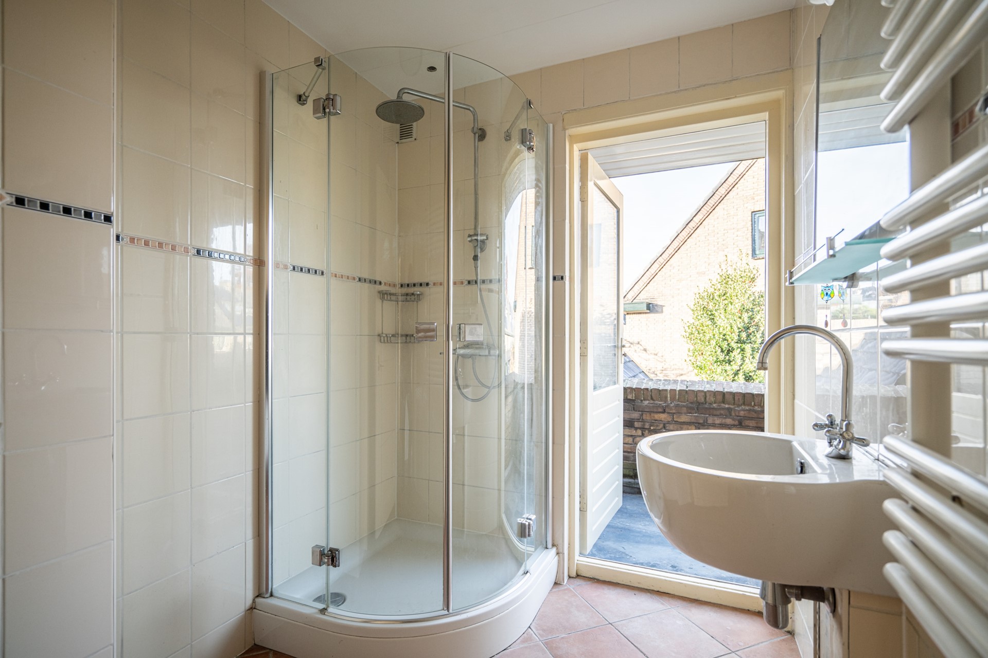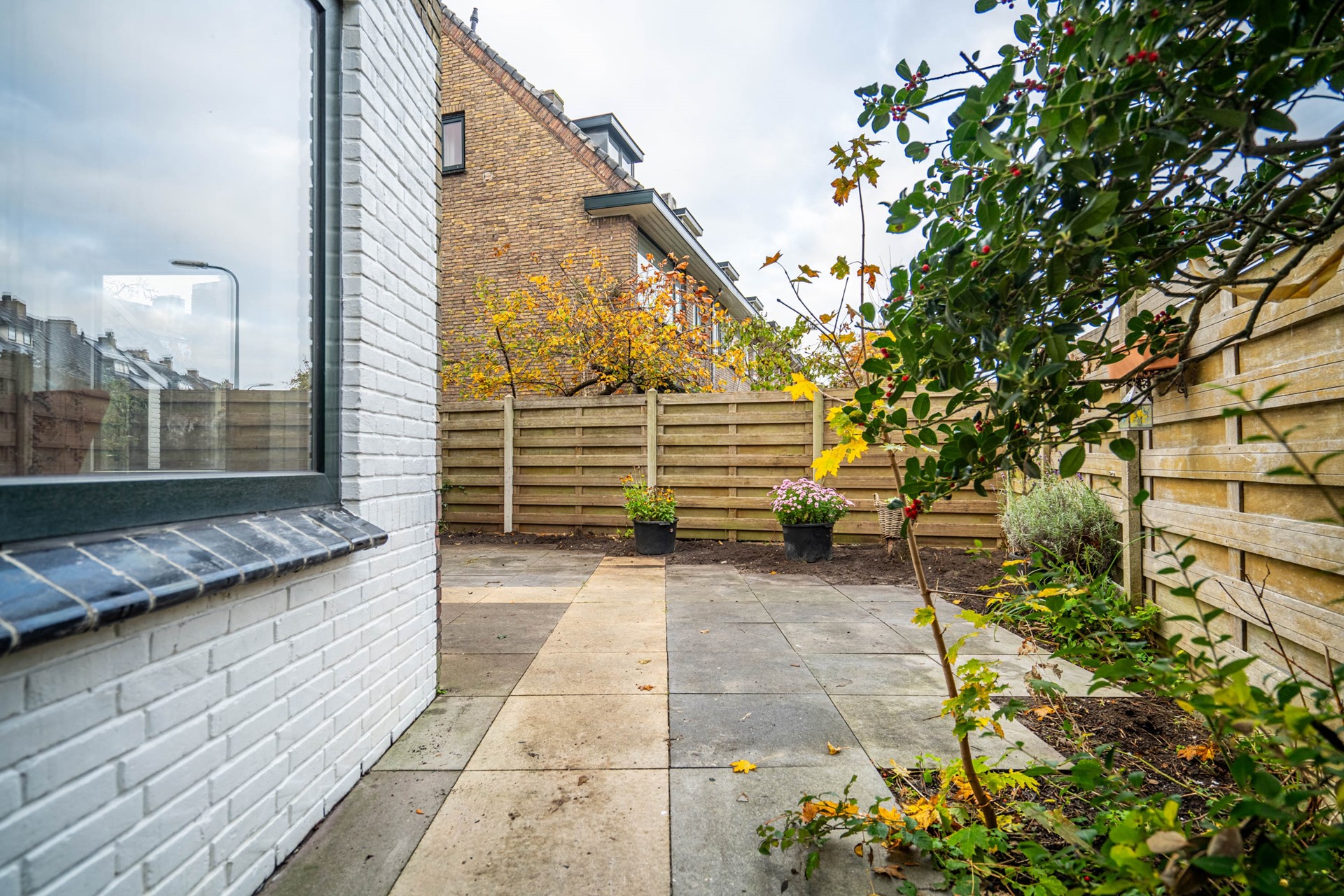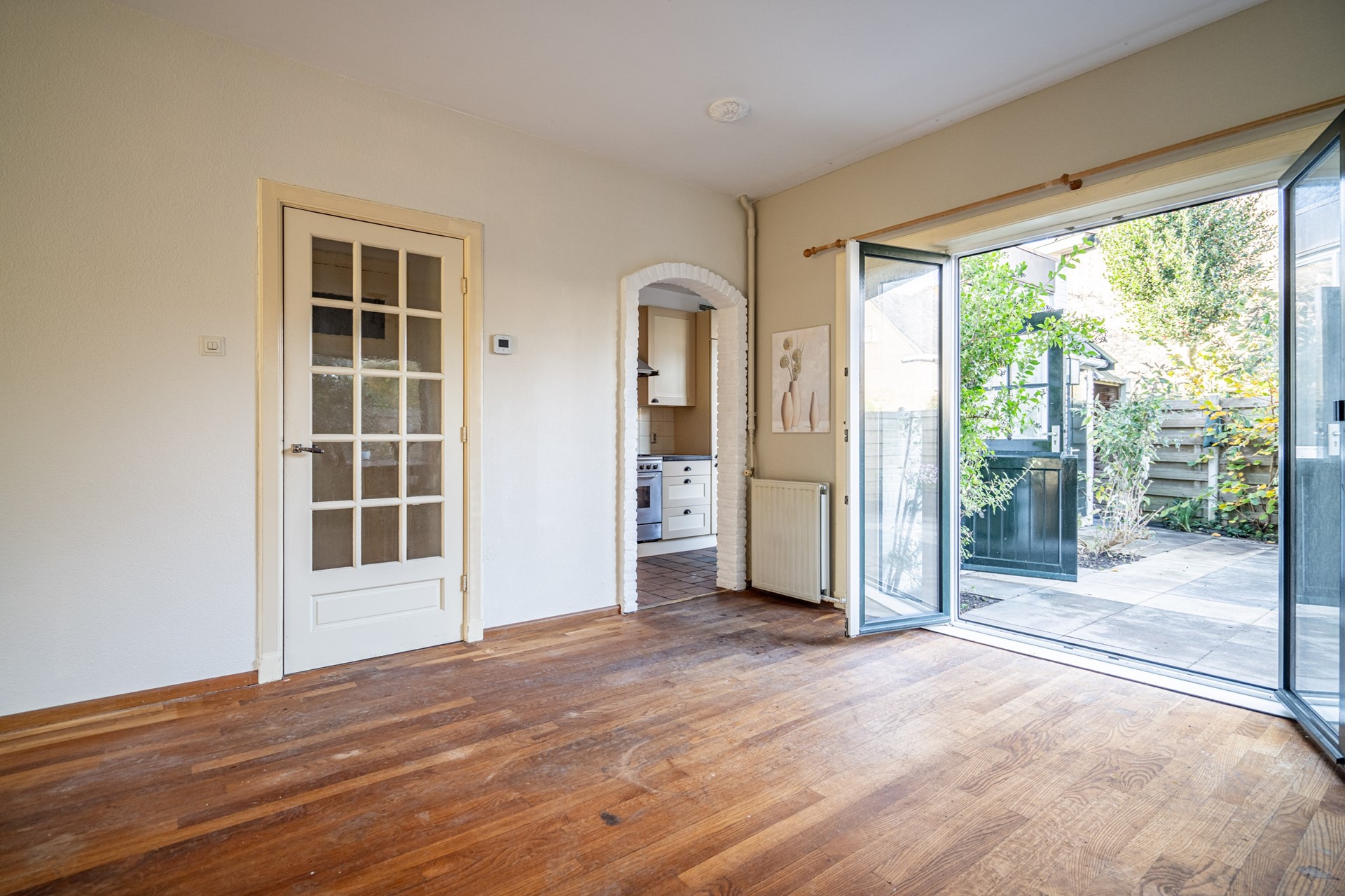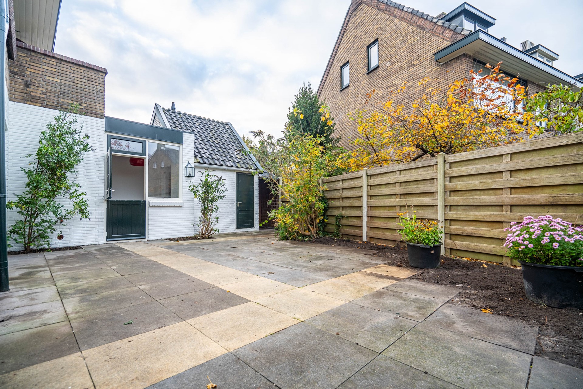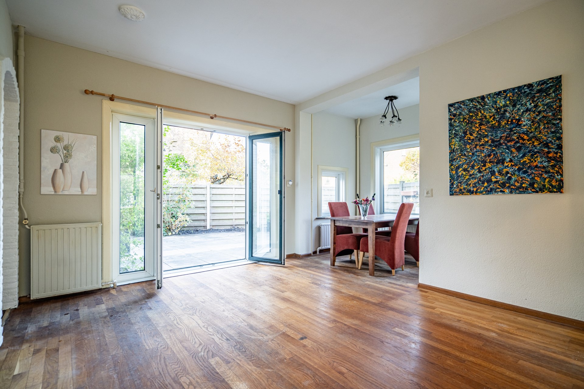 Via openslaande deuren is er toegang tot de tuin, die zowel aan de achterzijde als aan de zijkant van de woning ligt – een heerlijke plek om in alle rust te genieten van de zon.