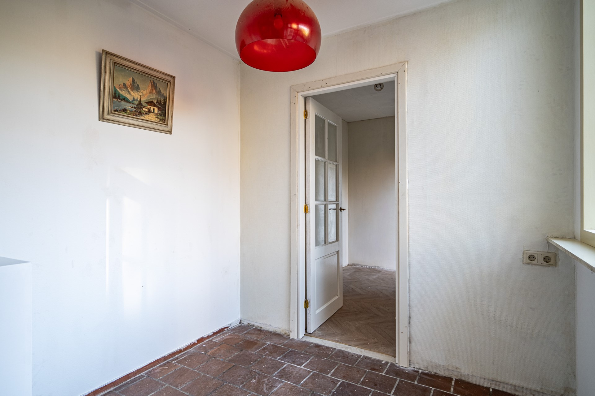 The kitchen at the rear is practically laid out and features a charming barn door leading to the garden. Adjacent is the utility room, which has recently been renovated and insulated with glass wool. This space offers plenty of potential as a laundry room, storage space, or workspace.