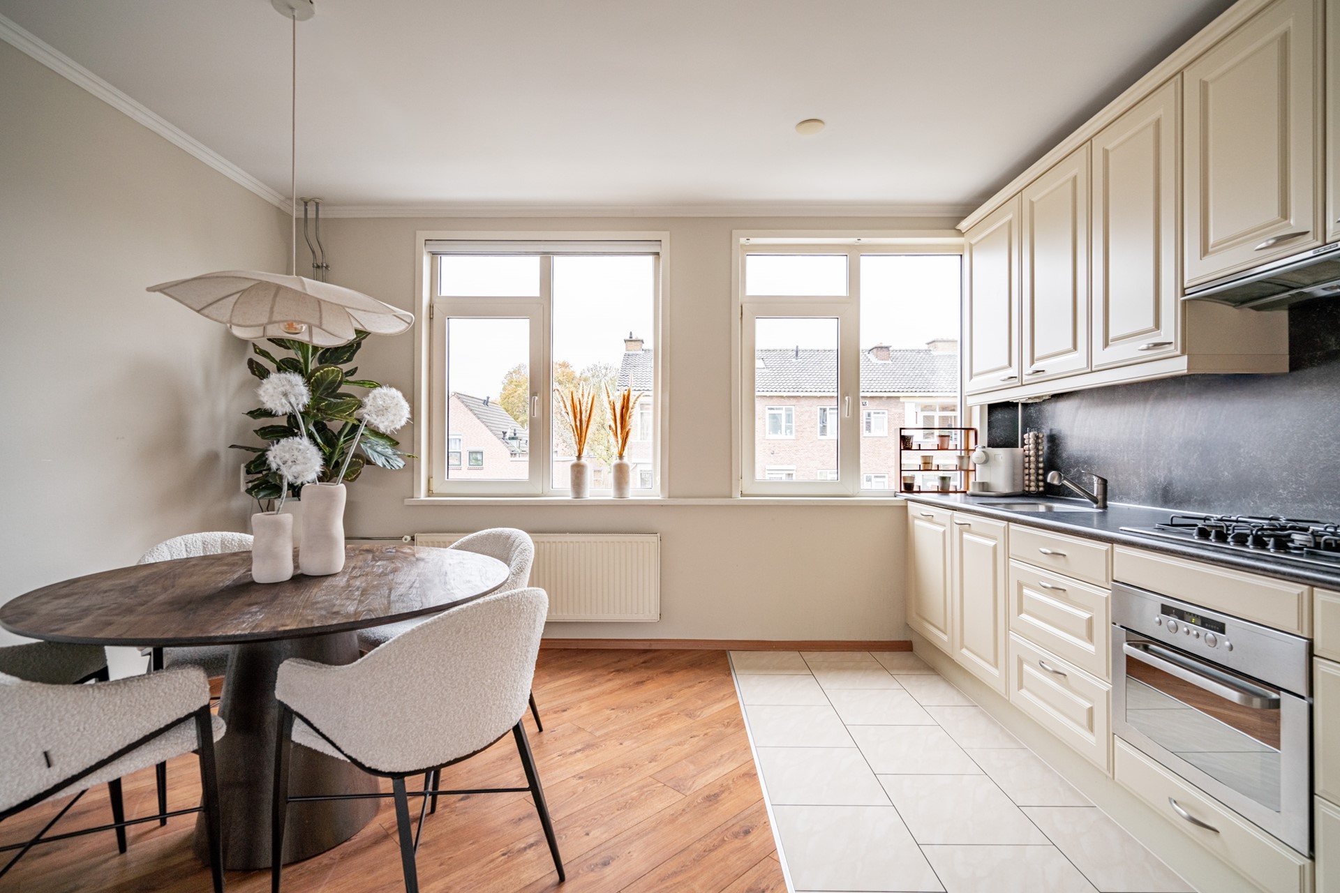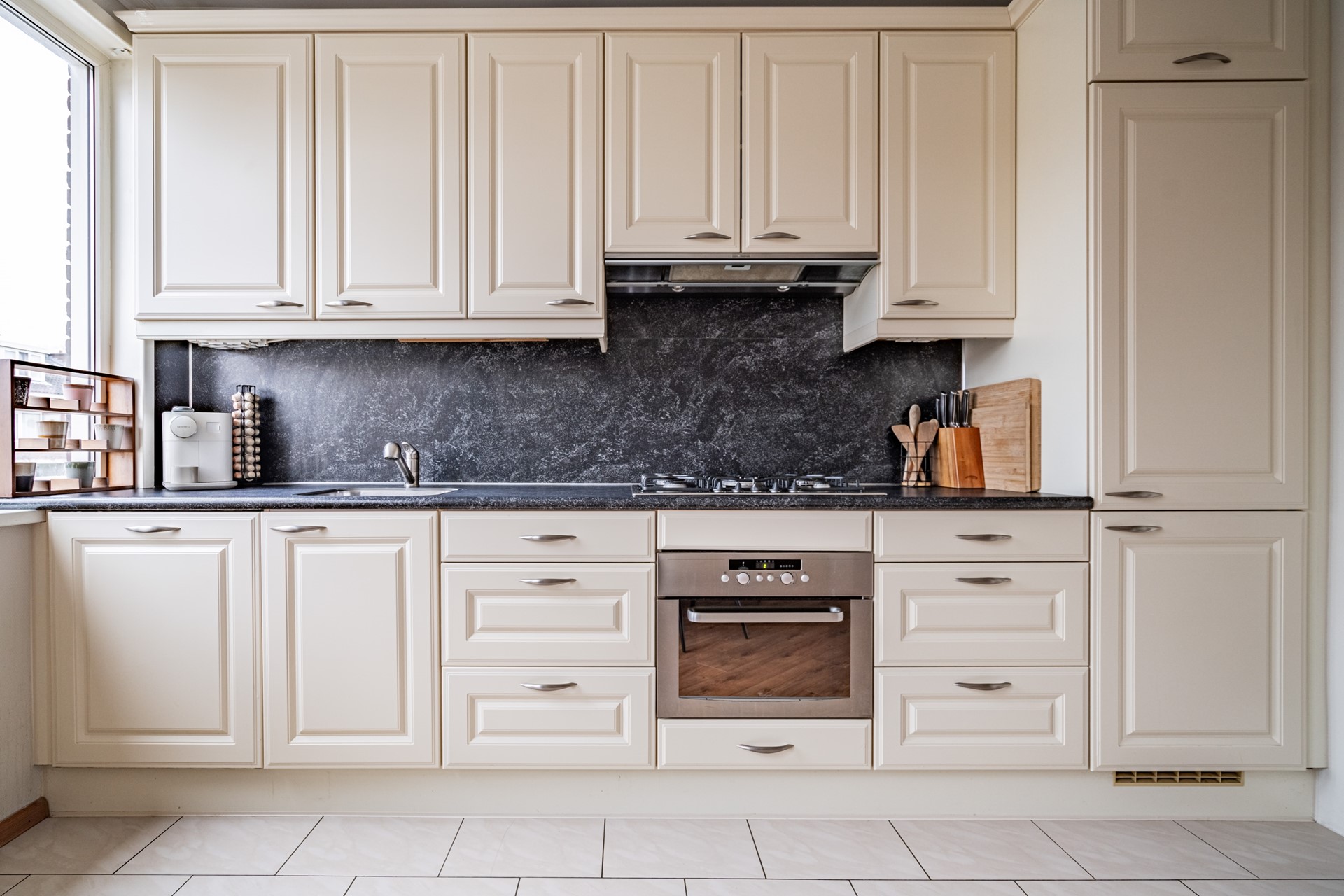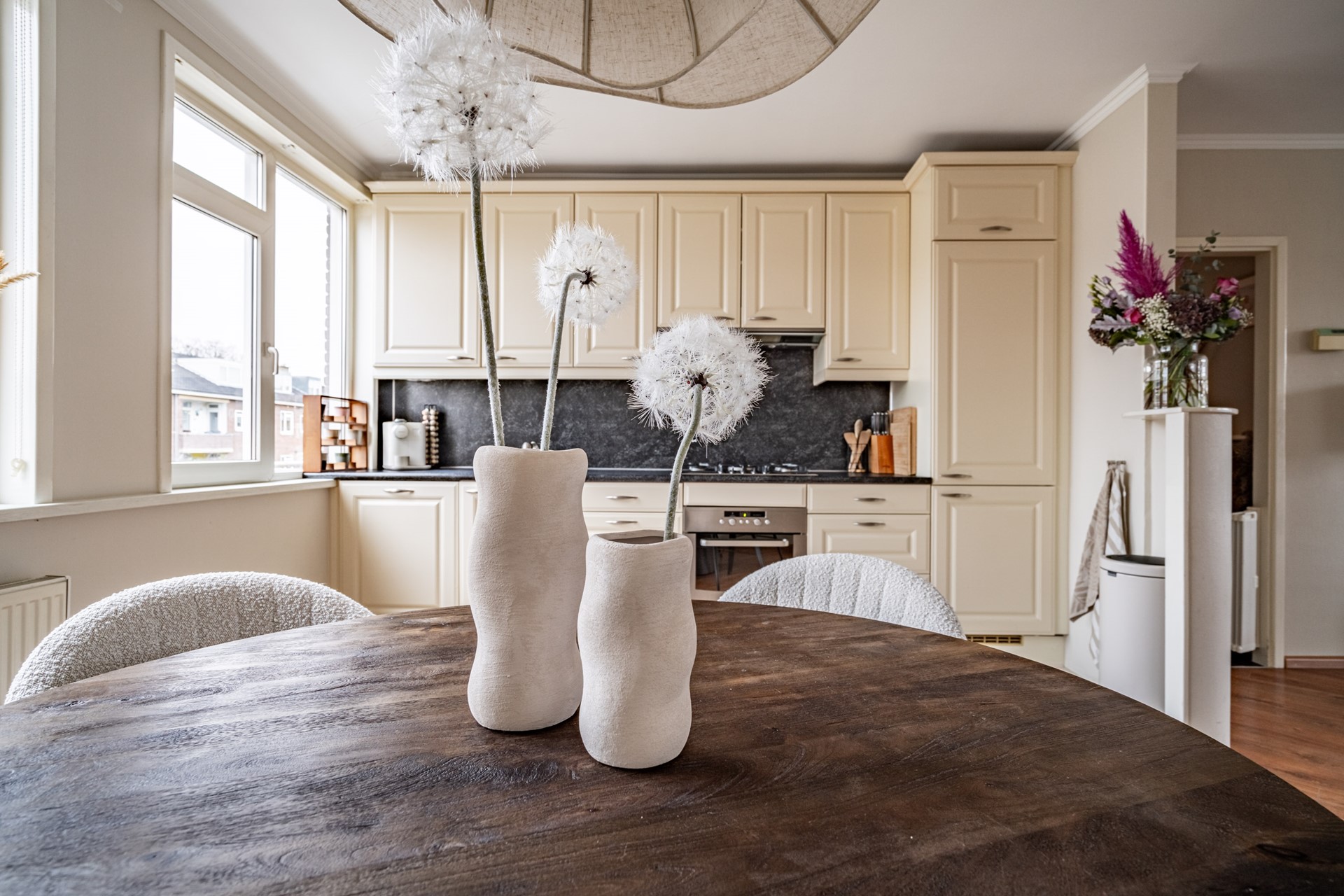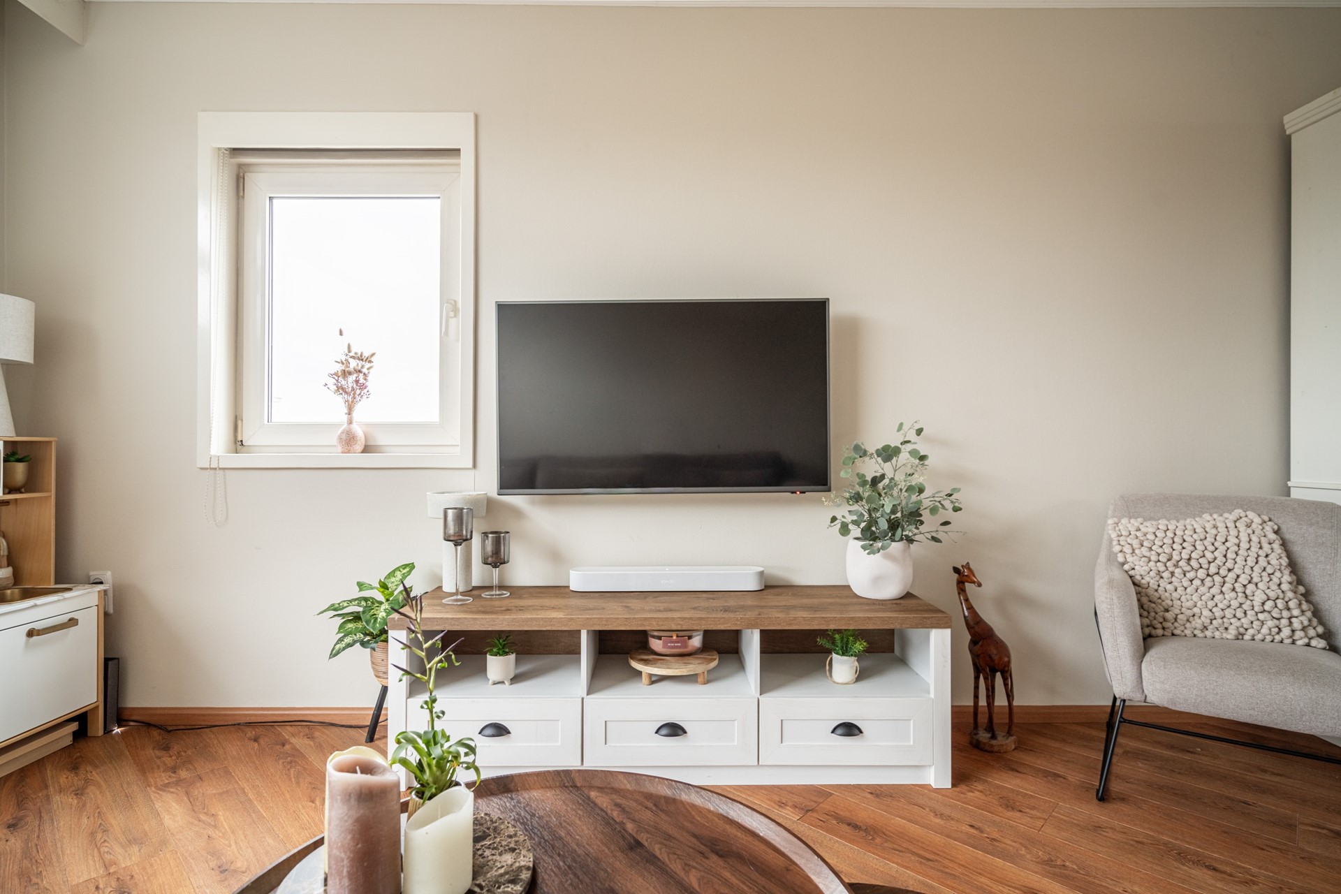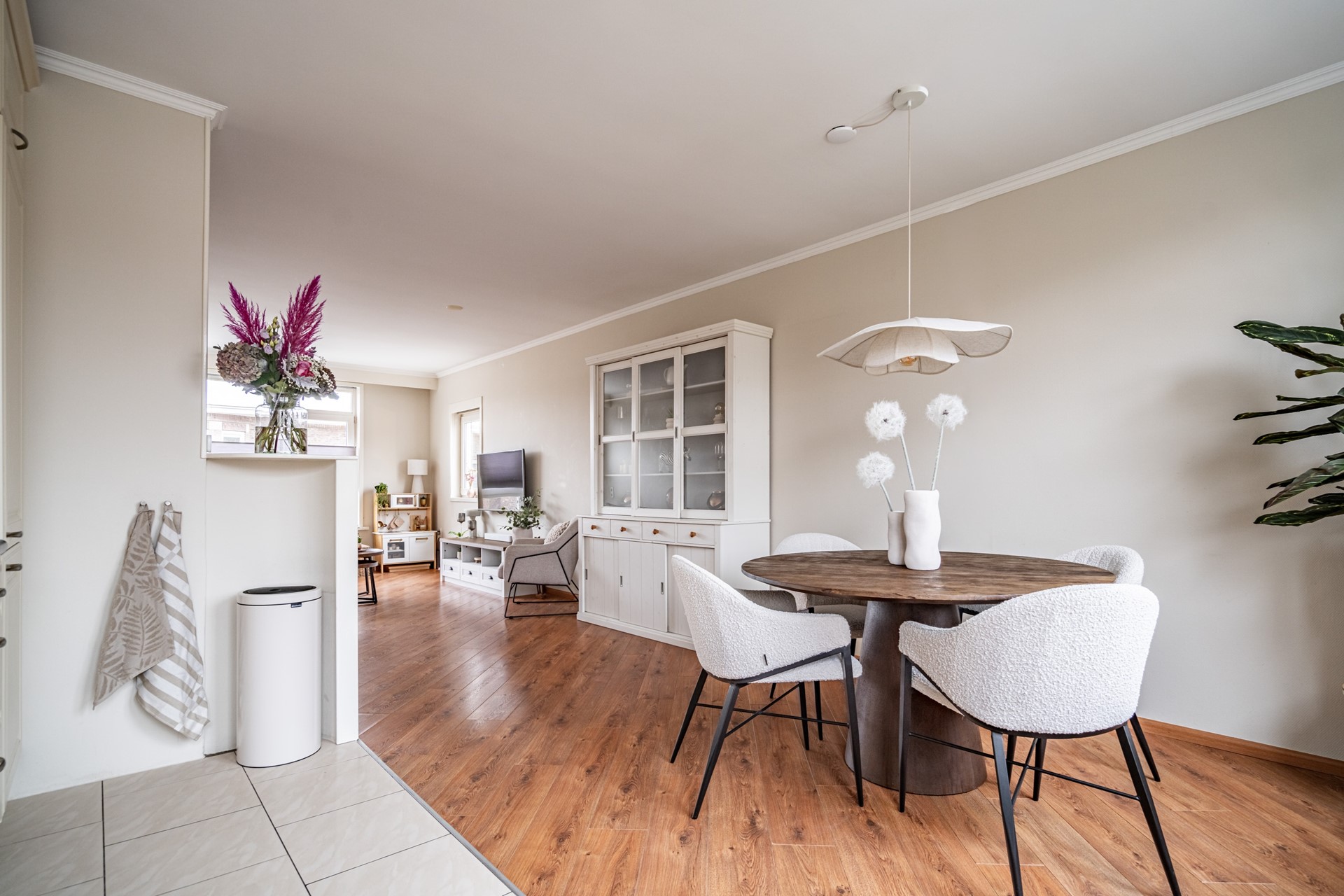 De woonkamer is ruim van formaat, voorzien van kunststof kozijnen en grote raampartijen waardoor er veel daglicht binnenvalt. De woonkamer staat in directe verbinding met de open keuken, die is uitgerust met een 5-pits gasfornuis, oven, koelkast, vriezer, afzuigkap en vaatwasser. Een fijne, praktische ruimte met veel privacy aan de achterzijde.