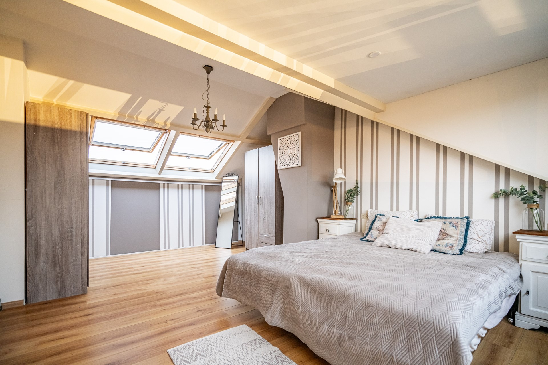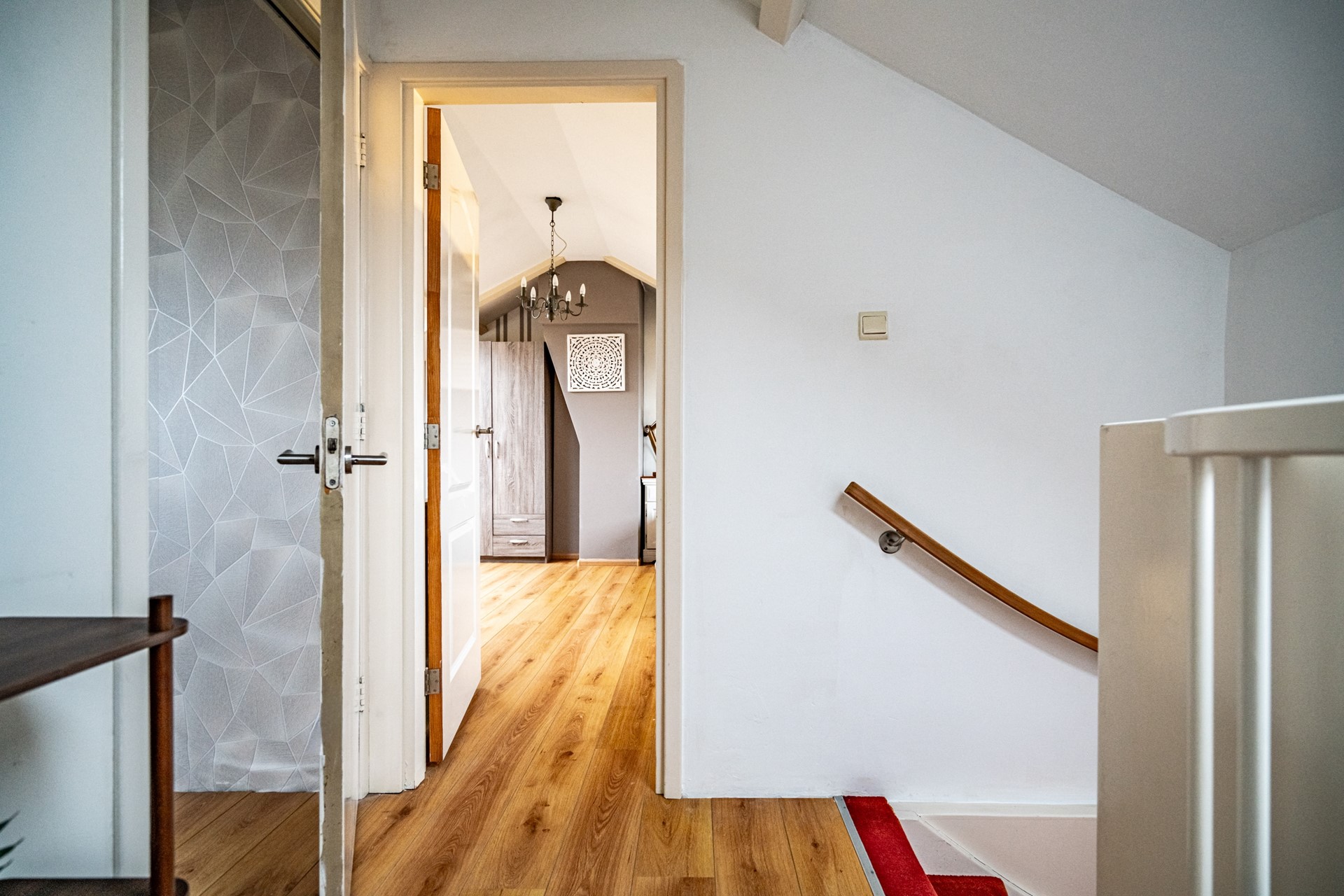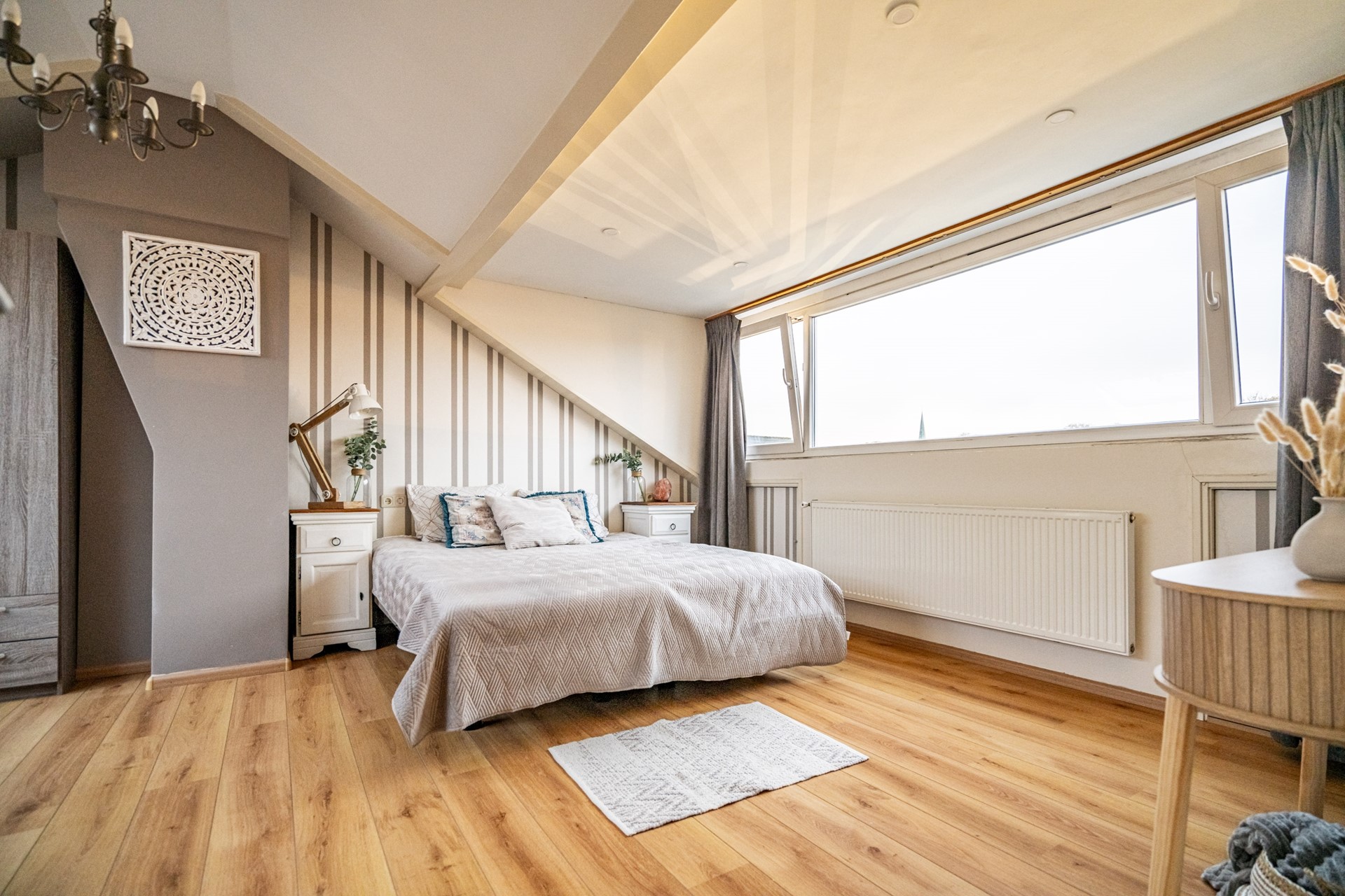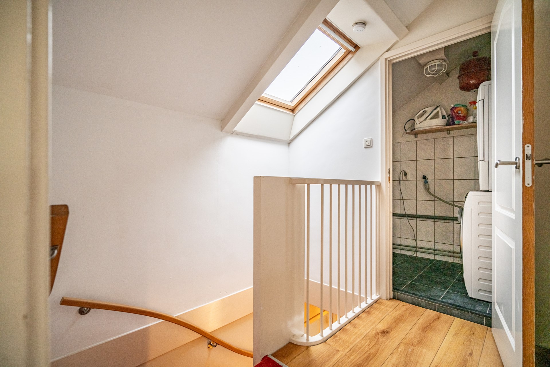 Via de trap in de hal bereikt u de tweede verdieping van het appartement. Hier komt u uit op de overloop, die toegang biedt tot alle vertrekken. Er is een aparte technische ruimte met opstelplaats voor de cv-ketel en aansluitingen voor de wasmachine en droger. Verder is er erg veel bergruimte beschikbaar op deze verdieping. De masterbedroom is bijzonder ruim dankzij de ruime dakkapel en biedt meer dan genoeg plaats voor een groot bed en kastenwand. De derde slaapkamer is eveneens van goed formaat door de recent geplaatste dakkapel, en kan perfect dienen als kinderkamer of thuiskantoor.
