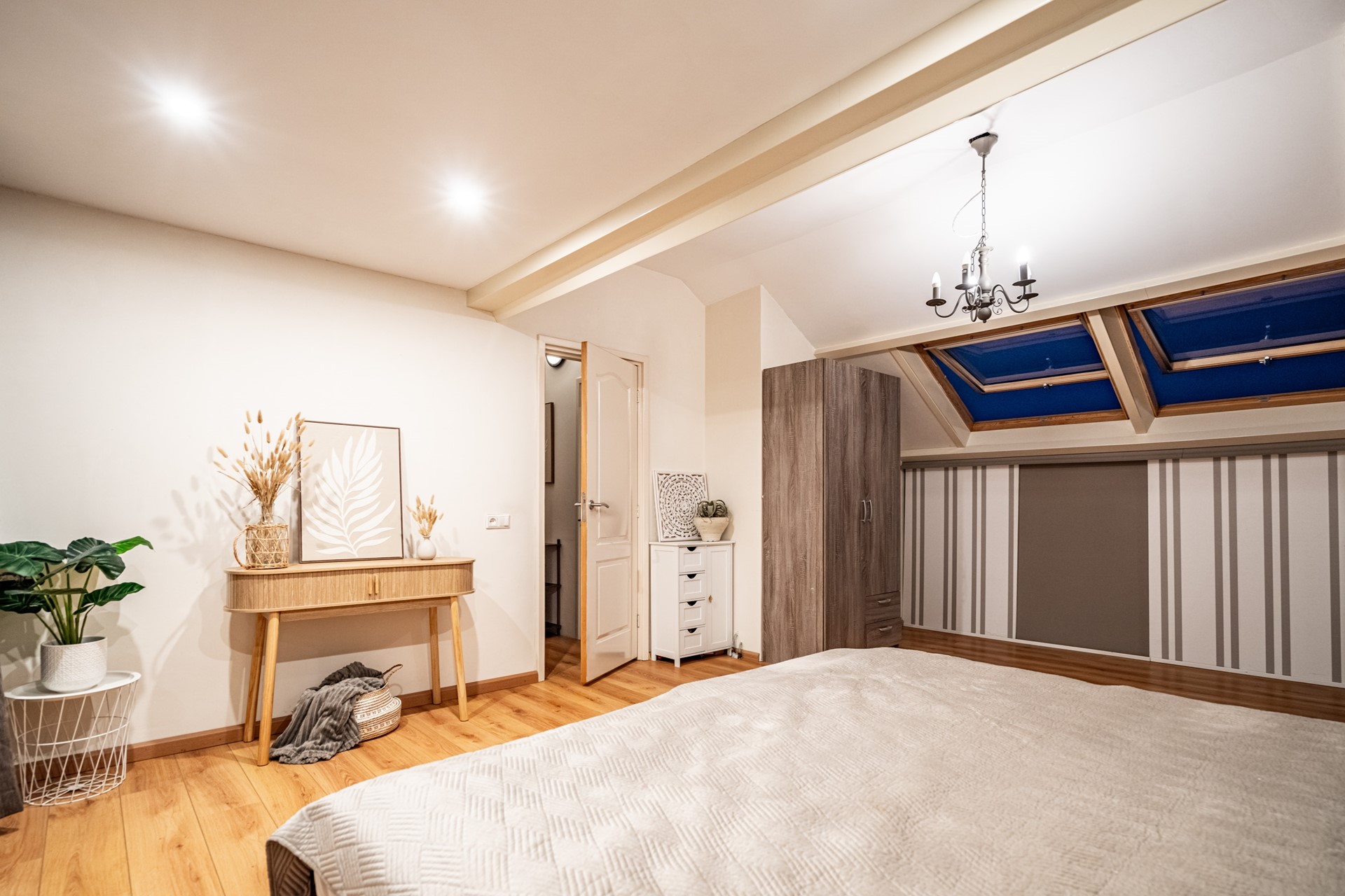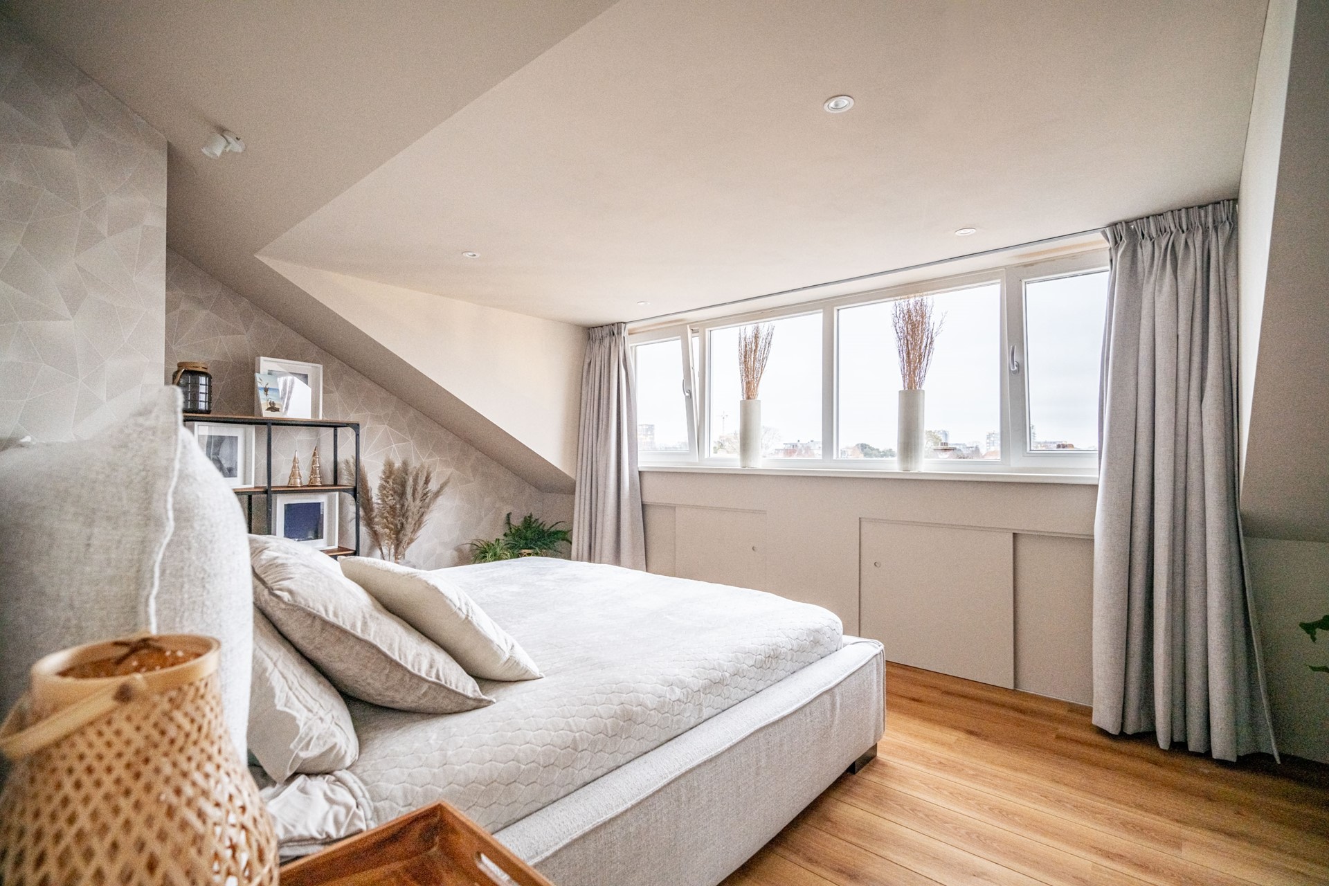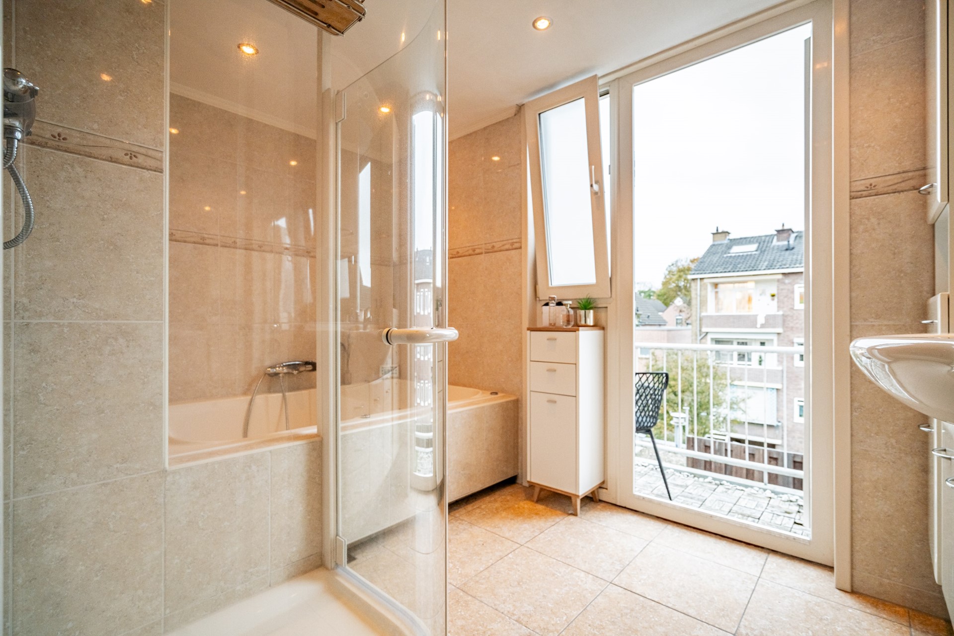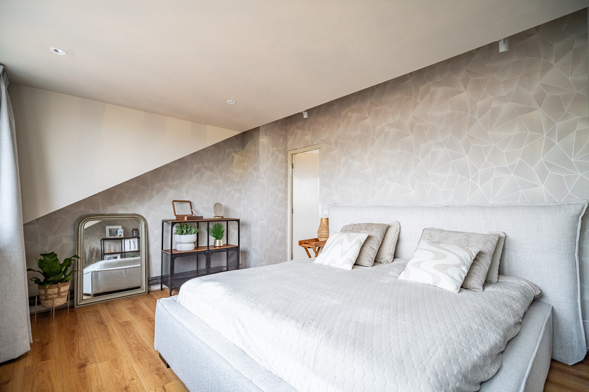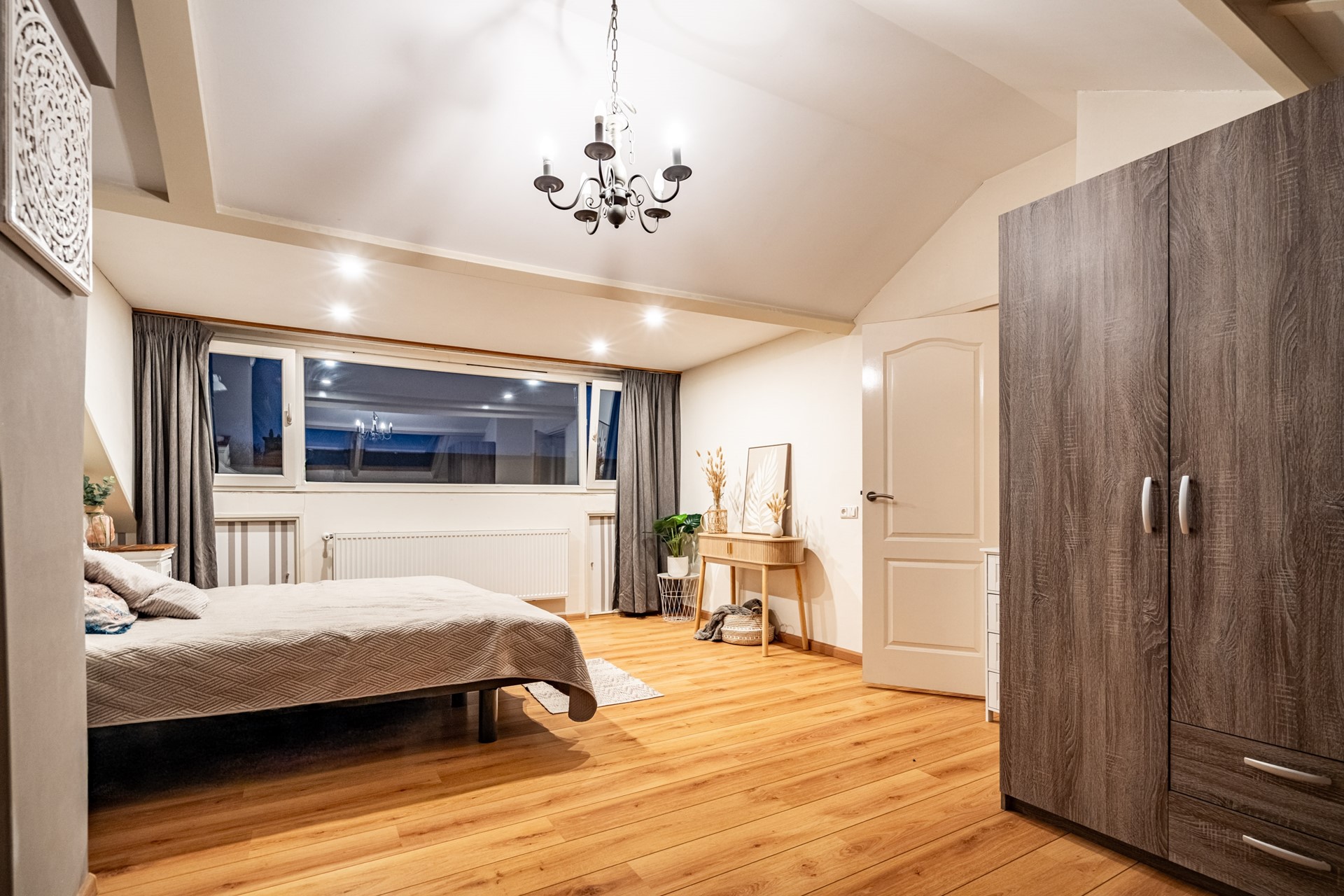Via de trap in de hal bereikt u de tweede verdieping van het appartement. Hier komt u uit op de overloop, die toegang biedt tot alle vertrekken. Er is een aparte technische ruimte met opstelplaats voor de cv-ketel en aansluitingen voor de wasmachine en droger. Verder is er erg veel bergruimte beschikbaar op deze verdieping. De masterbedroom is bijzonder ruim dankzij de ruime dakkapel en biedt meer dan genoeg plaats voor een groot bed en kastenwand. De derde slaapkamer is eveneens van goed formaat door de recent geplaatste dakkapel, en kan perfect dienen als kinderkamer of thuiskantoor.