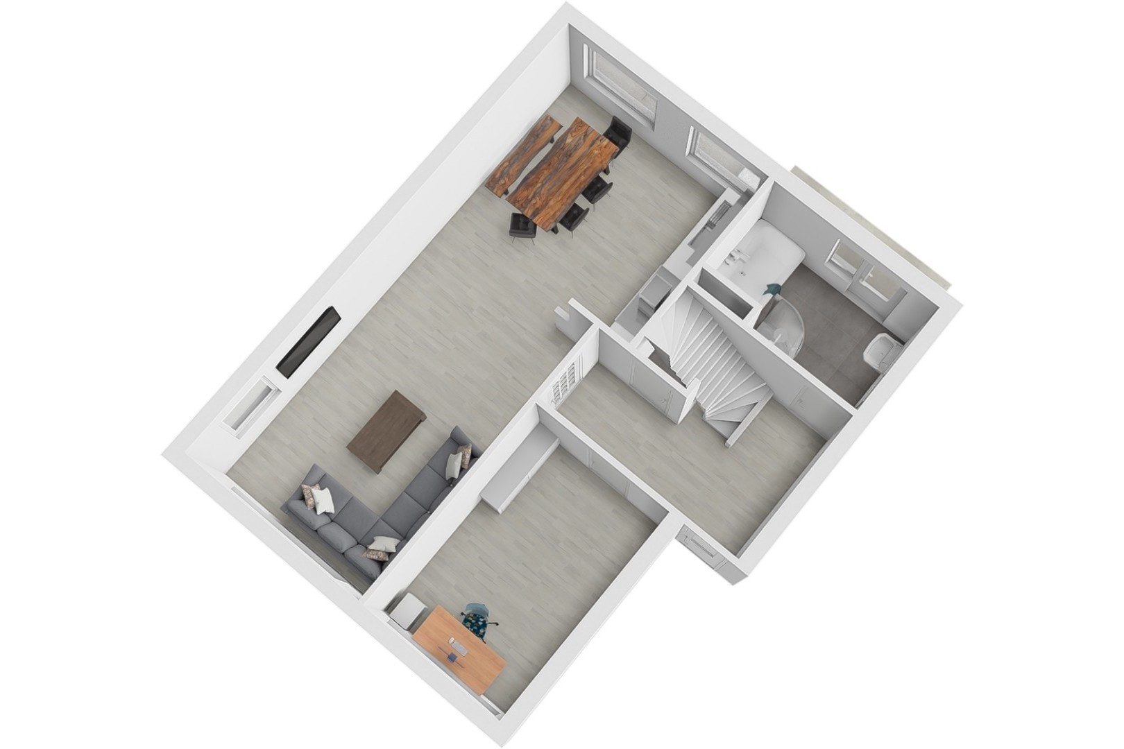 Indeling Via het gezamenlijke portiek bereikt u de voordeur van de woning. U komt binnen in een ruime hal met garderoberuimte en separaat toilet met fonteintje. Vanuit de hal heeft u toegang tot de lichte woonkamer.