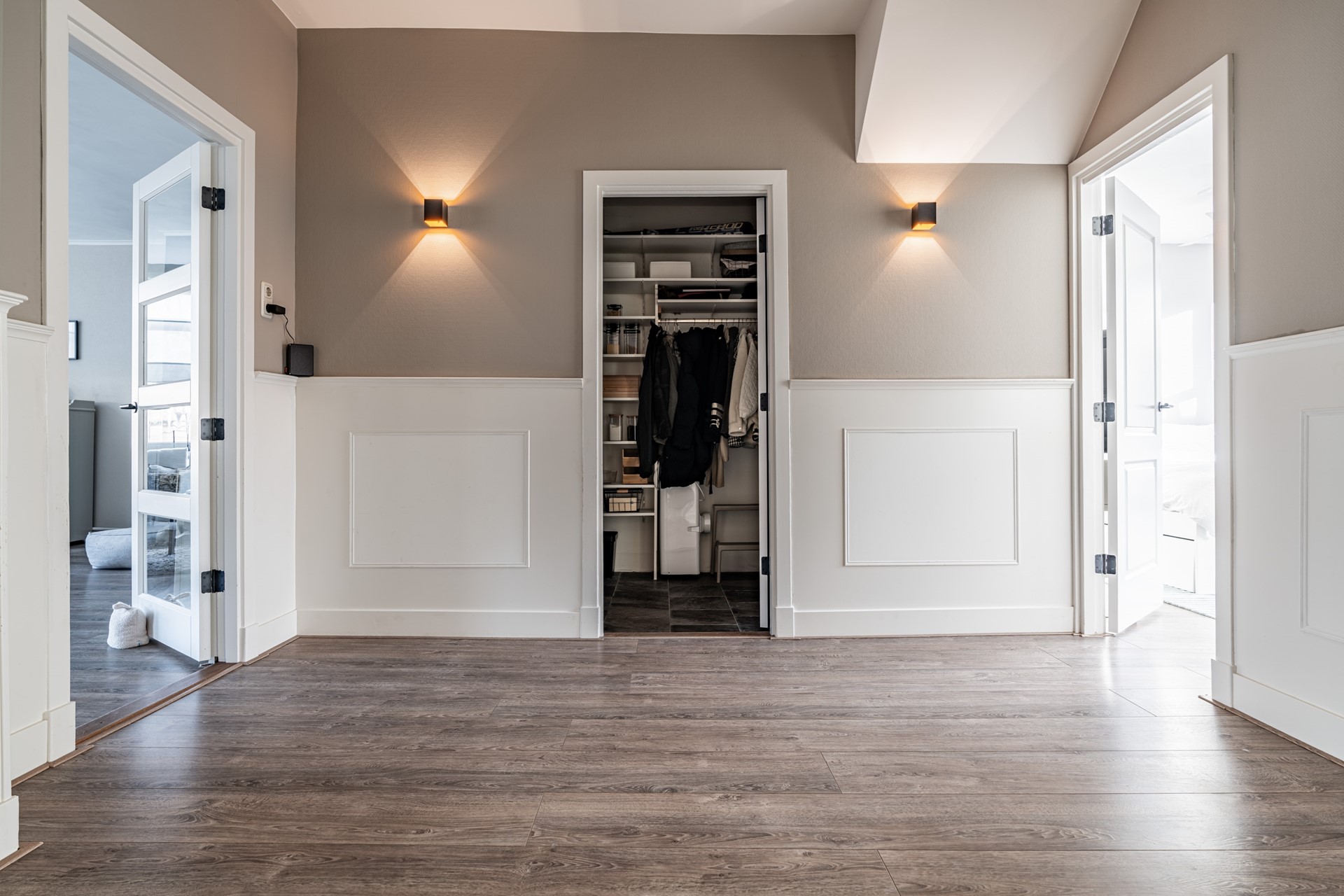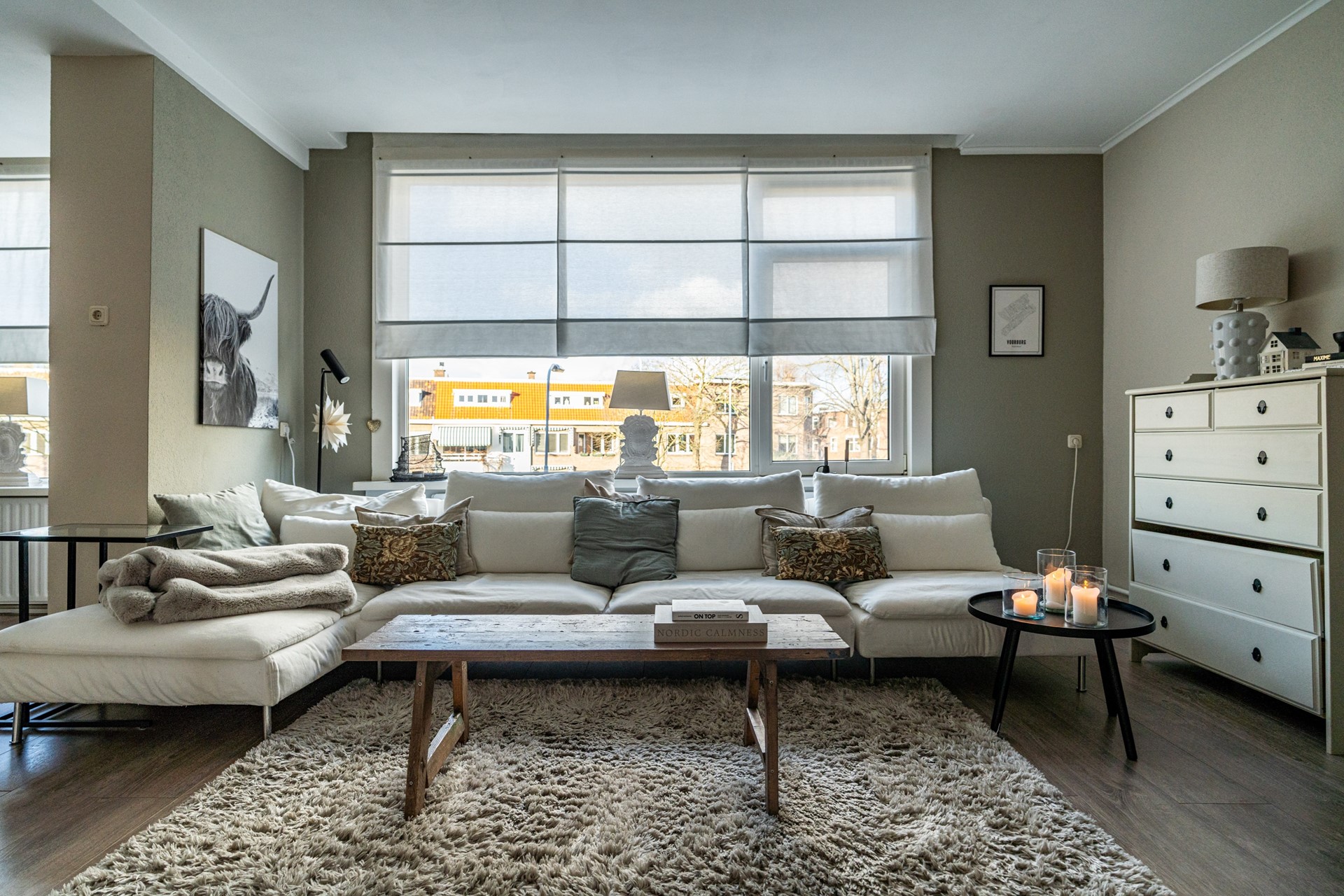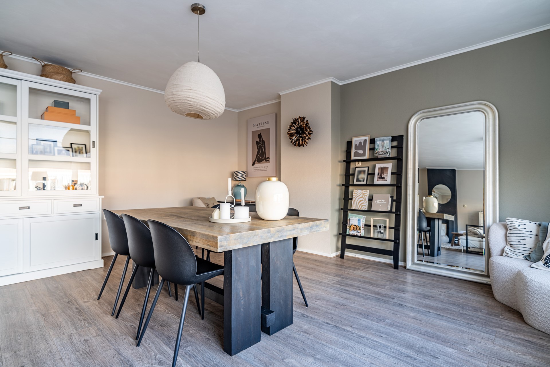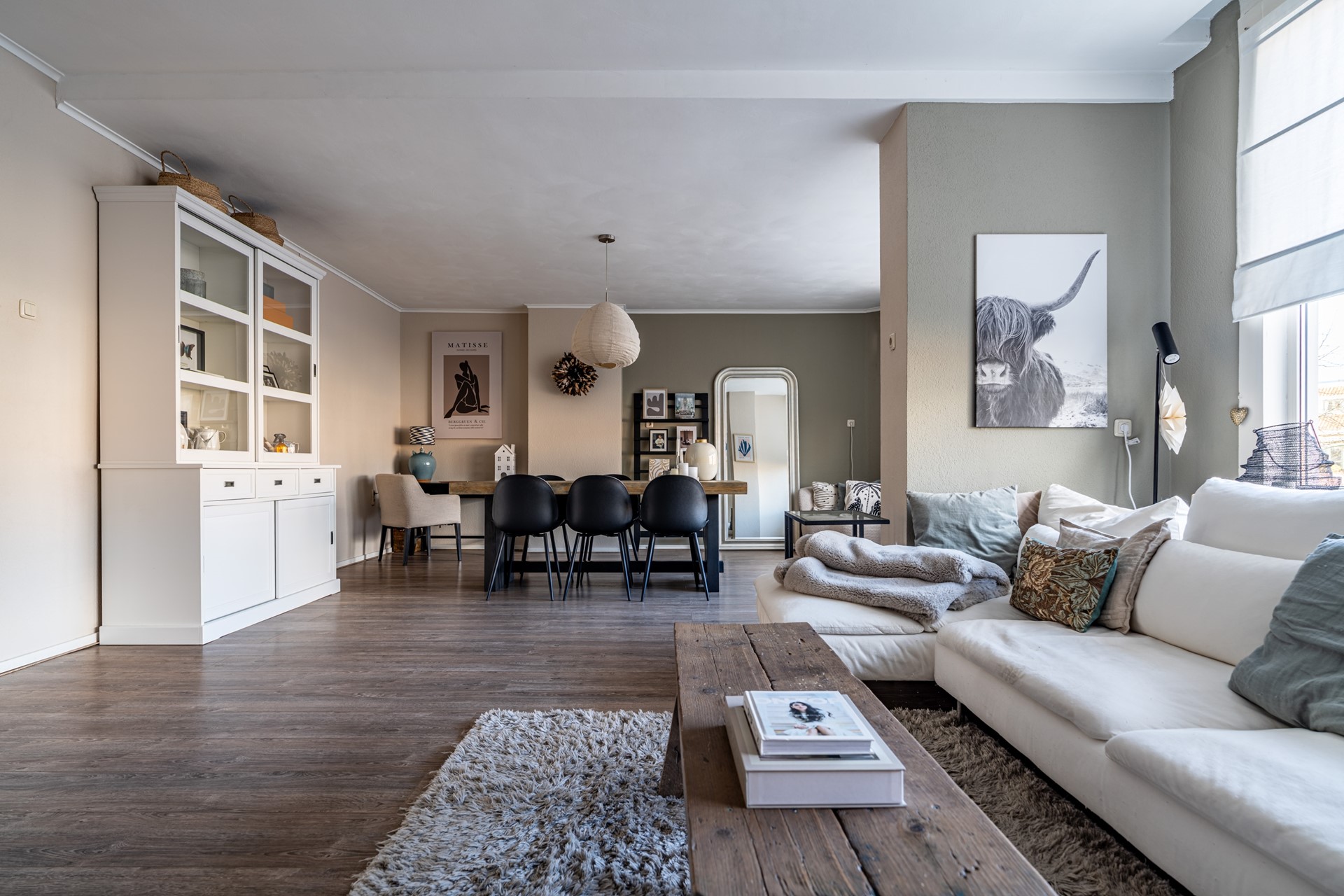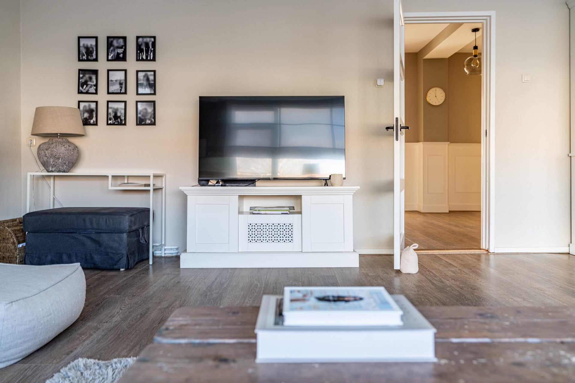 Via de trap op de begane grond bereik je de entree van de woning, waar je binnenkomt in een ruime hal die toegang biedt tot alle vertrekken. De lichte woonkamer heeft een prettige sfeer en biedt voldoende ruimte voor zowel een zithoek als een eethoek. Dankzij de grote ramen profiteert de woning van veel natuurlijk licht. Voorheen had de woning drie slaapkamers, maar een van de kamers is bij de hoofdslaapkamer betrokken, waardoor een zeer ruimere slaapkamer is ontstaan. De overige slaapkamer biedt voldoende mogelijkheden voor een slaapkamer of werkkamer.