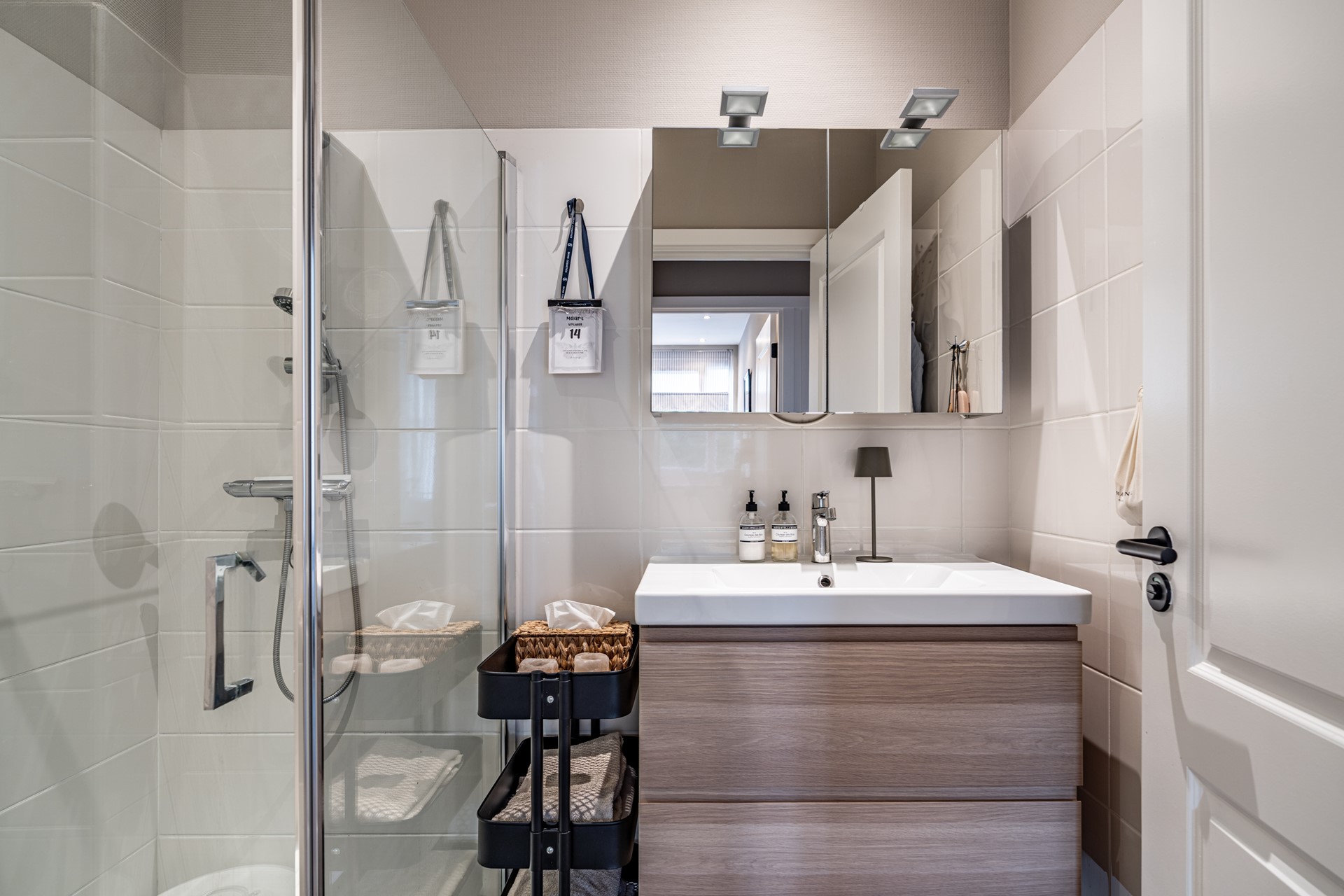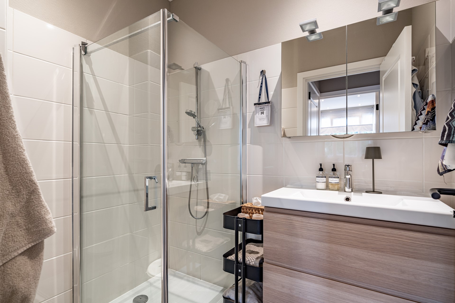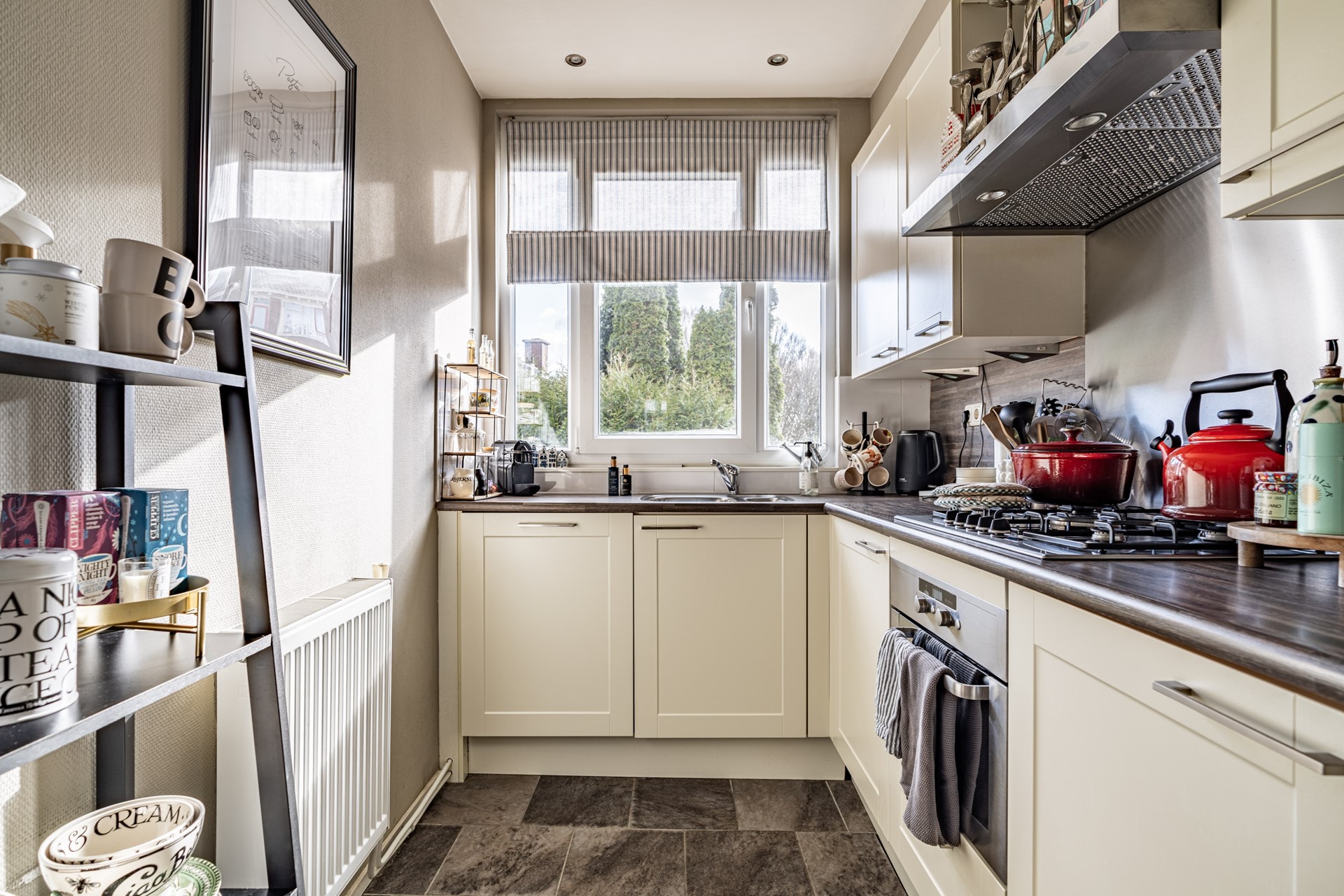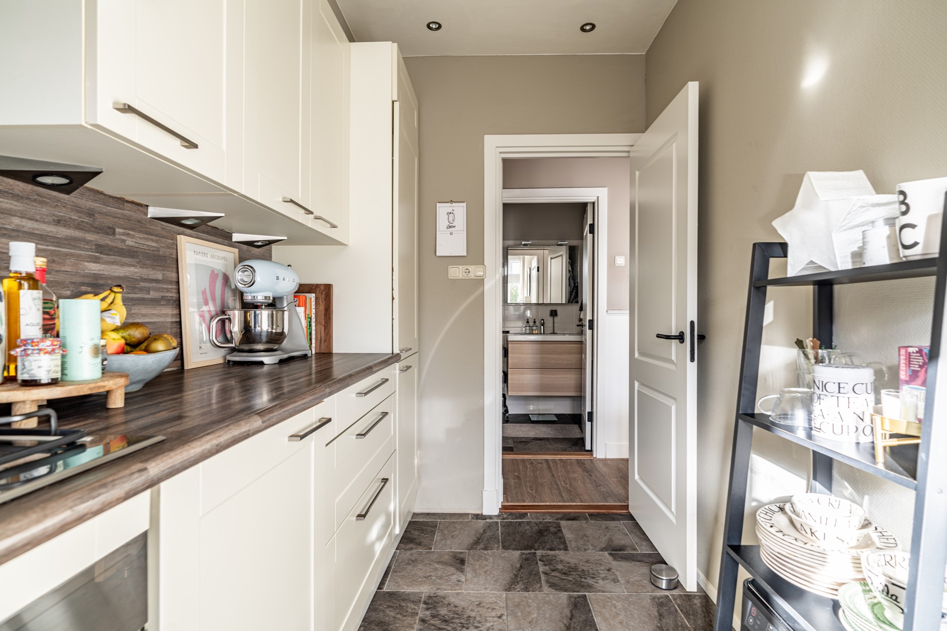 De keuken is praktisch ingedeeld en uitgerust met een koel-vriescombinatie, vaatwasser, 4-pits gasfornuis en een oven. De badkamer verkeert in een goede staat en beschikt over een ruime wastafel en een inloopdouche. Daarnaast is er een separaat toilet aanwezig. Verder is er een ruime inloopkast aanwezig die toegankelijk is vanuit de hal.