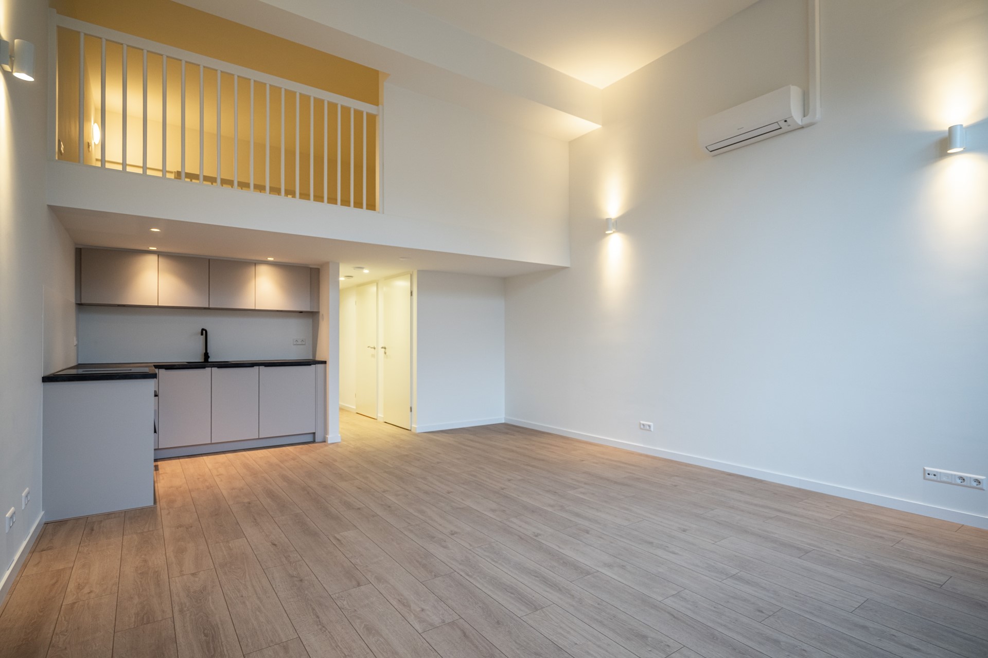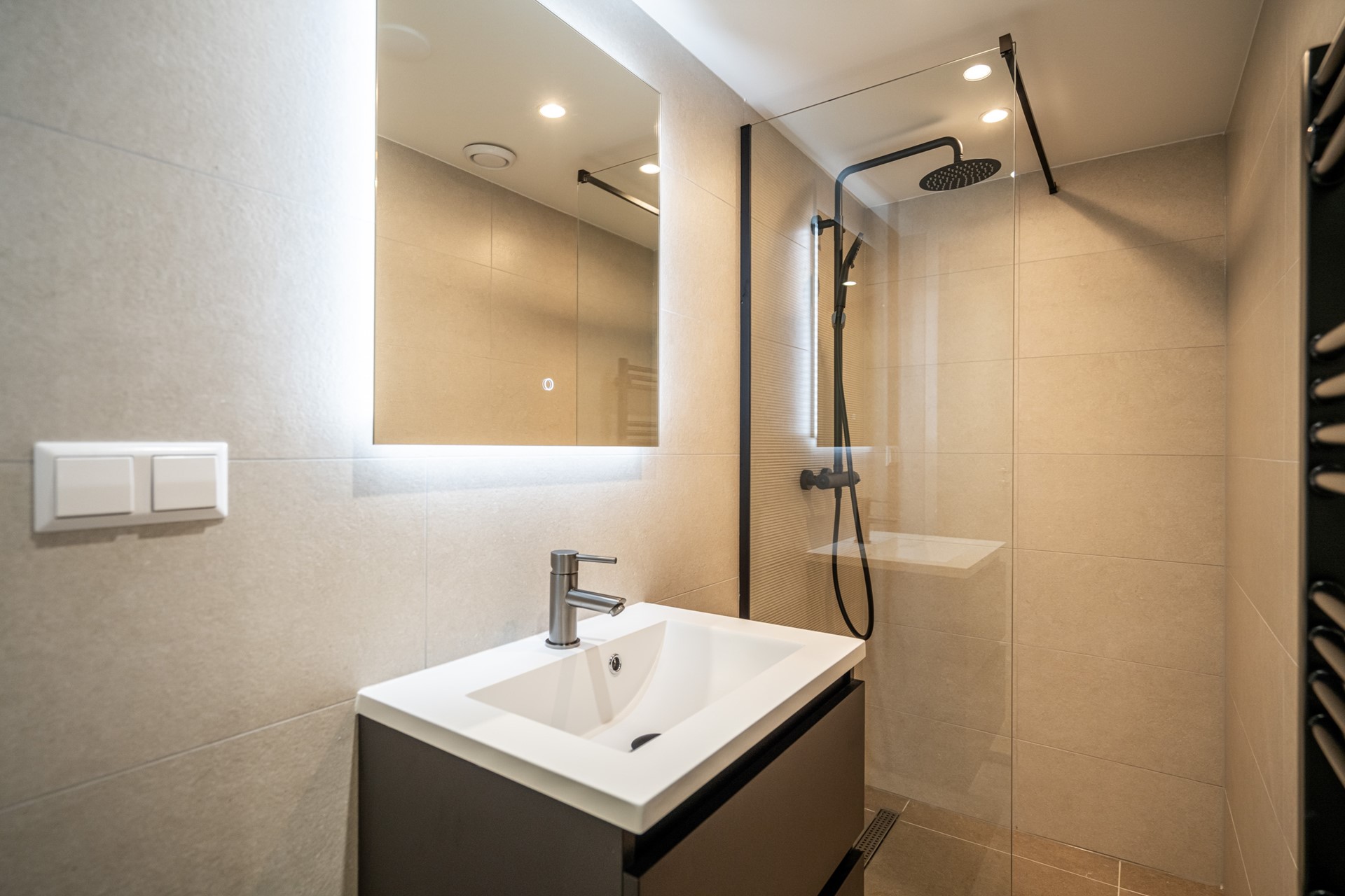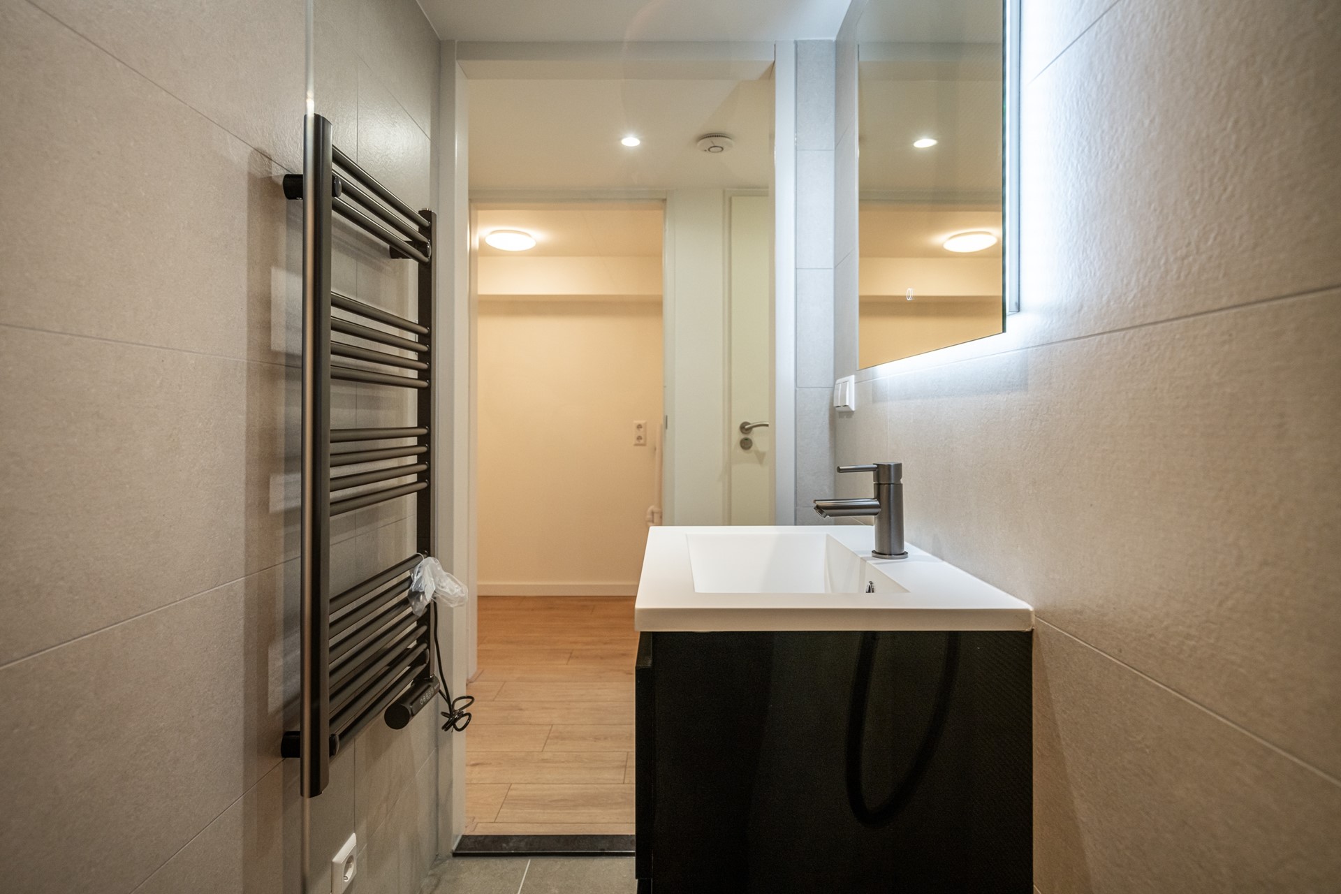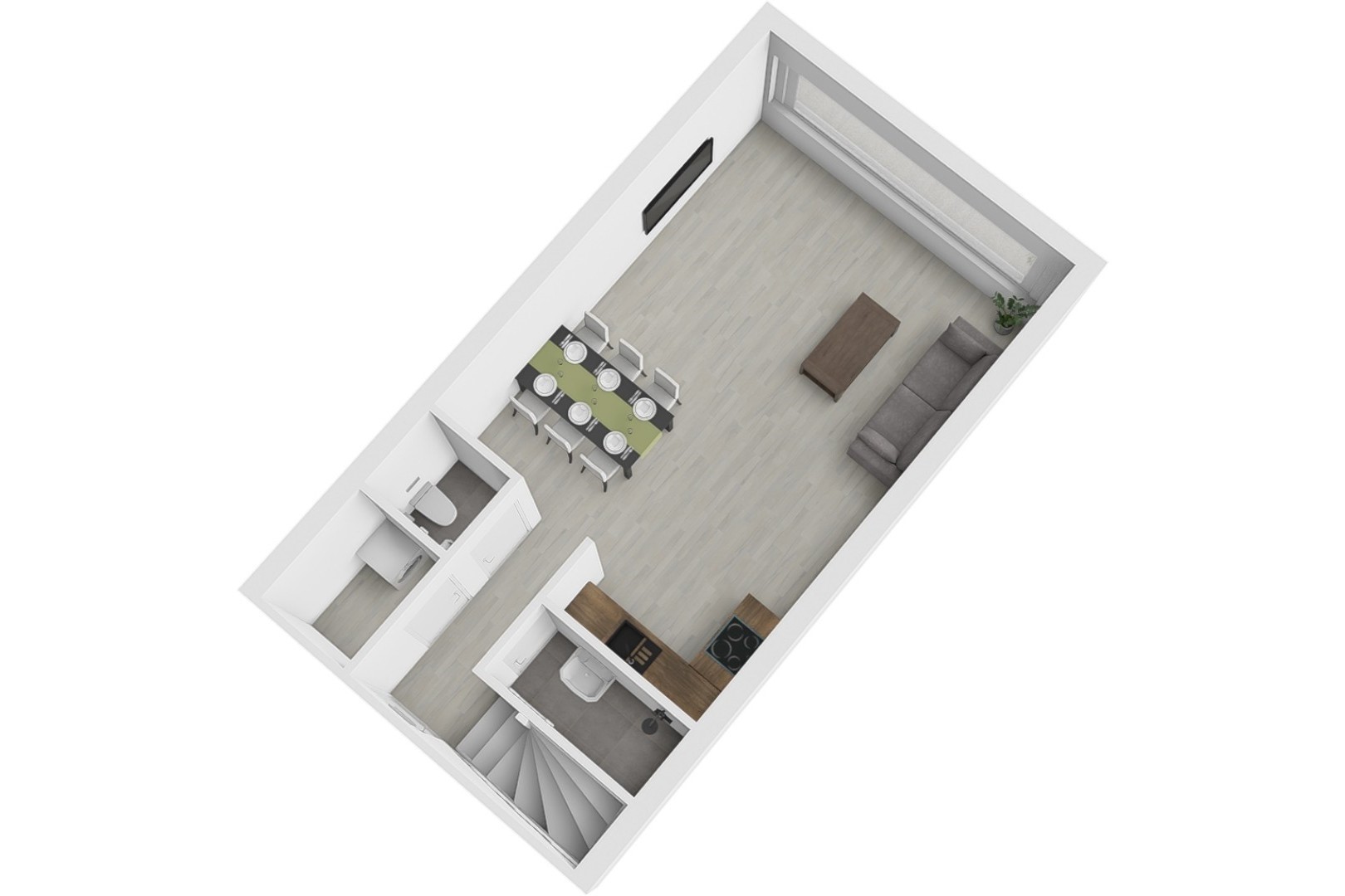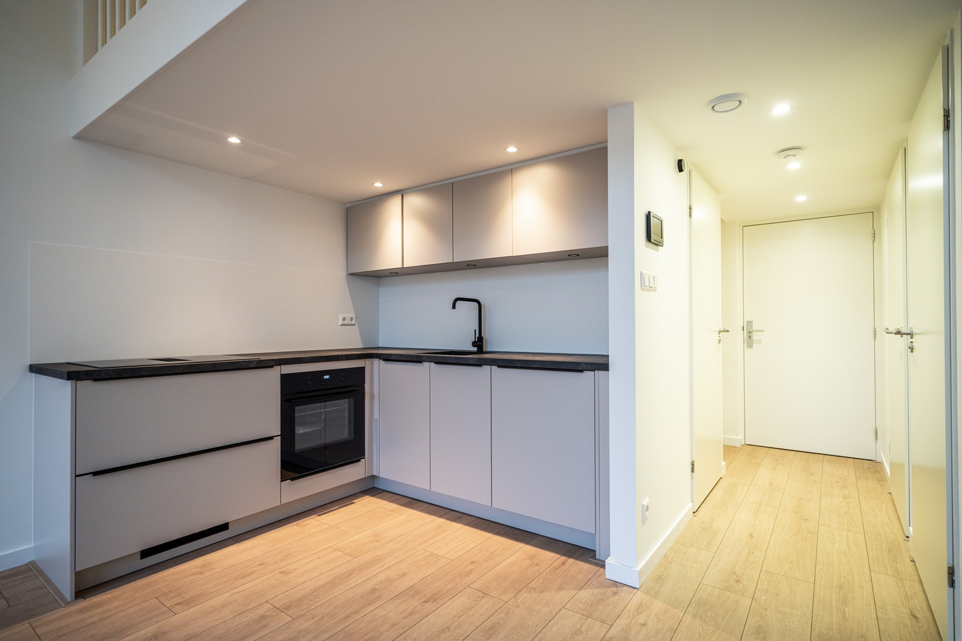 Indeling en afwerking Via de centrale hal met meterkasten en de gemeenschappelijke fietsenberging heeft u toegang tot de zes appartementen. Elk appartement heeft zijn eigen karakter en indeling, maar allemaal zijn ze: - Voorzien van een vide met slaapkamer; - Afgewerkt met een laminaat vloer en volledige stoffering; - Uitgerust met verlichting en airconditioning (verwarmen én koelen); - Voorzien van een moderne keuken met inductiekookplaat en oven met magnetronfunctie; - Een volledig betegelde badkamer met inloopdouche en wastafelmeubel. - Video belsysteem aanwezig