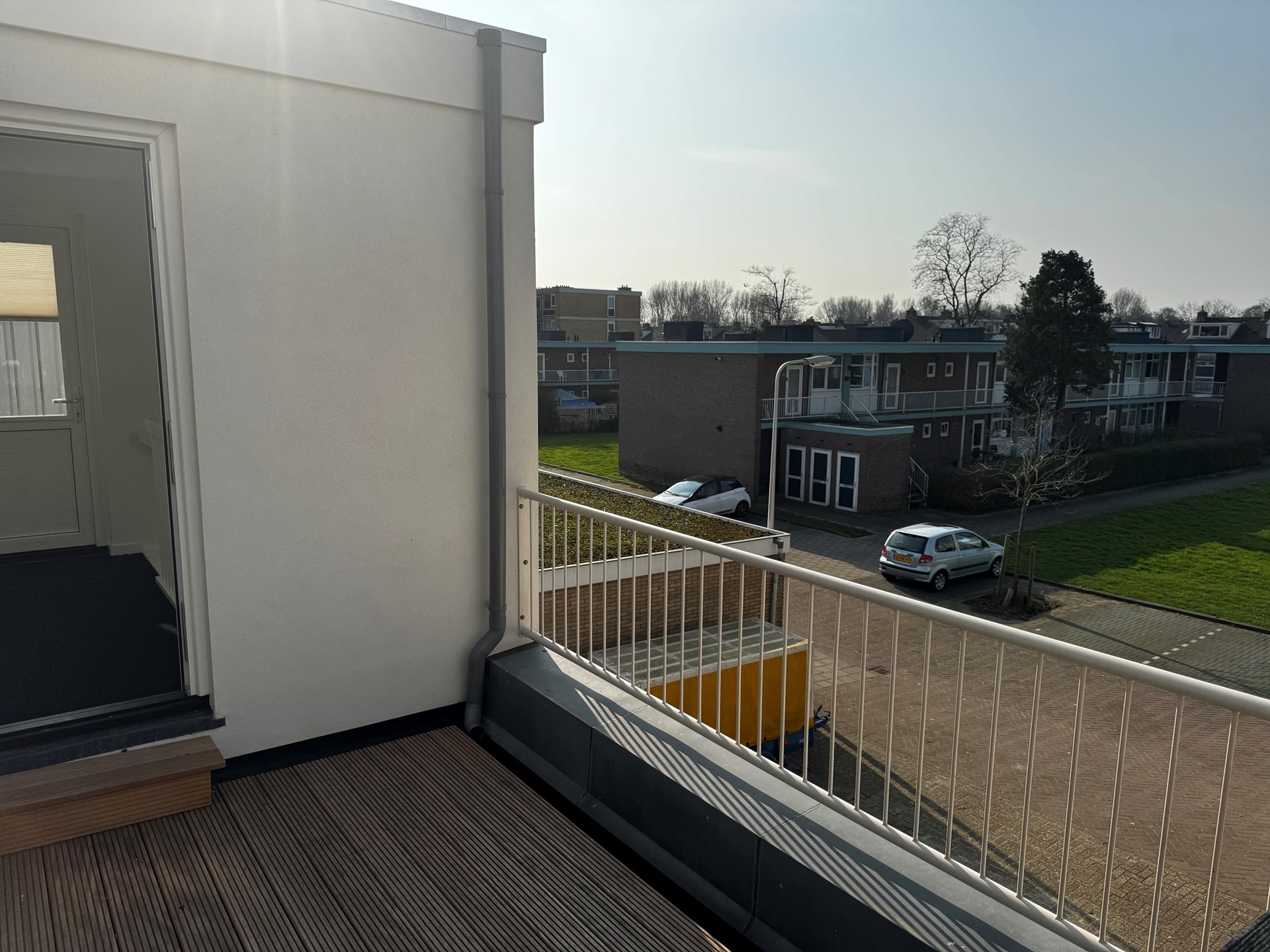 Het balkon aan de voorzijde is te bereiken vanuit de woonkamer door middel van een schuifpui met uitzicht op groen en water waar u kan genieten van de zonsopkomst.
