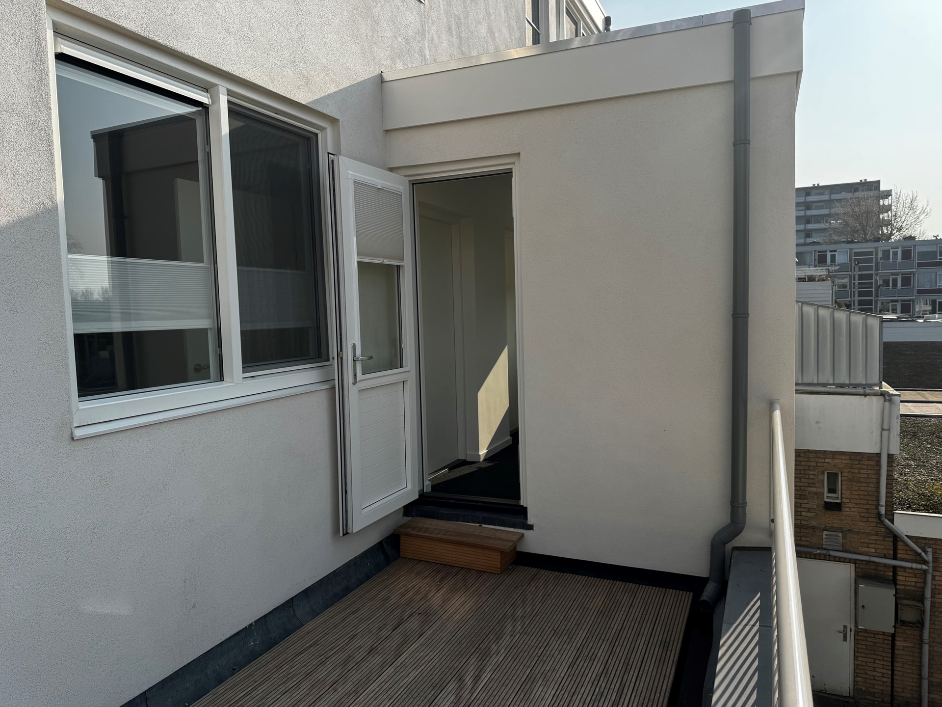 Aangekomen bij de voordeur vinden we het dakterras aan de linkerkant. Hier kunt u geniet van de middag en avondzon.
