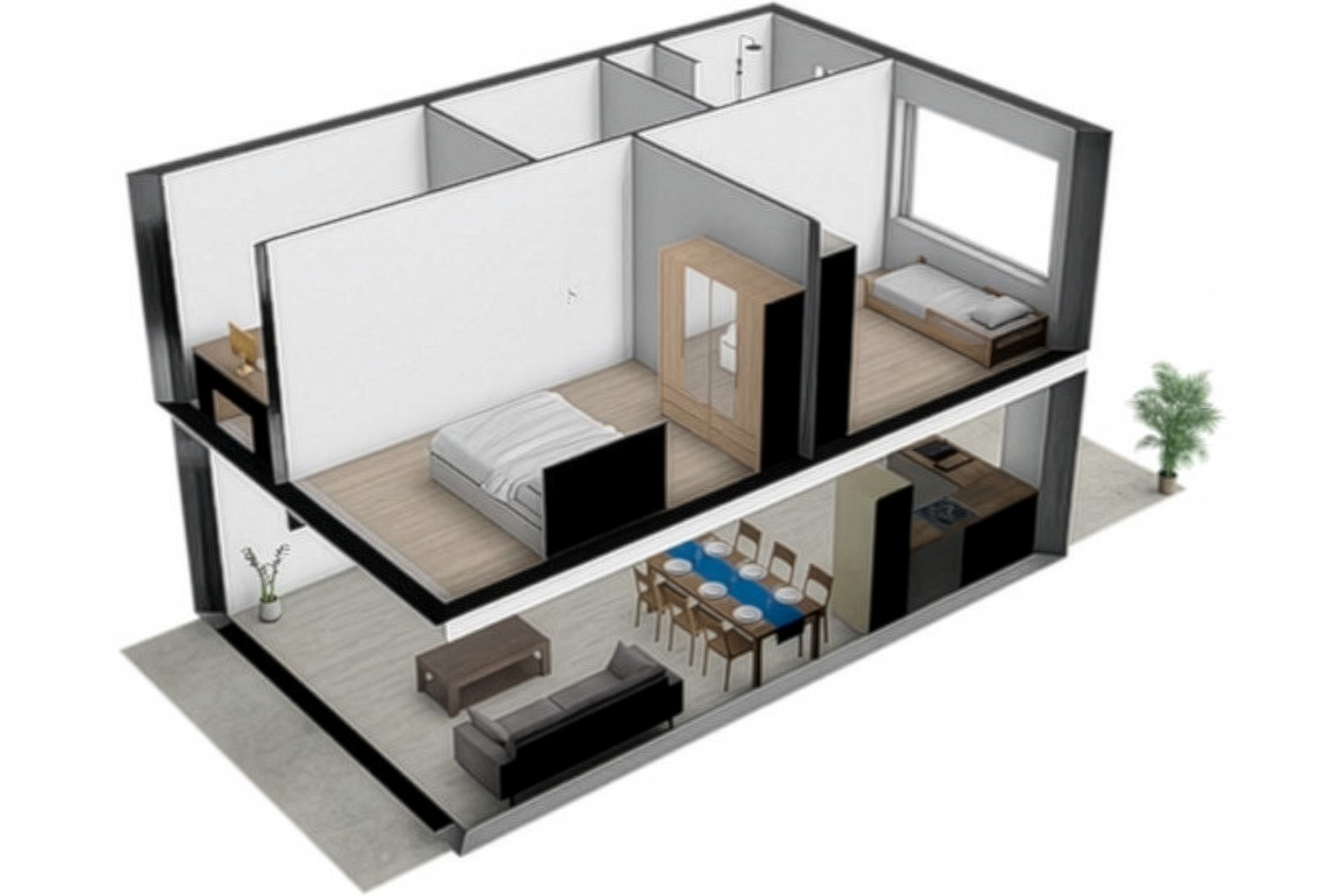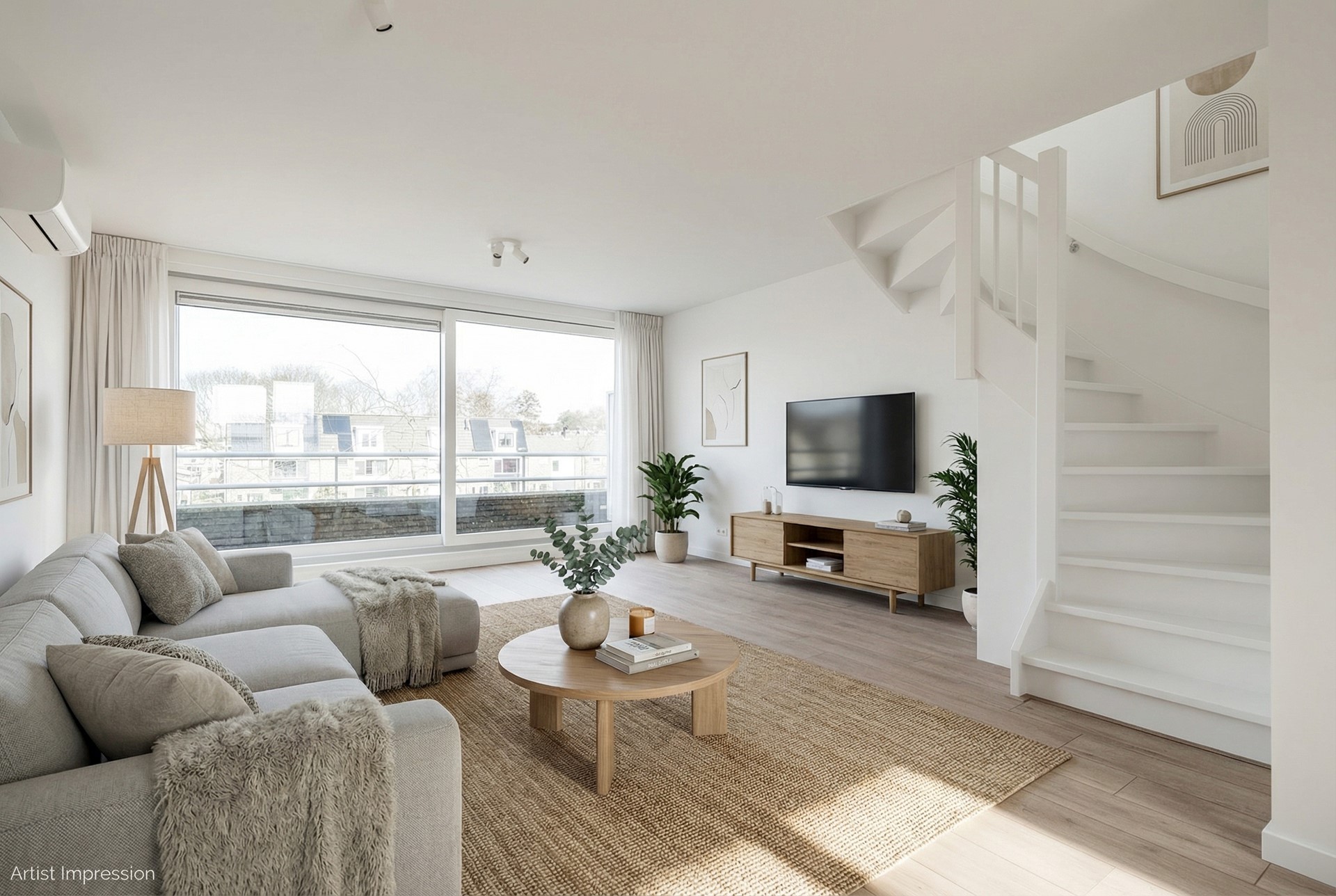 Het appartement bevindt zich op de eerste en tweede verdieping en wordt volledig gestoffeerd opgeleverd met een hoogwaardige afwerking.
