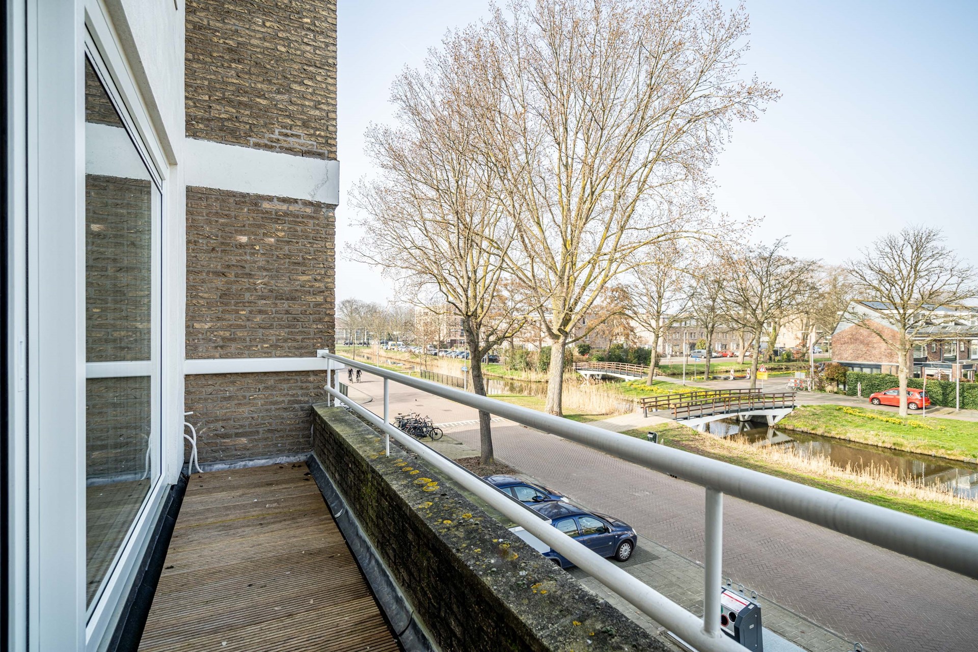 Het balkon aan de voorzijde is te bereiken vanuit de woonkamer door middel van een schuifpui met uitzicht op groen en water waar u kan genieten van de zonsopkomst.