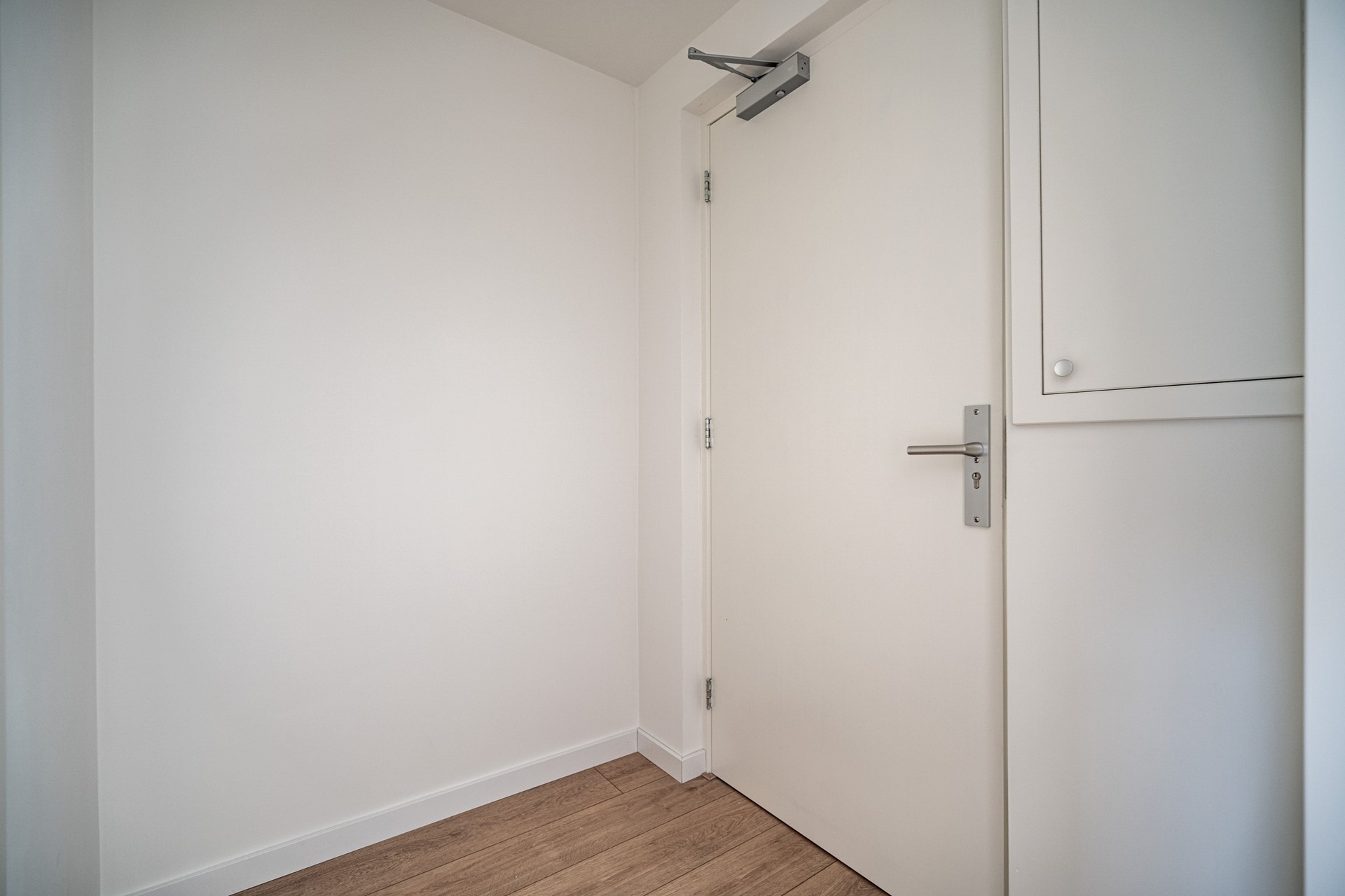 Vanuit de afgesloten entree met brievenbussen en bellentableau bereikt u via de trap het appartement gelegen op de eerste verdieping. Wat prettig is is dat de eigenaar ook via de deur aan de achterzijde van het gebouw de woning en berging kan betreden.