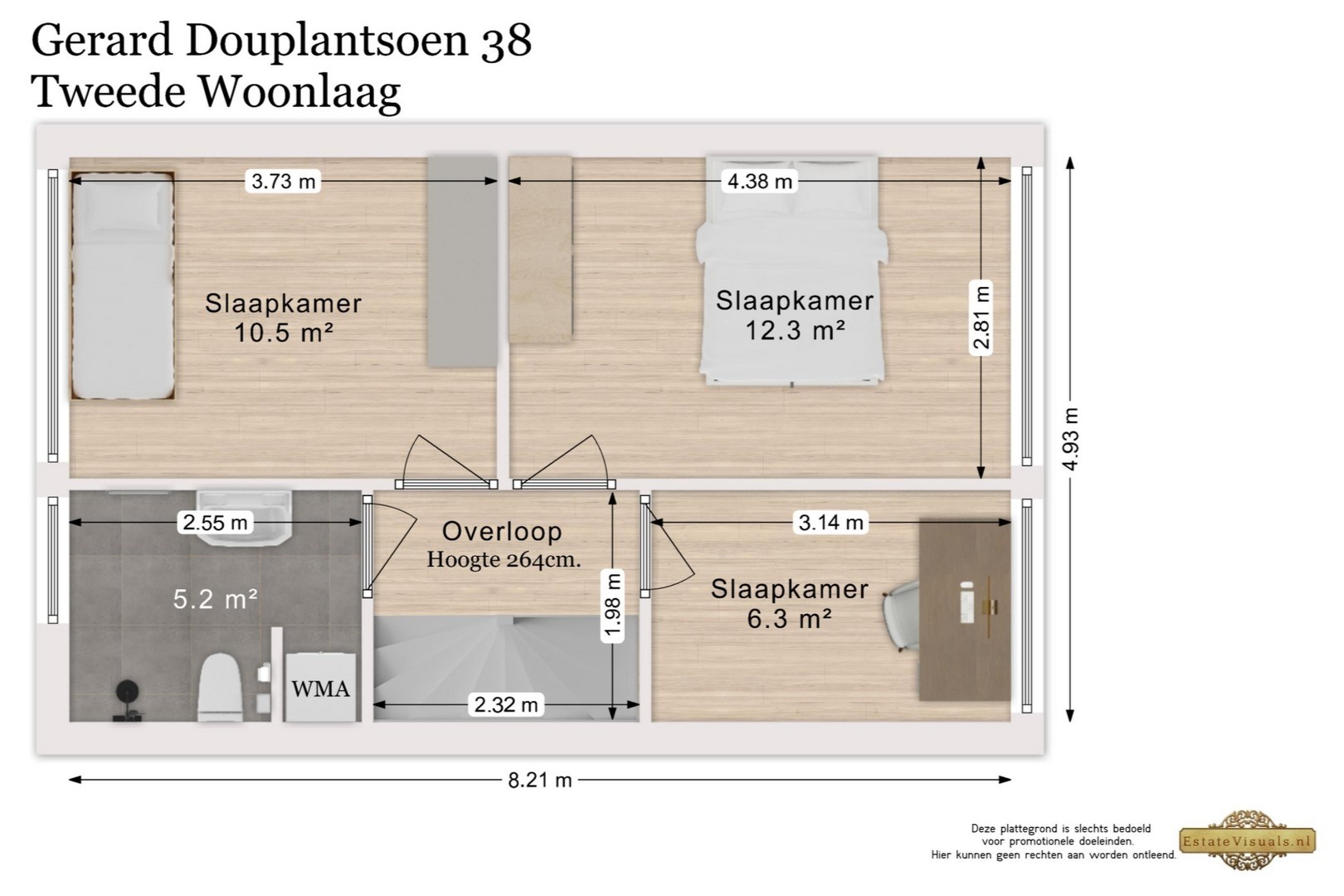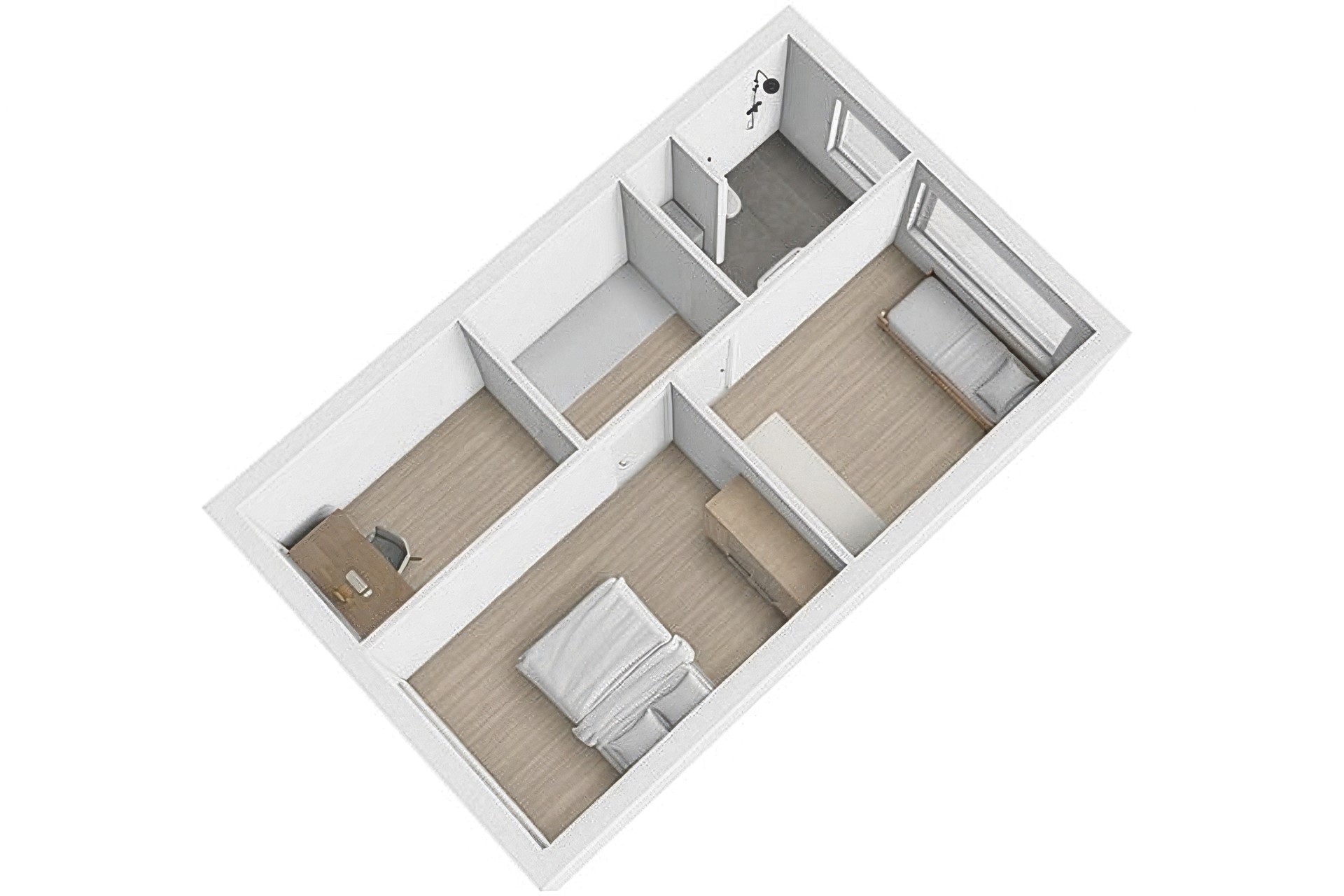 Met de vaste trap vanuit de woonkamer komen we op de overloop van de verdieping. Hier vinden we drie royale slaapkamers en de Badkamer.