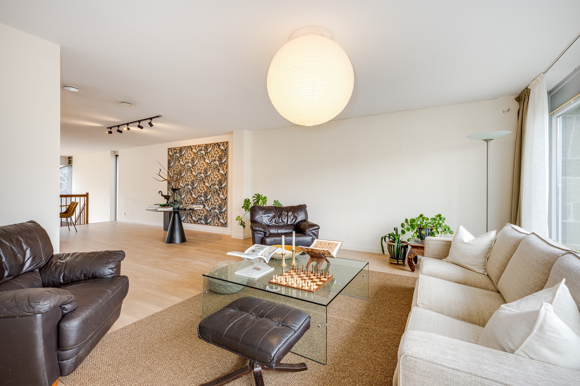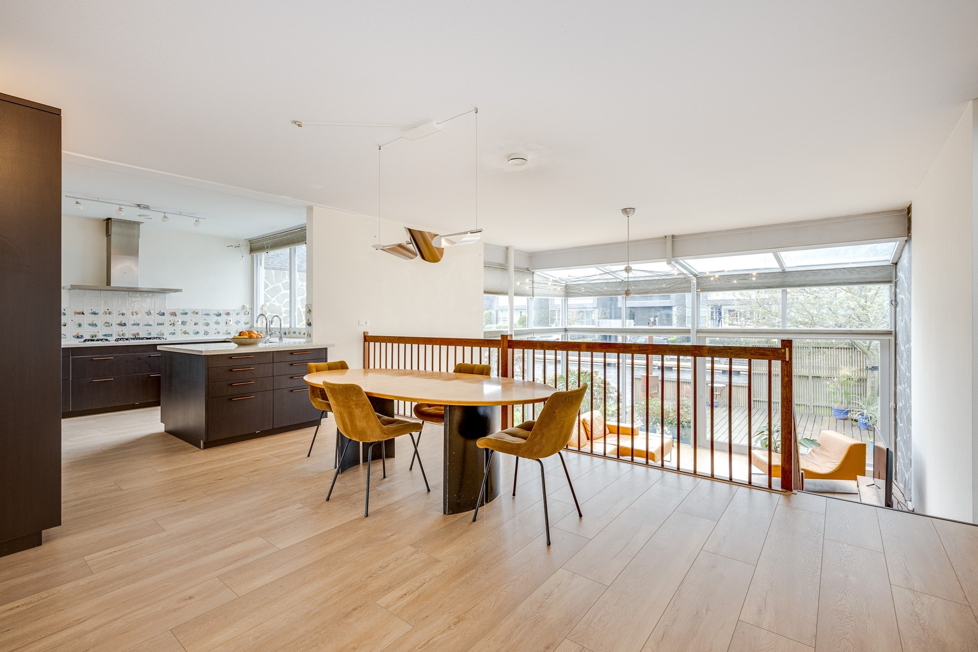 De woonetage is al even bijzonder. Dankzij de magnifieke glazen uitbouw en een raampartij over de volle breedte strekt de leefruimte zich uit over maar liefst 17 meter. Transparant, ruimtelijk en perfect om tot rust te komen of juist gasten te ontvangen in stijl.