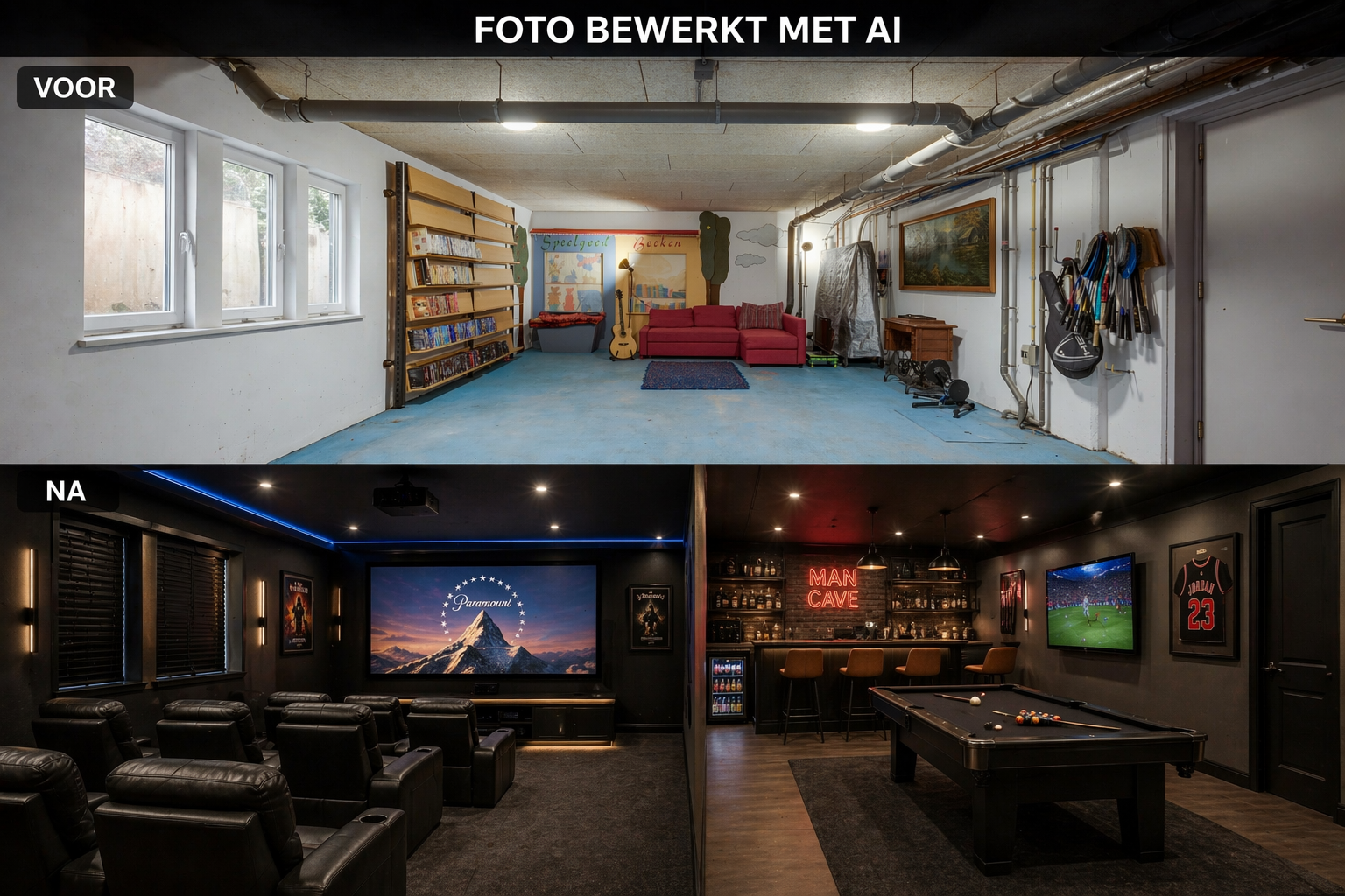 Het souterrain biedt een volledig geïsoleerde, licht- en geluidsdichte ruimte die zich perfect leent als hobbyruimte, gym, thuisbioscoop of mancave. Extra daglicht is eenvoudig te realiseren.
