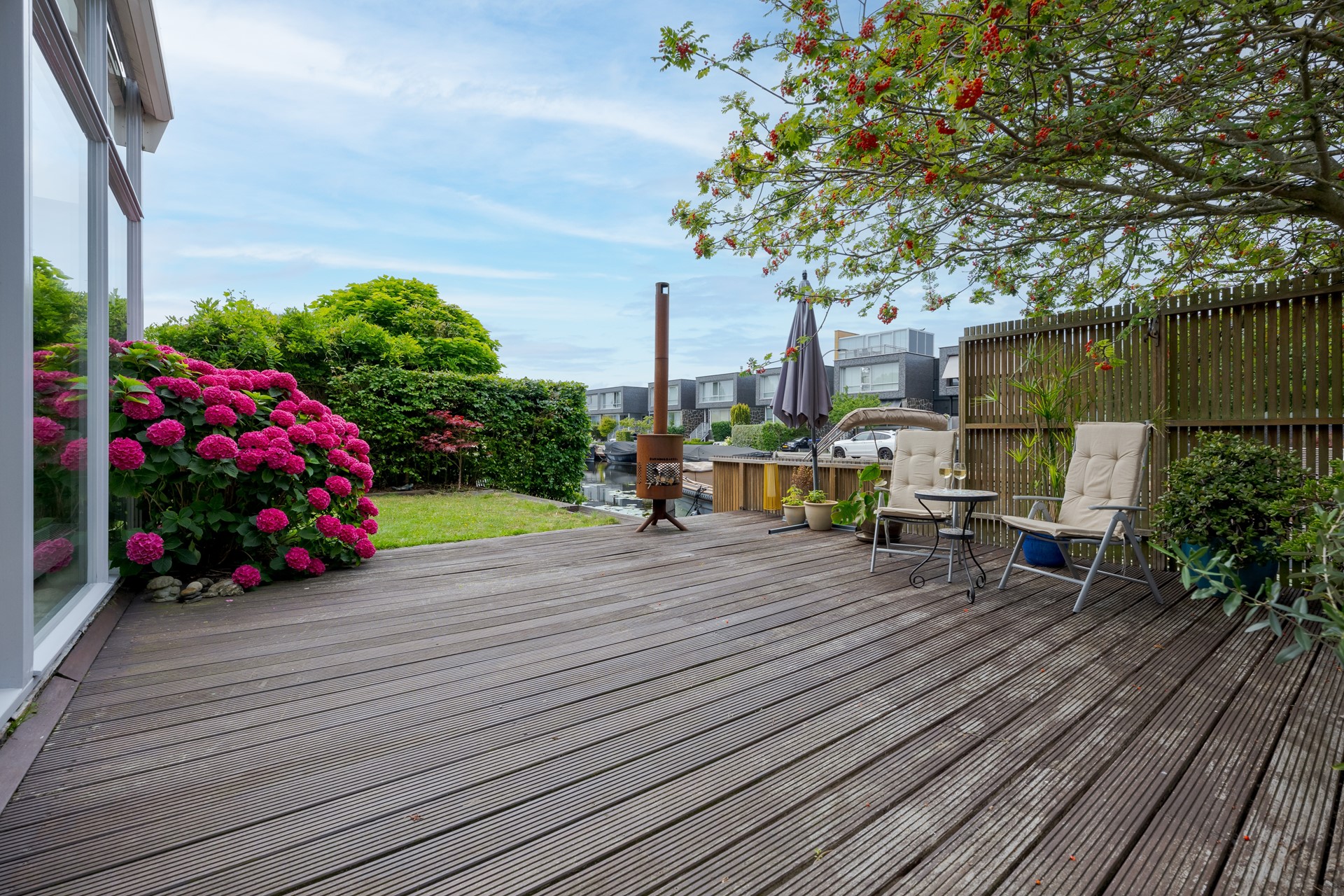 Stelt u zich eens voor: elke dag wakker worden met kabbelend water, langsvarende boten en een panorama dat nooit verveelt. Vanuit uw eigen aanlegsteiger – geschikt voor een boot tot maar liefst 12 meter – vaart u zó richting de Vlietlanden, de Kagerplassen of het Braassemermeer. De royale schuifpuien verbinden de woning met het riante houten terras aan het water, waar binnen en buiten moeiteloos in elkaar overlopen. Hier ervaart u iedere dag het ultieme vakantiegevoel, gewoon thuis.