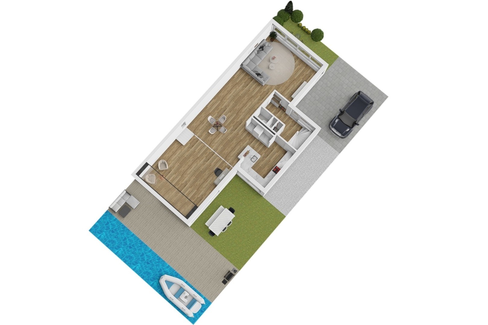 Imagine waking up every day to gently rippling water, passing boats, and a panorama that never ceases to inspire. From your private mooring – suitable for a boat up to 12 meters – you can sail straight to the Vlietlanden, the Kagerplassen, or the Braassemermeer. Large sliding glass doors connect the interior to the generous wooden waterside terrace, creating a seamless indoor-outdoor living experience. Every day here feels like a holiday at home.