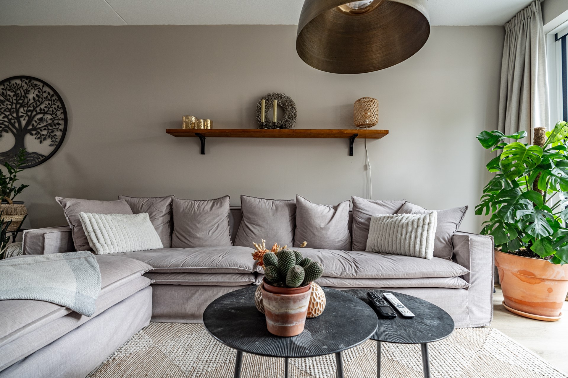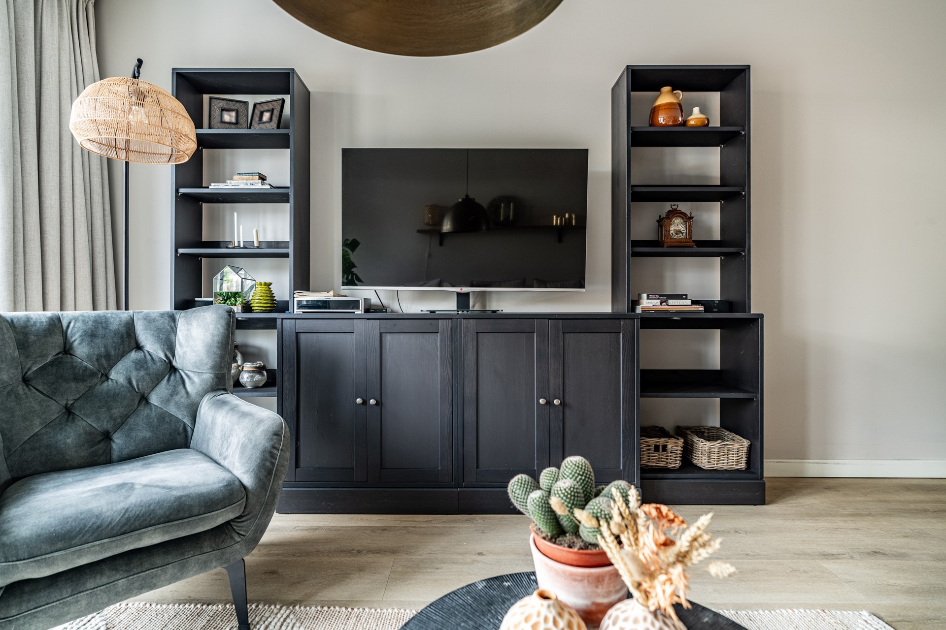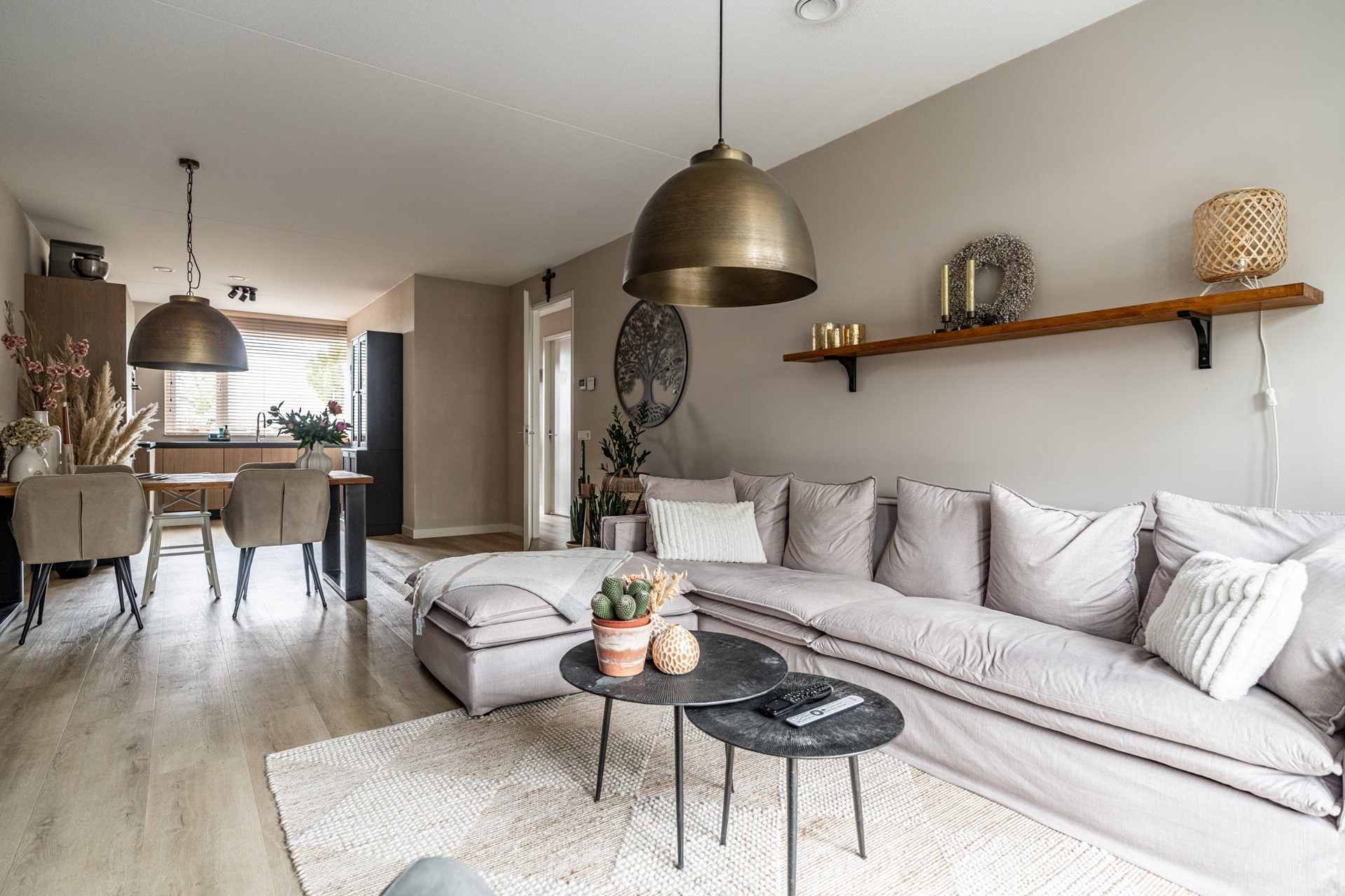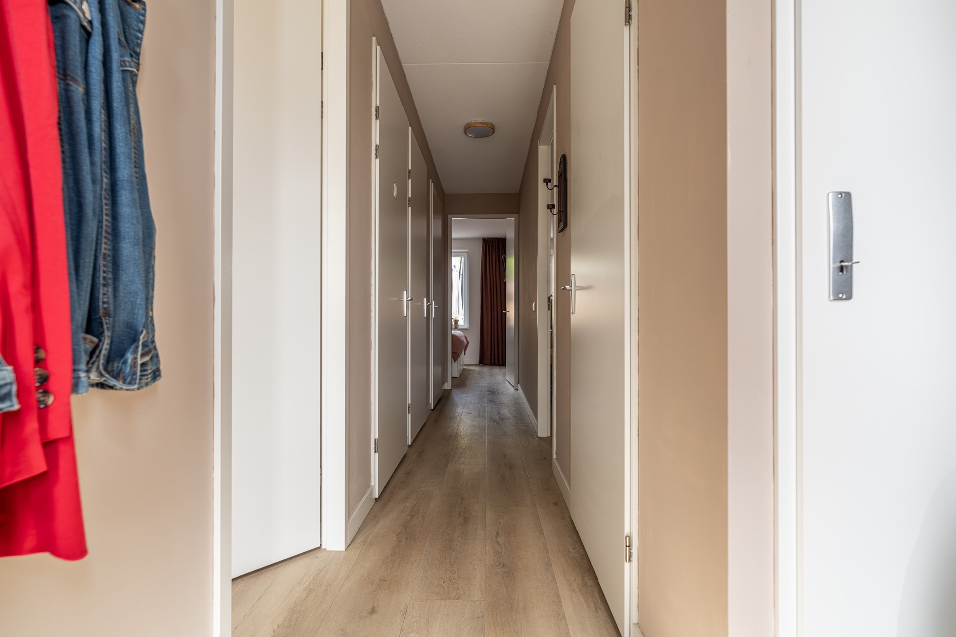 De lichte woonkamer ligt aan de tuinzijde en is een fijne plek om te ontspannen. Via de openslaande deuren loopt u zo de heerlijke achtertuin in — een ideale plek om te zitten, te genieten van de zon of te tuinieren. Helemaal achterin vindt u een ruime berging en een achterom.