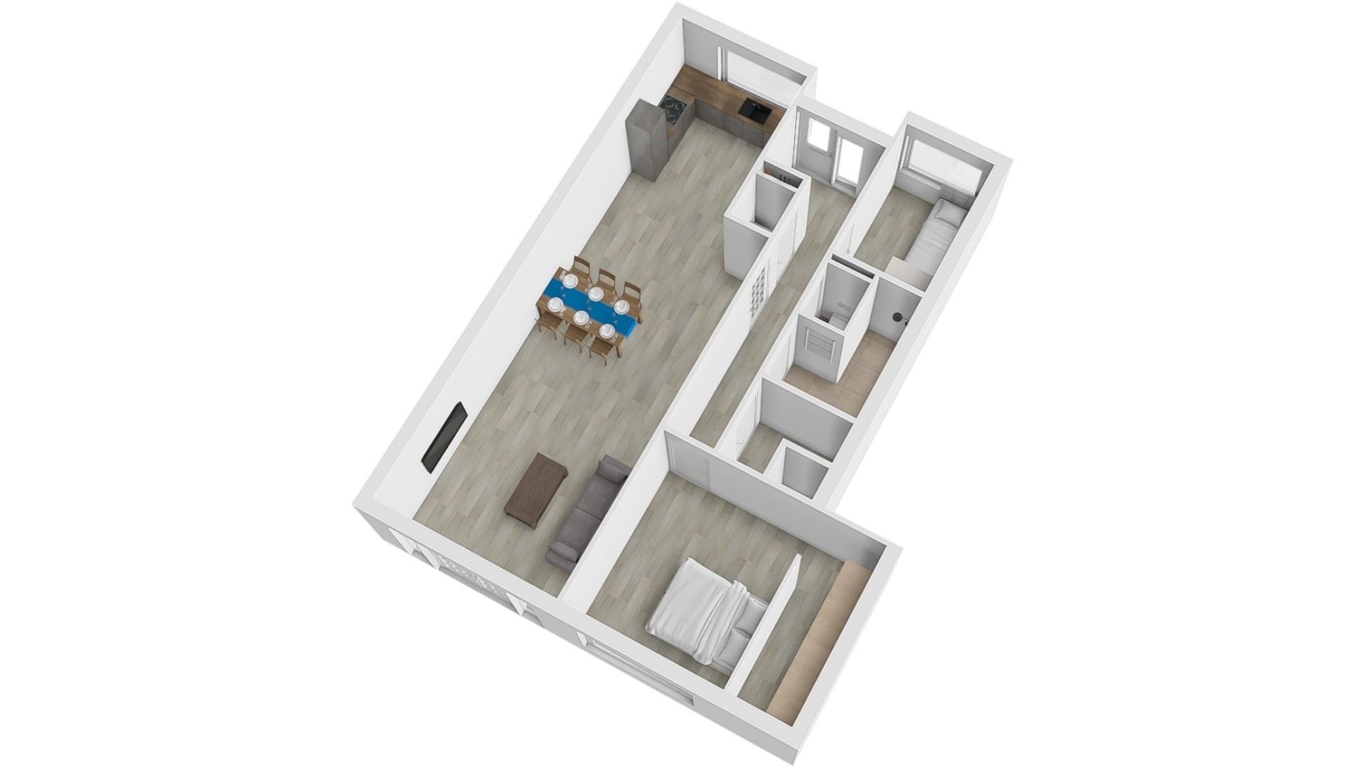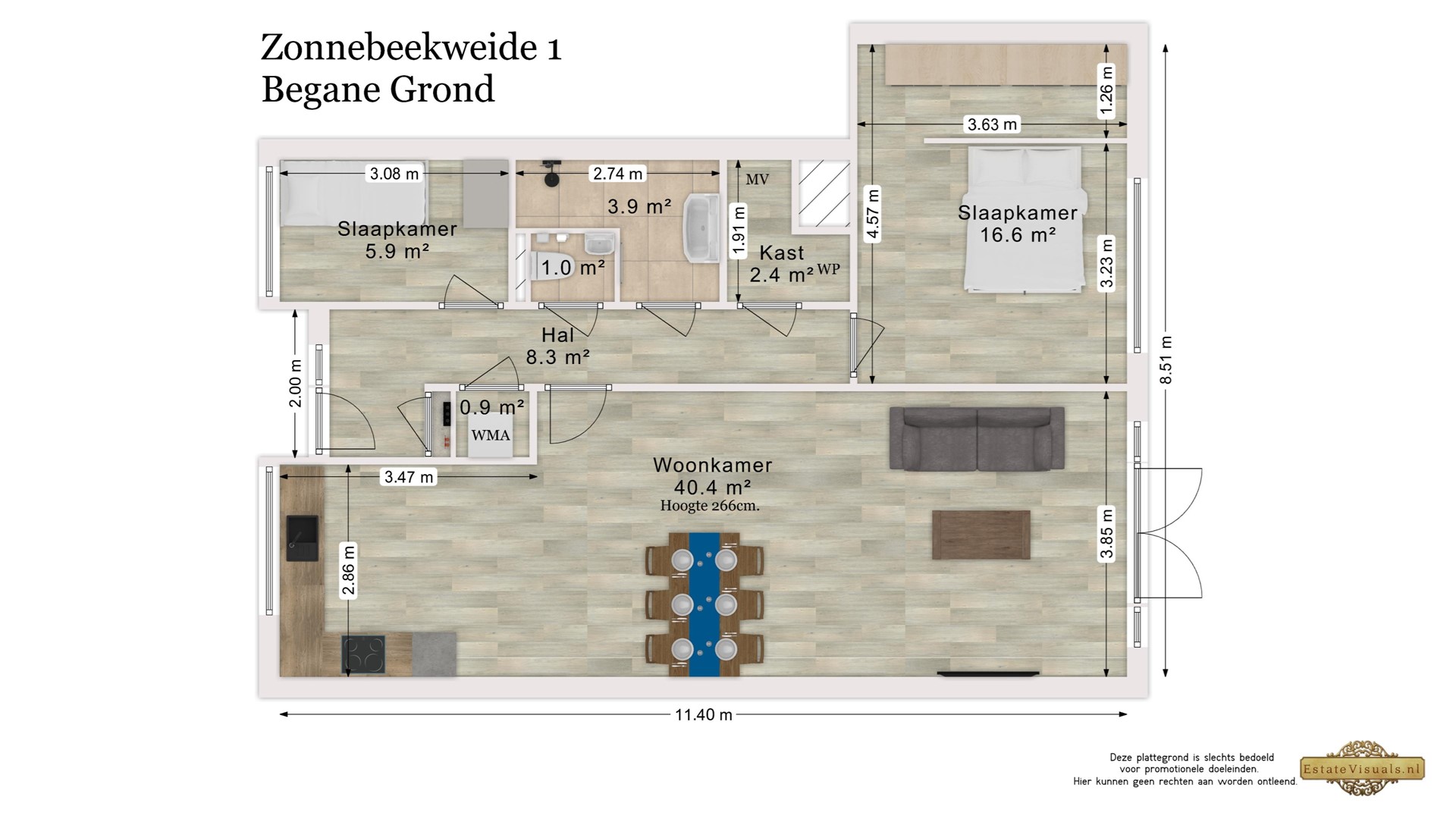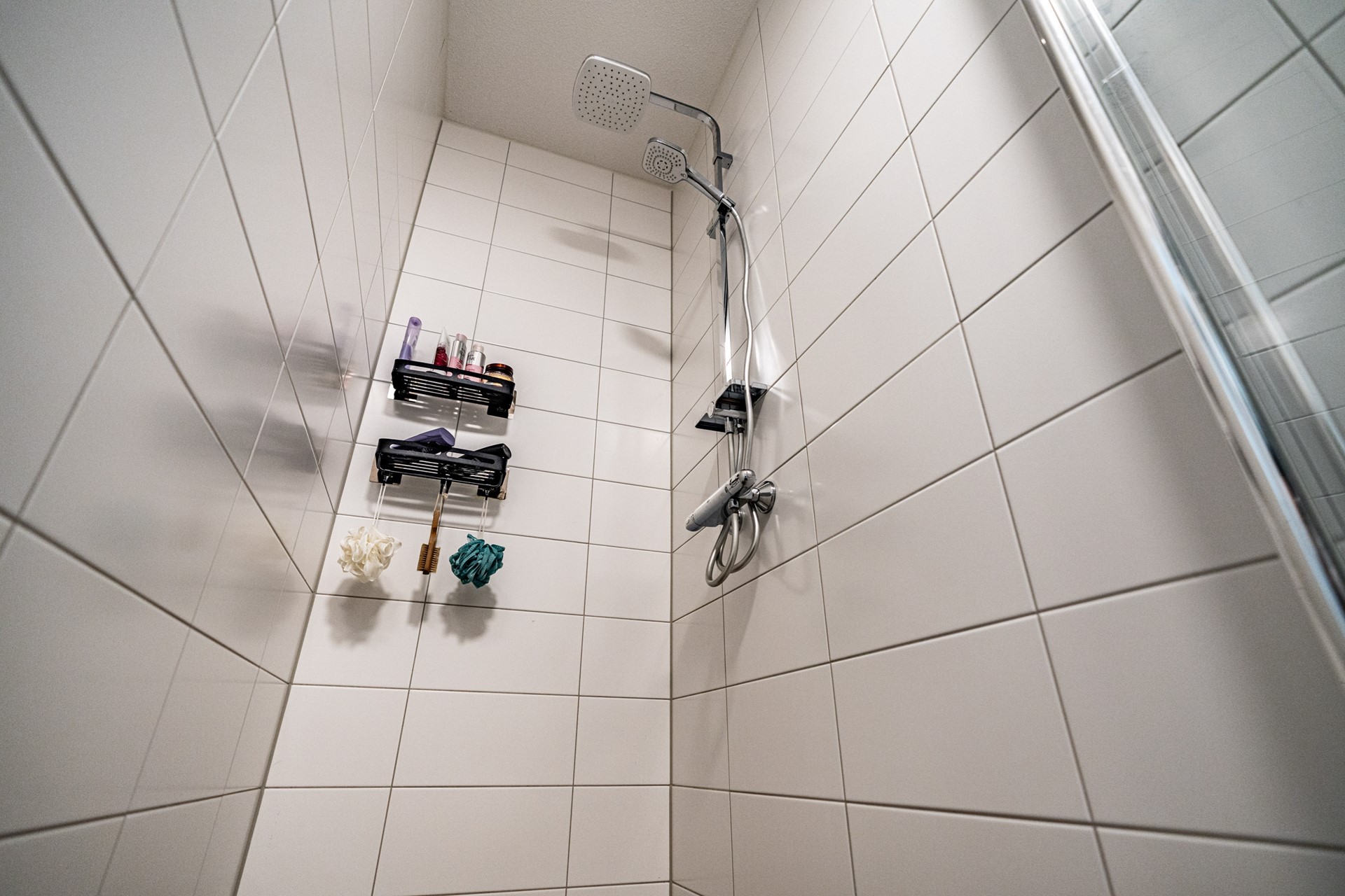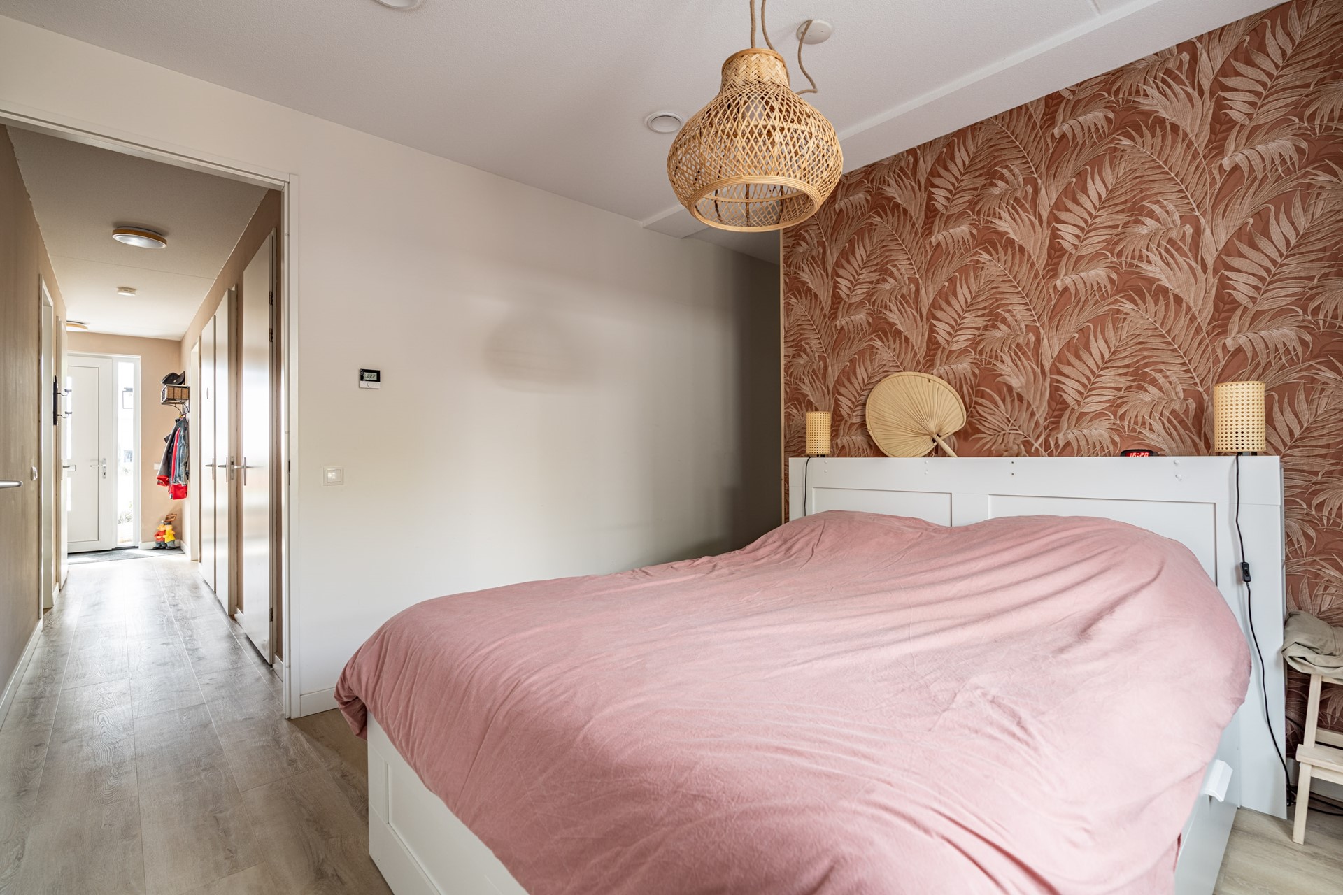 Het appartement beschikt over twee slaapkamers, waarvan één aan de voorzijde en één aan de achterzijde. De volledig betegelde badkamer is voorzien van een comfortabele inloopdouche en een stijlvol wastafelmeubel. Daarnaast zijn via de centrale hal het separate toilet, de wasruimte en de technische ruimte (met volop bergruimte) bereikbaar.