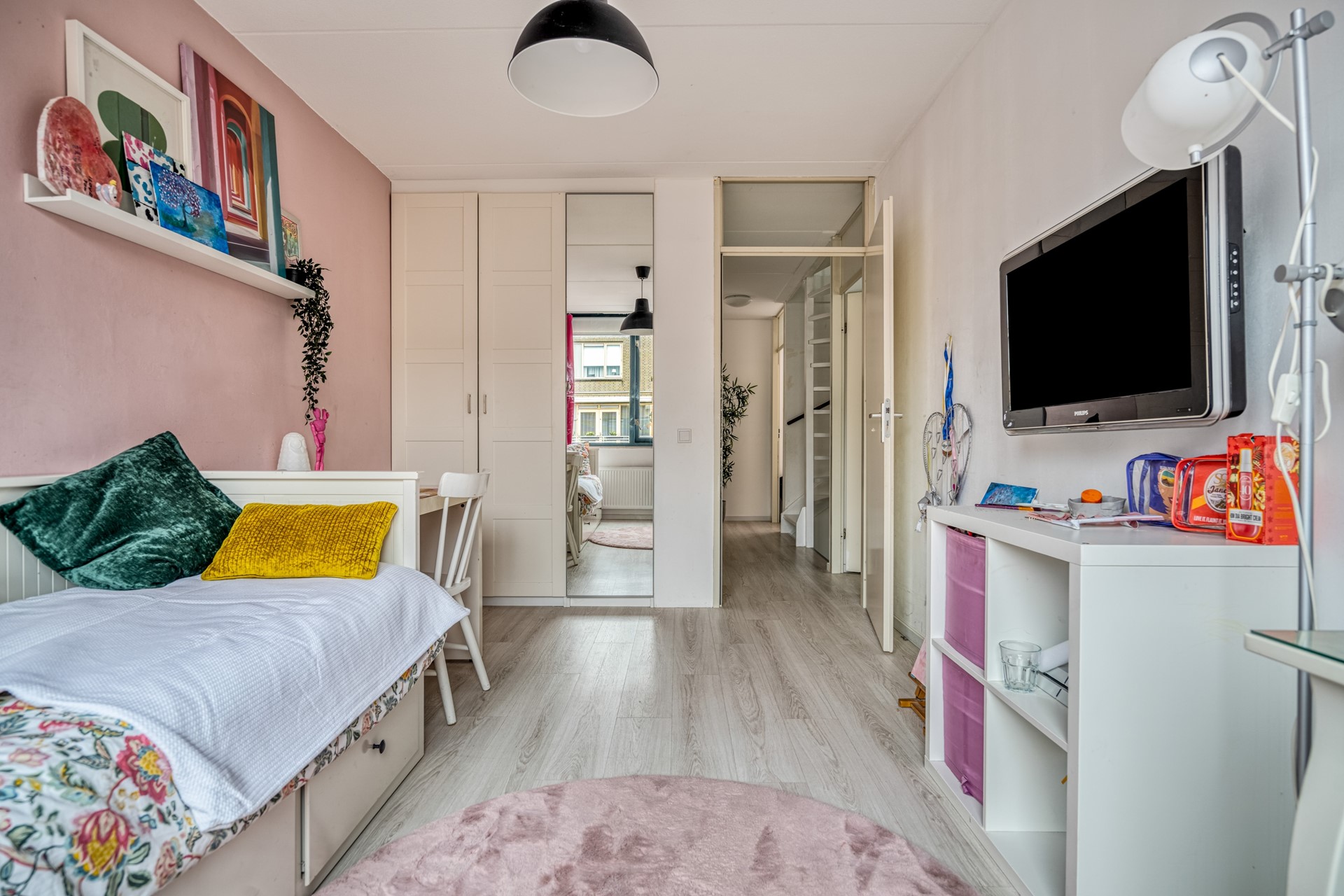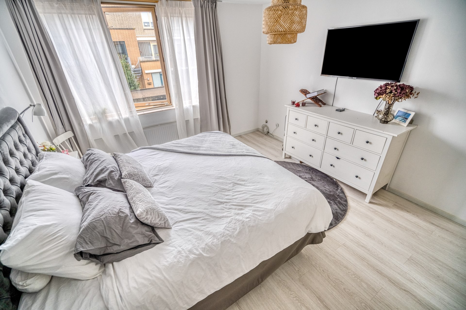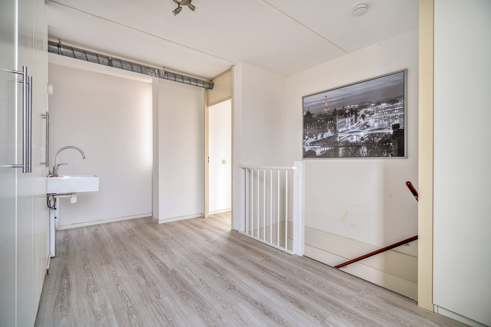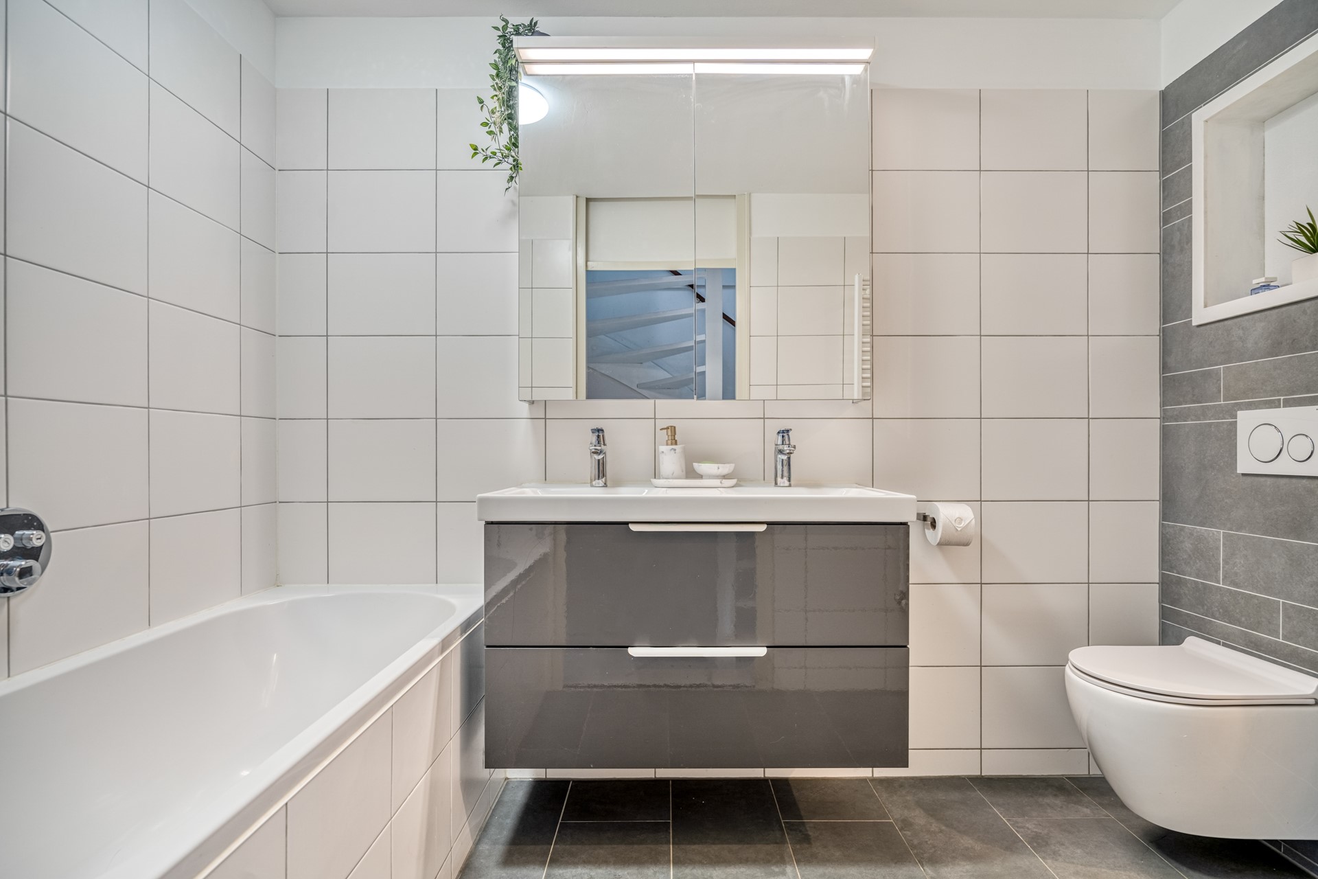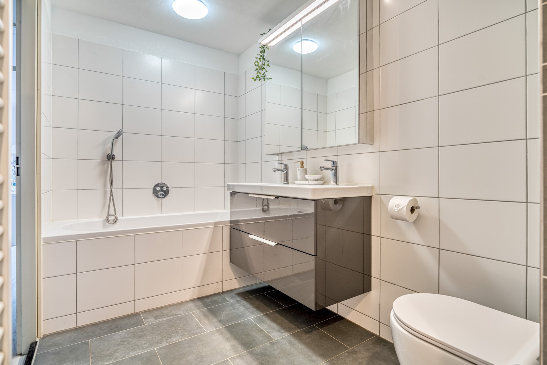 Overloop met toegang tot drie goed bemeten slaapkamers, waarvan één met balkon aan de straatzijde. De lichte badkamer (2019) beschikt over een ligbad, inloopdouche, toilet, dubbele wastafel en designradiator.