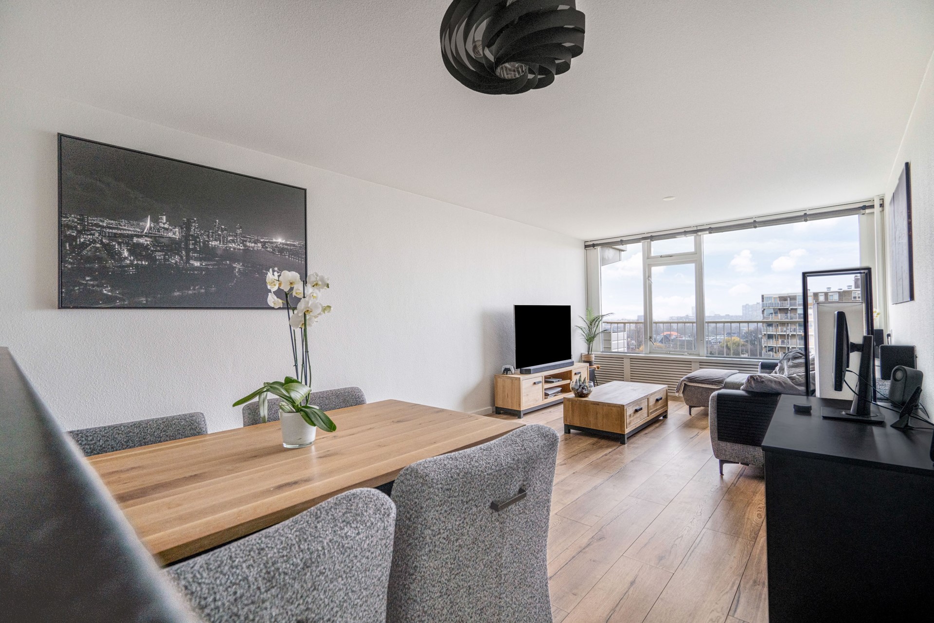 • Raam in woonkamer en balkondeur voorzien van een hor