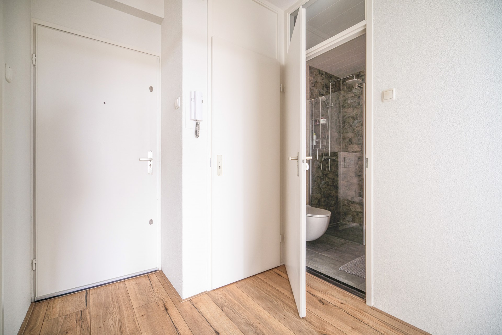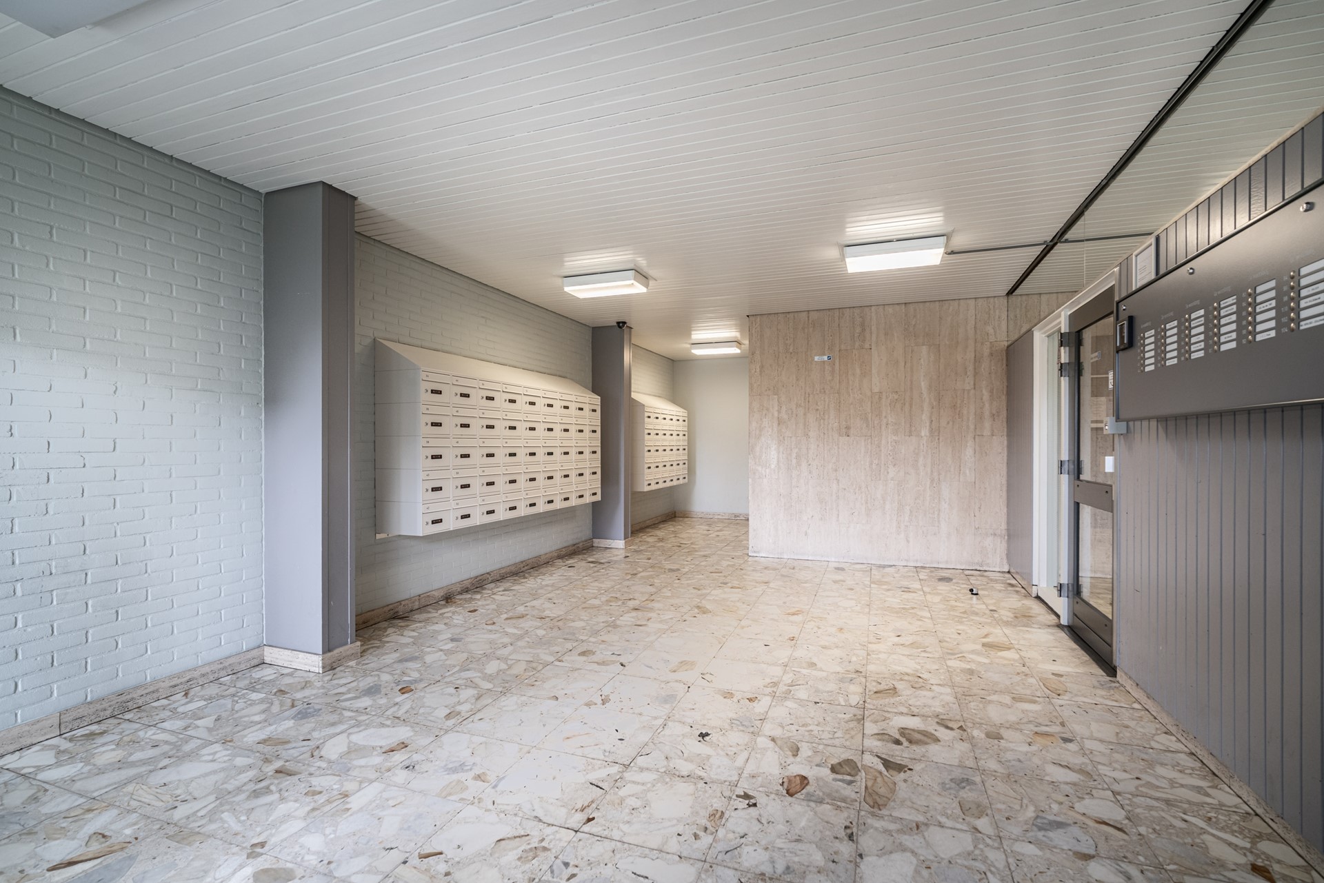 Centrale entree op de begane grond met intercomsysteem, bellentableau en brievenbussen. In de afgesloten binnenhal bevinden zich de liften, het trappenhuis en de (fietsen)bergingen. De appartementen zijn bereikbaar via een gestoffeerde binnenhal, dus geen galerij.