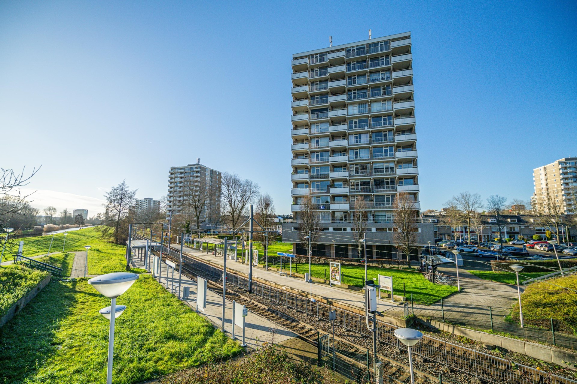 Het appartementengebouw heeft een centrale ligging direct naast de RandstadRail-halte, het winkelcentrum de Vijverhoek en iets verderop ligt het Burgemeester Vernèdepark. Het Stadshart en de Dorpsstraat liggen op loopafstand. In ca. 2 minuten rijden ligt de snelweg richting Utrecht, Den Haag, Rotterdam en Amsterdam.