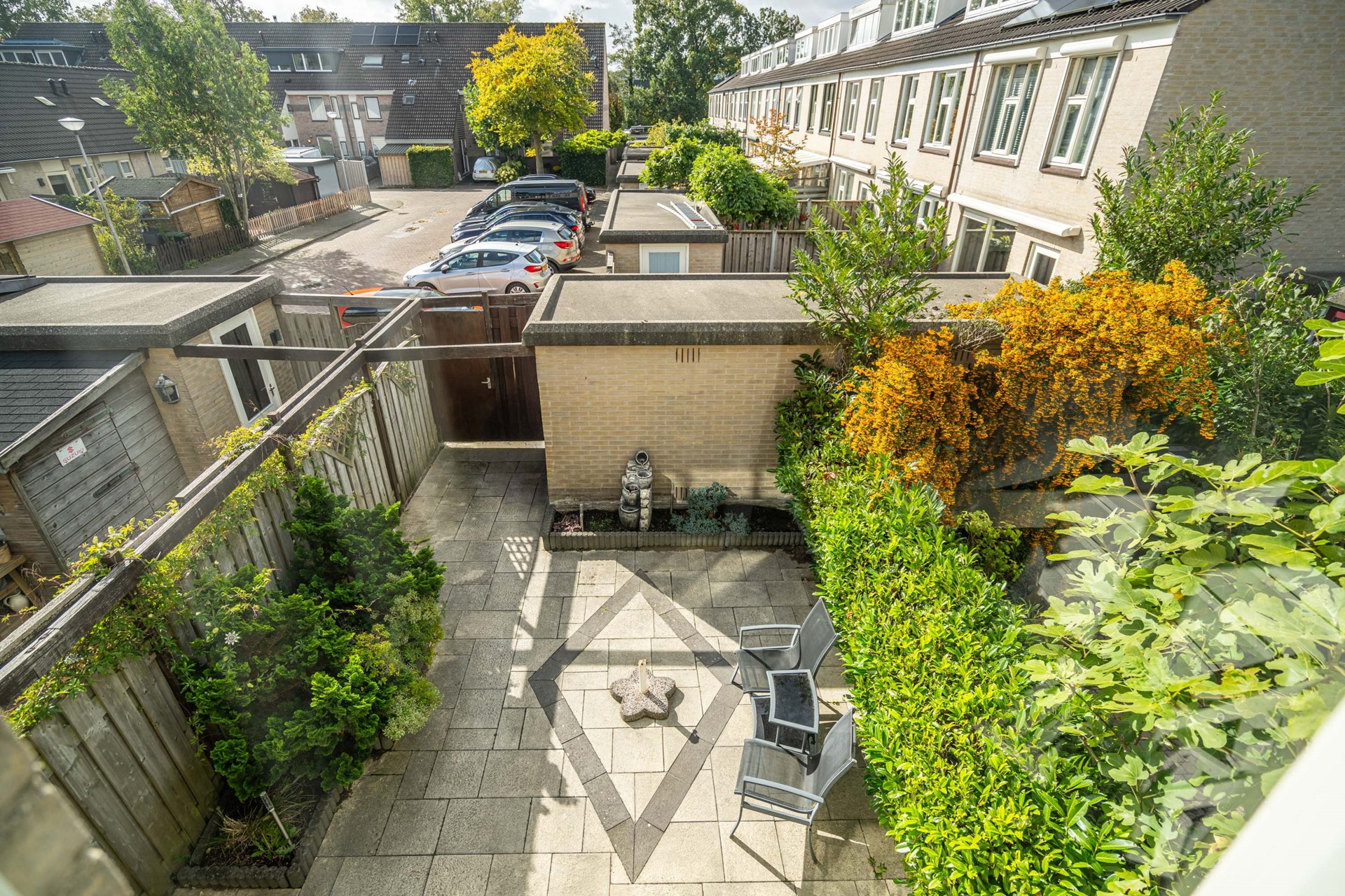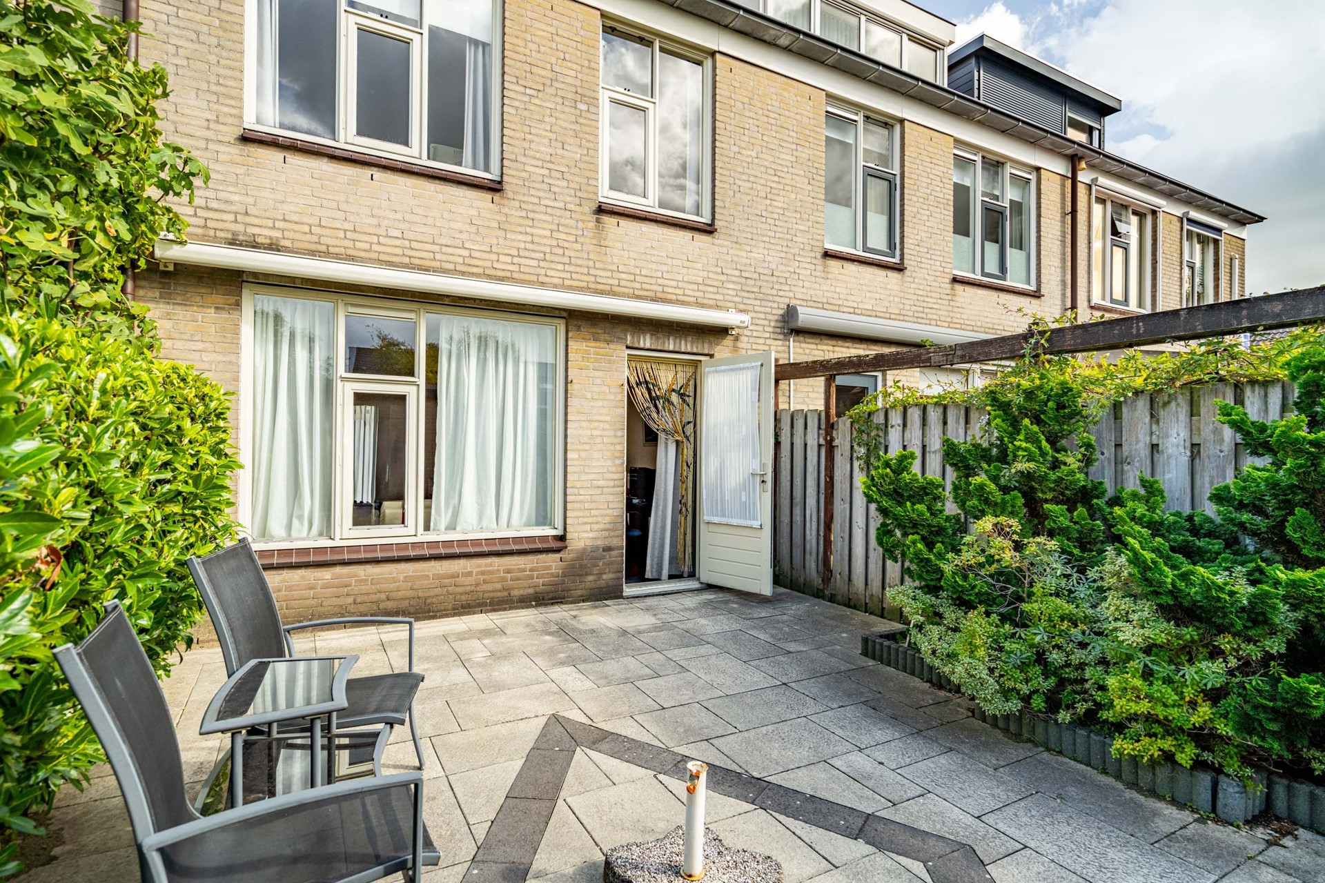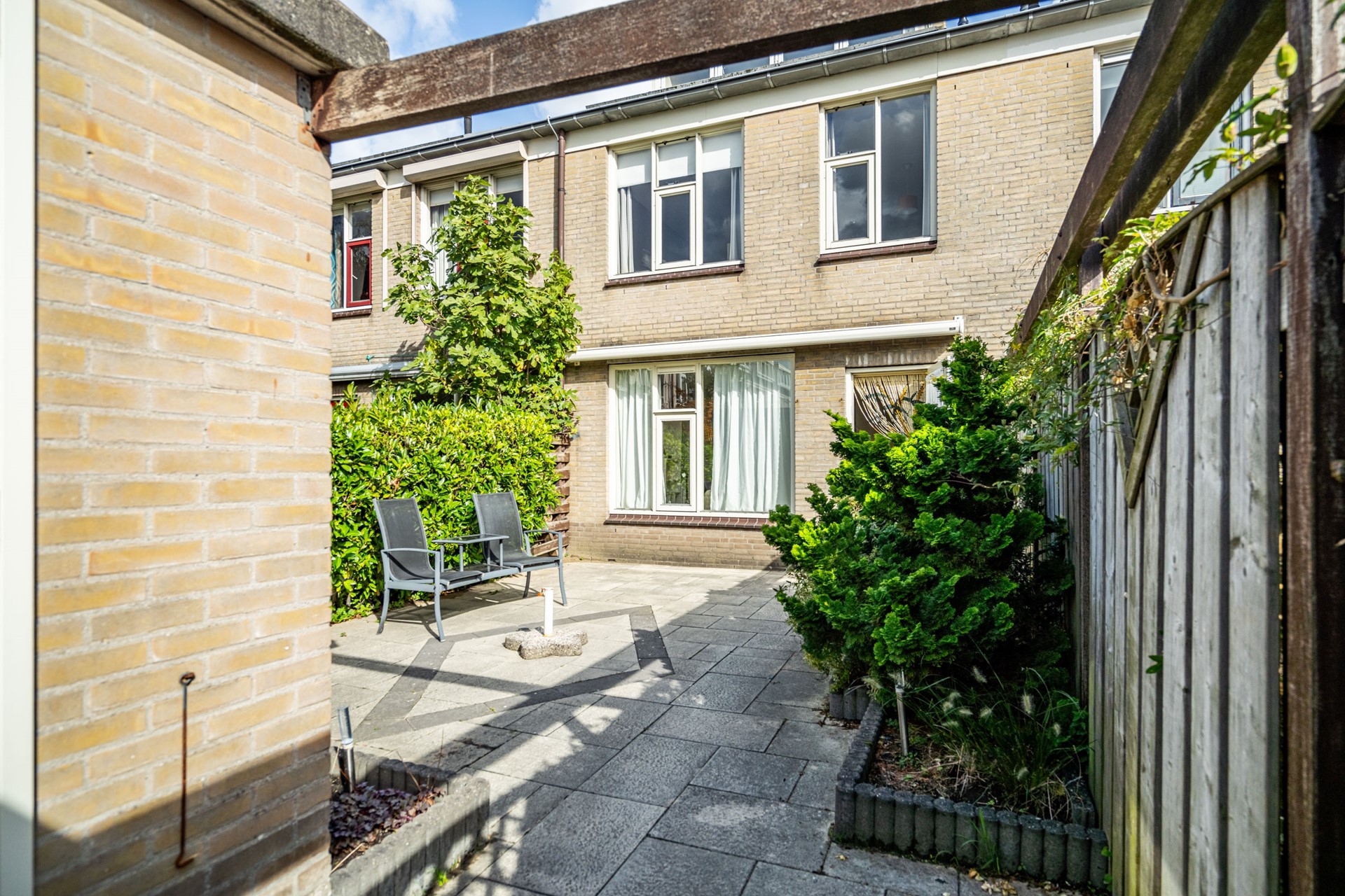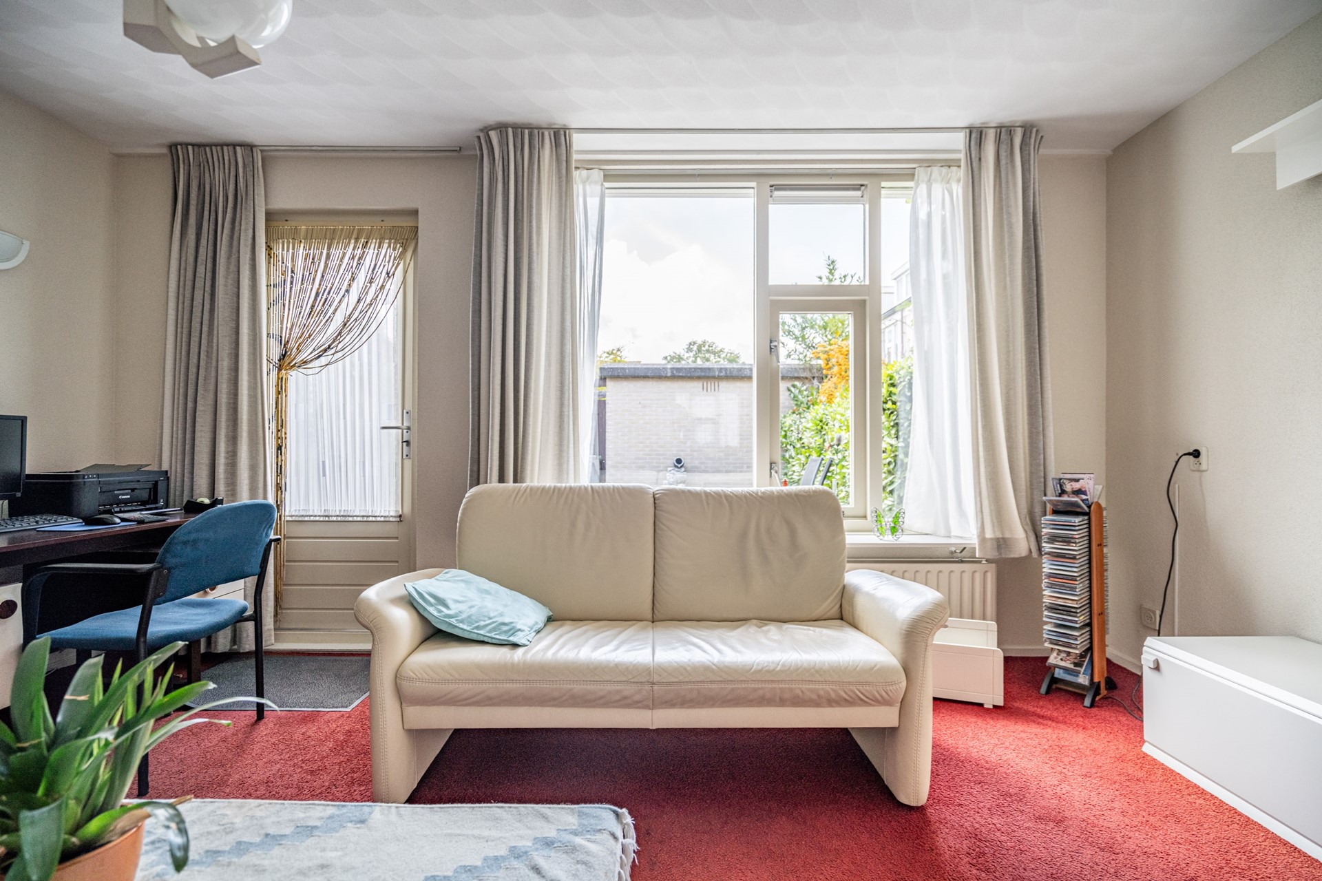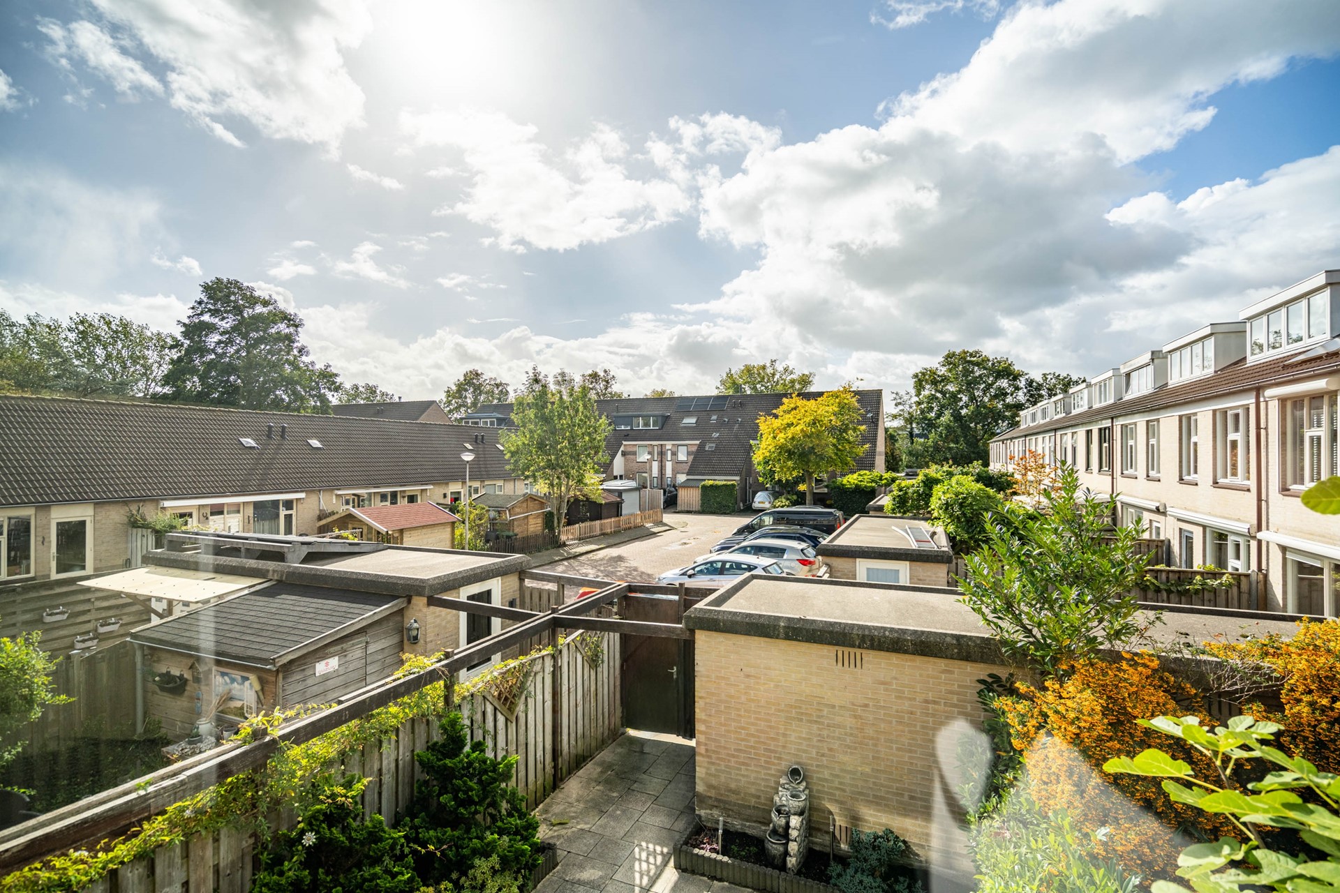 Aan de achterzijde bevindt zich de lichte woonkamer met uitzicht op de zonnige tuin. De onderhoudsvriendelijke achtertuin ligt op het westen, is voorzien van een stenen berging en heeft een achterom – perfect om de fiets te stallen of lekker buiten te genieten tot de zon ondergaat.