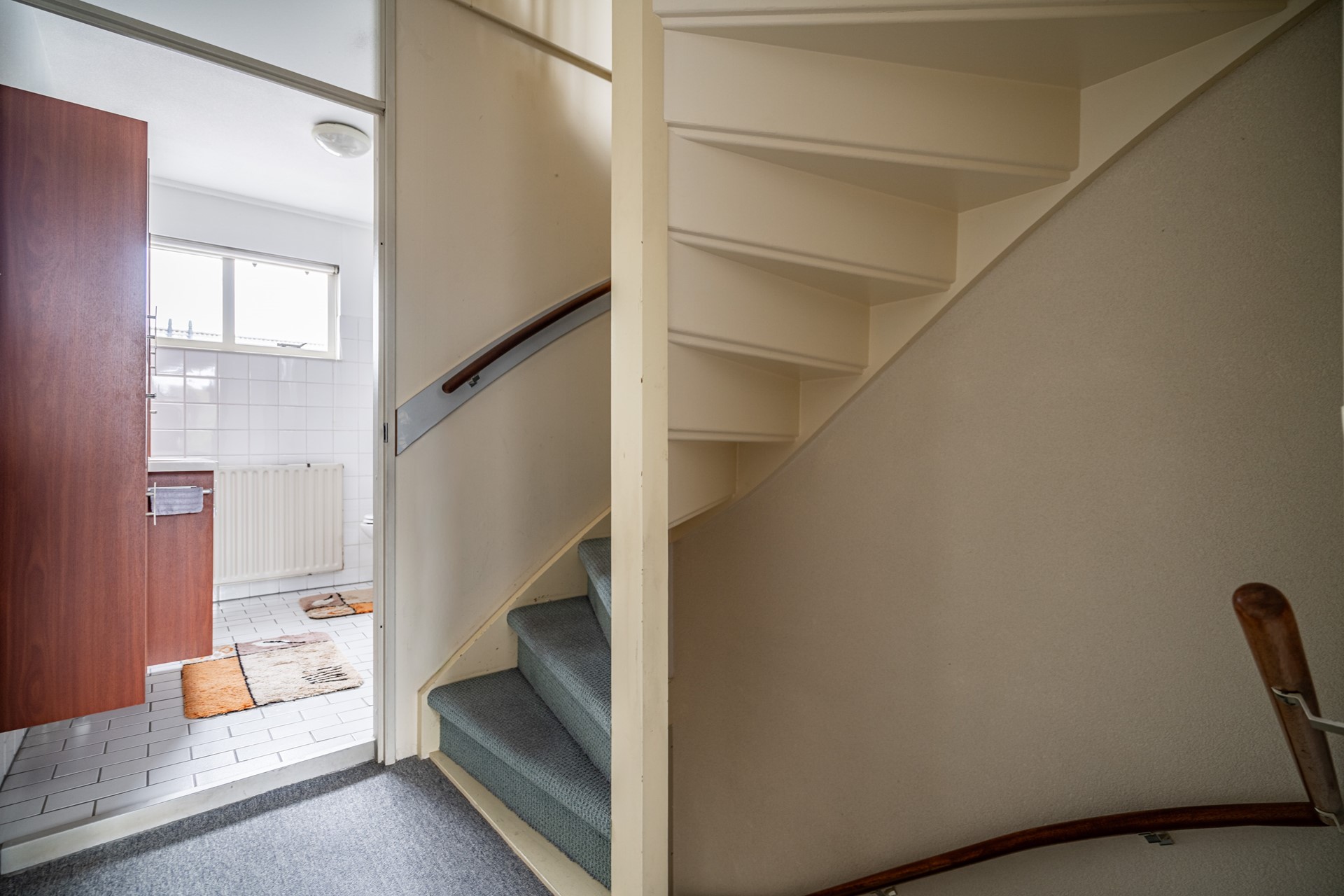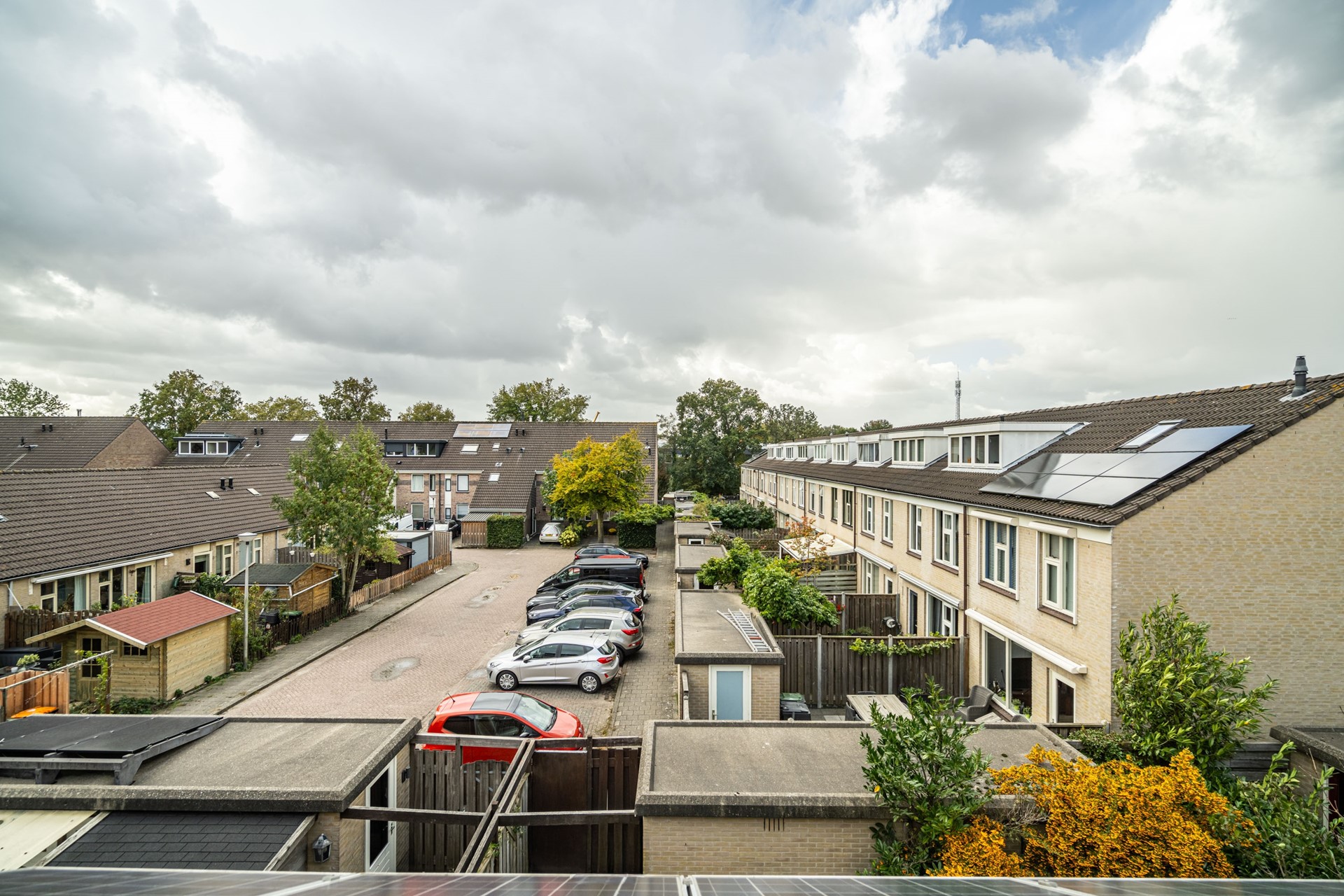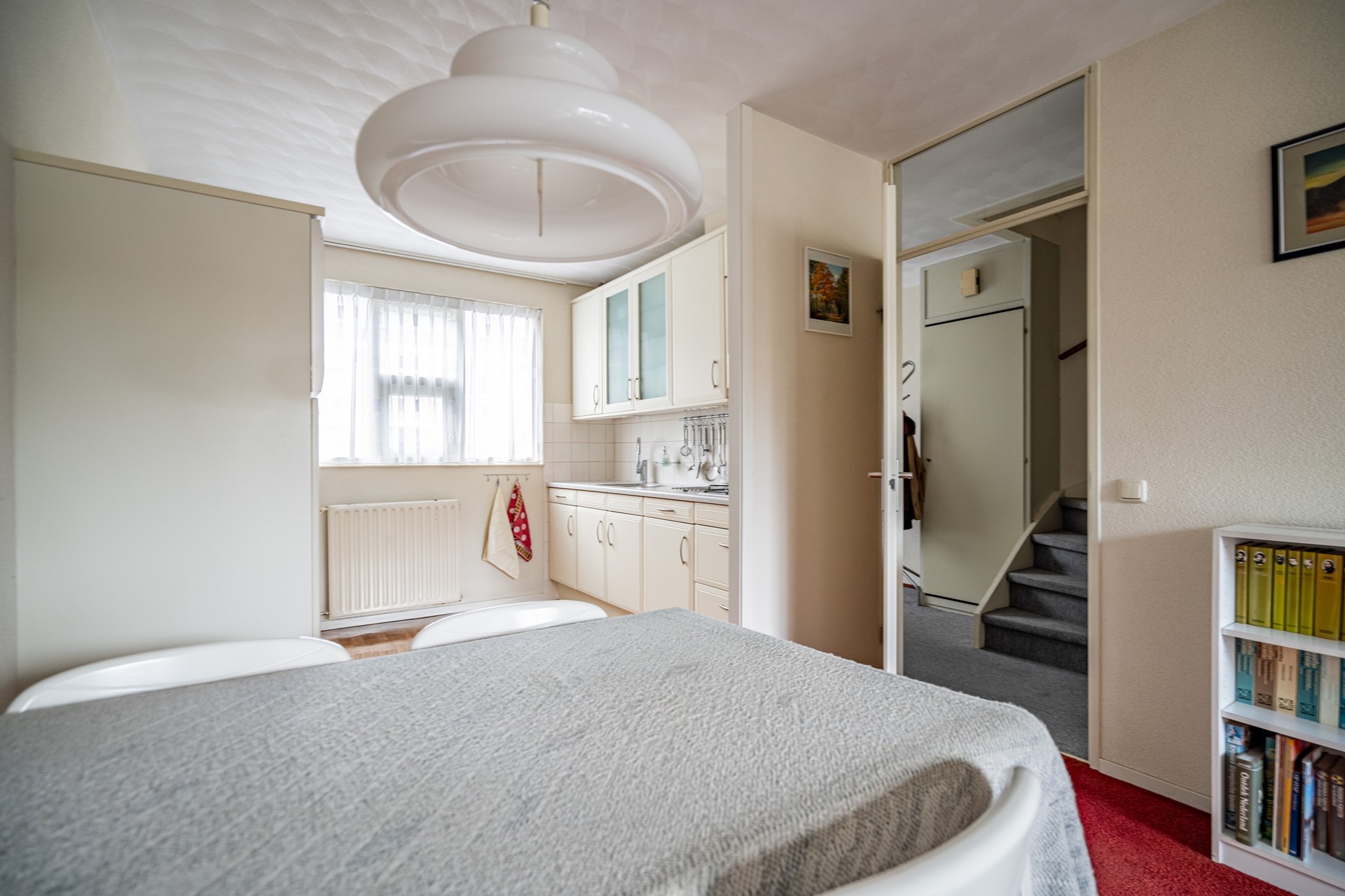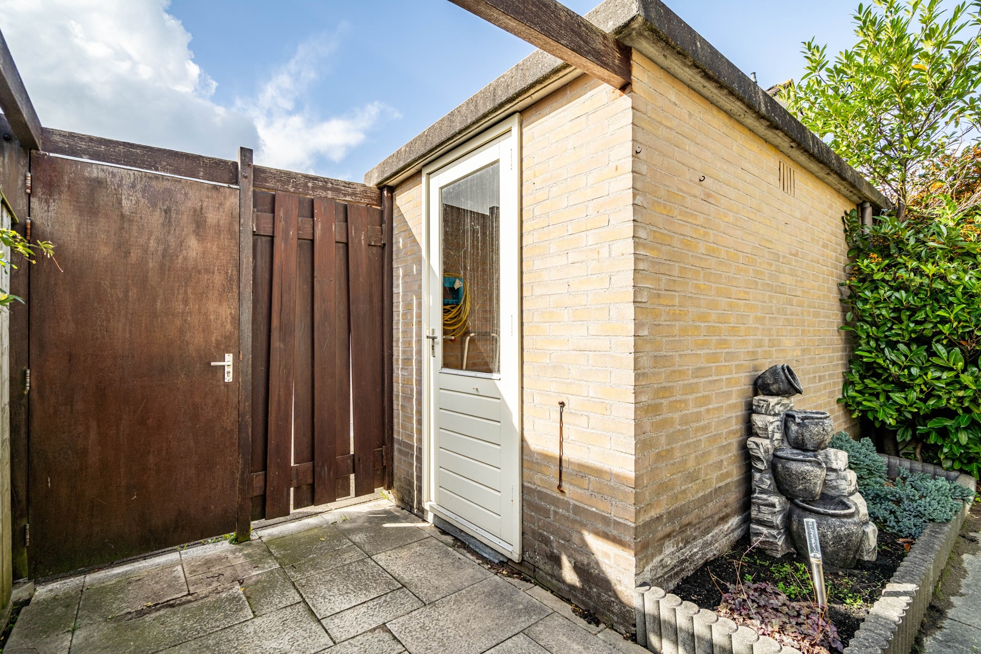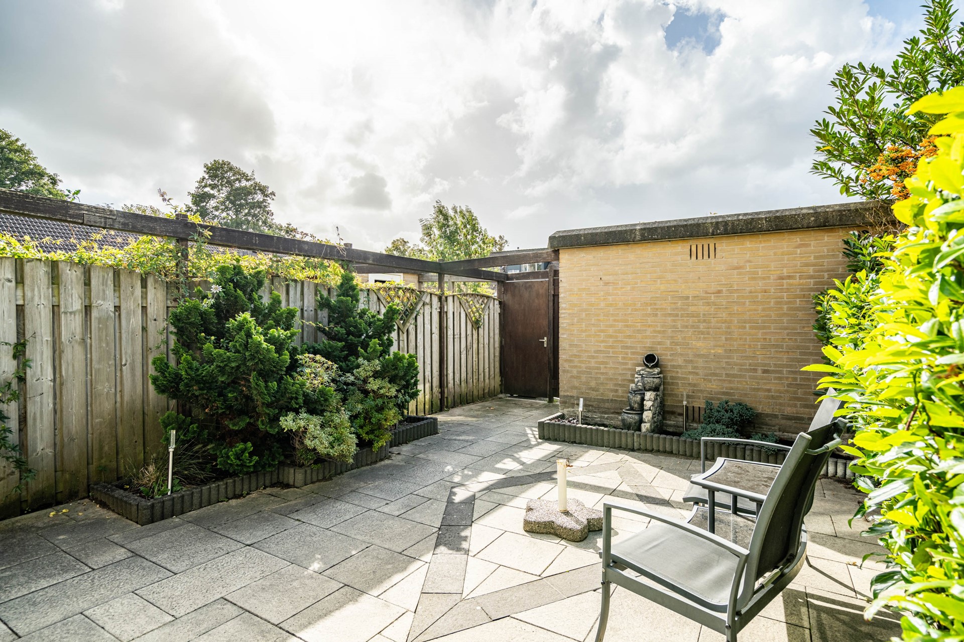 Aan de achterzijde bevindt zich de lichte woonkamer met uitzicht op de zonnige tuin. De onderhoudsvriendelijke achtertuin ligt op het westen, is voorzien van een stenen berging en heeft een achterom – perfect om de fiets te stallen of lekker buiten te genieten tot de zon ondergaat.