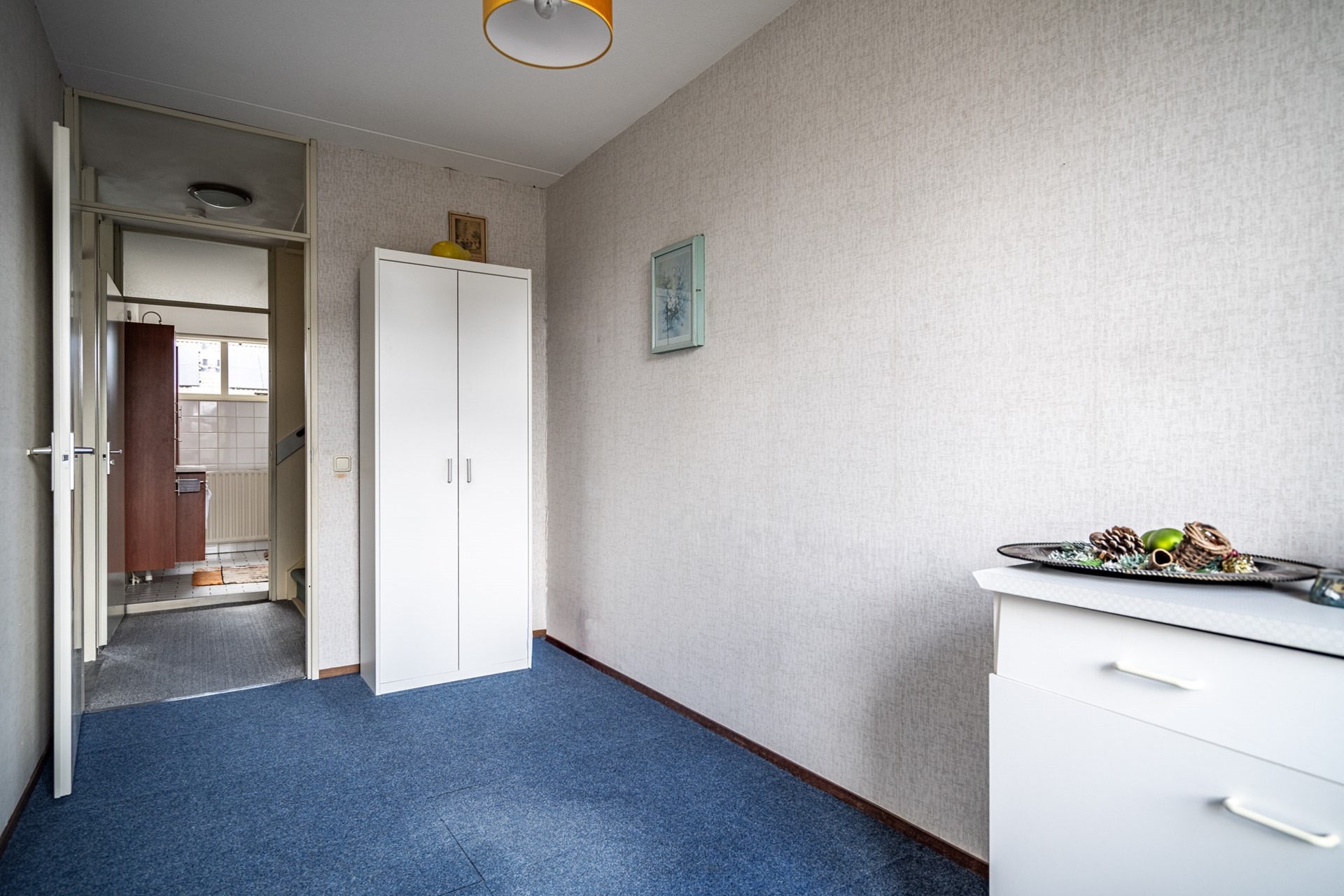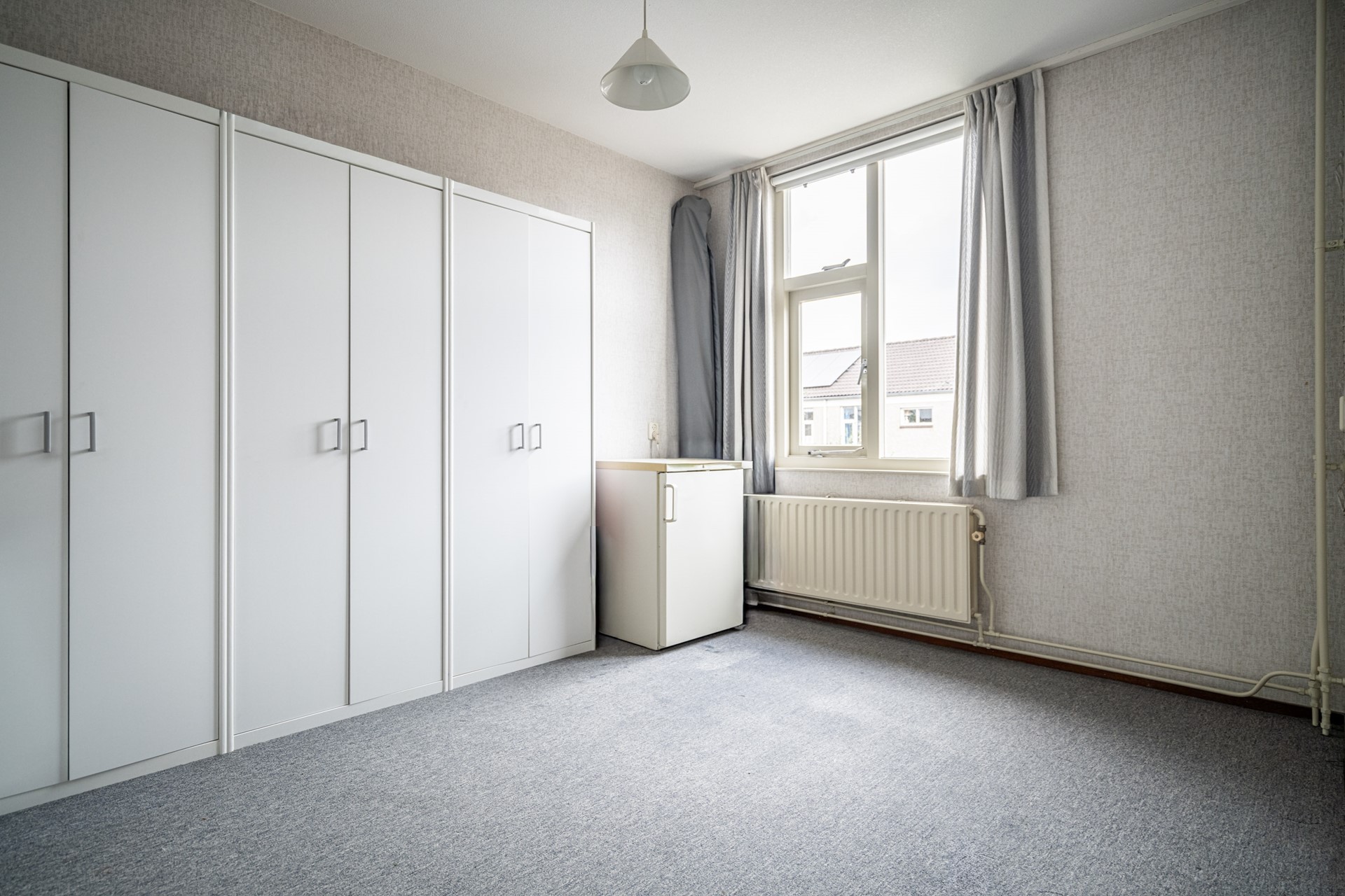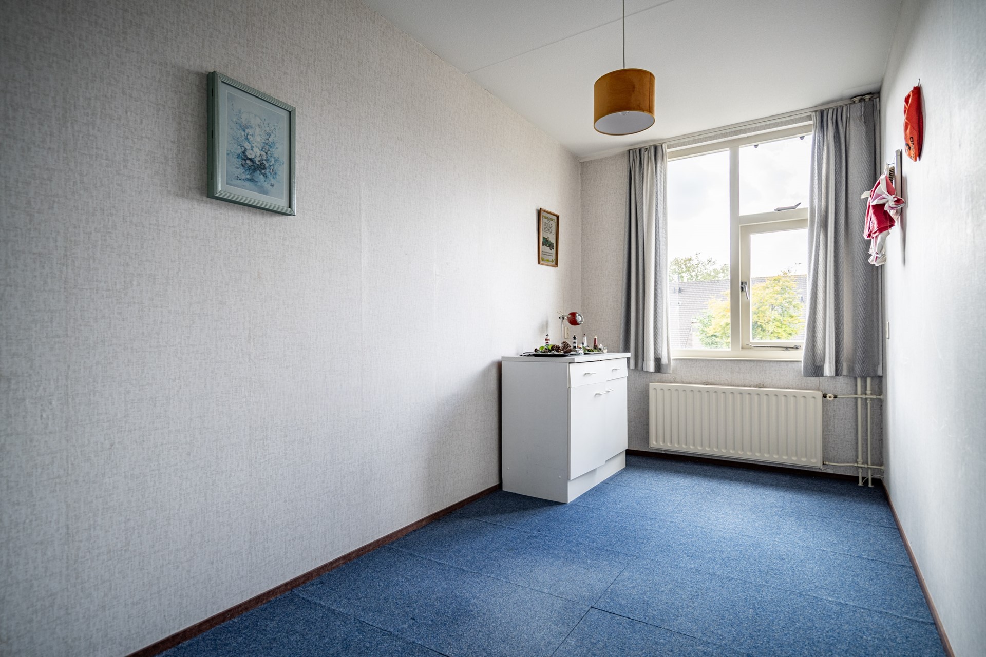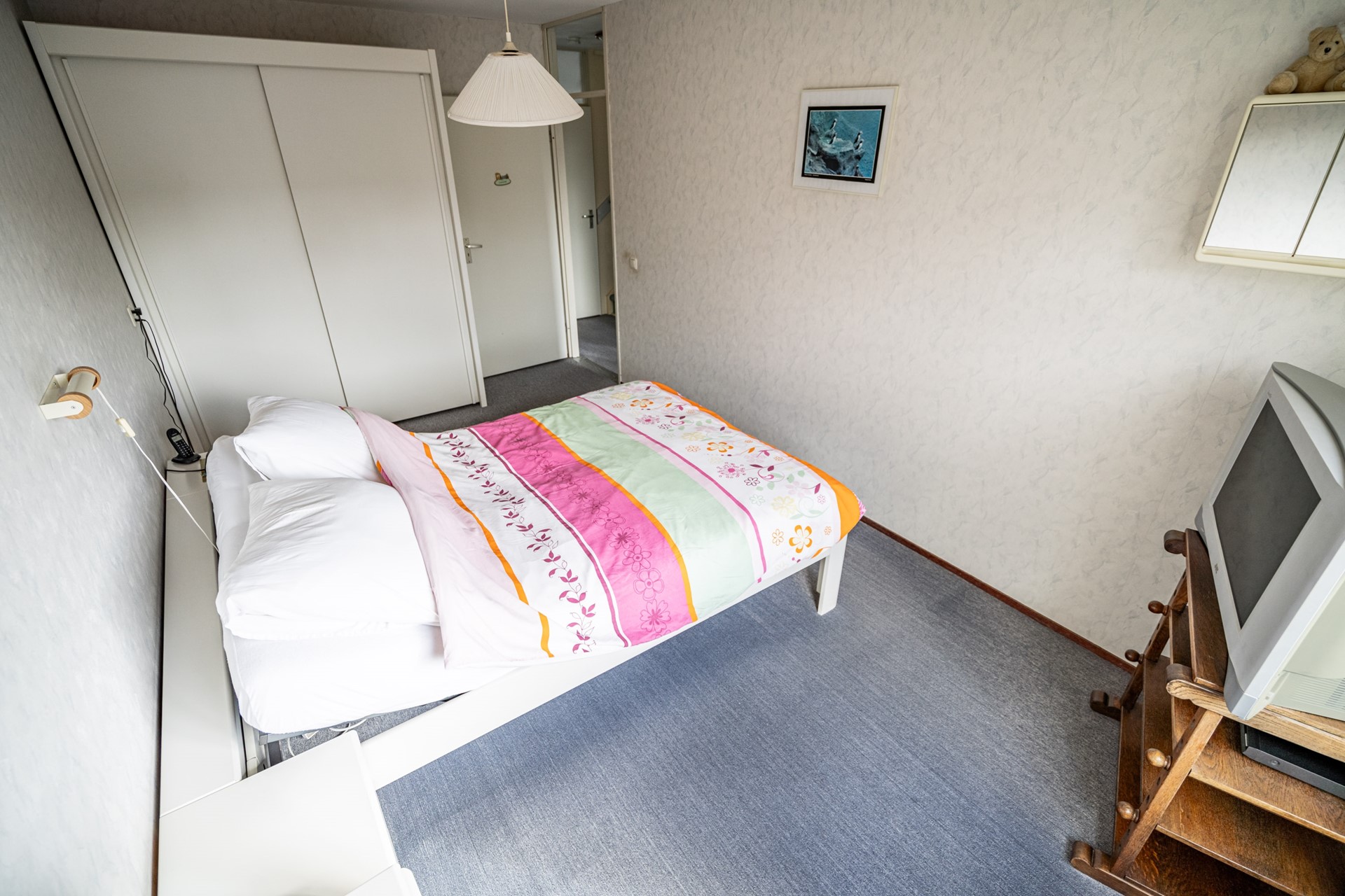 De vierde slaapkamer is heerlijk ruim dankzij het dakkapel en beschikt over veel bergruimte achter de knieschotten. Hier bevinden zich ook de aansluitingen voor de wasmachine/droger en de CV-installatie (2024) met mechanische ventilatie-unit.