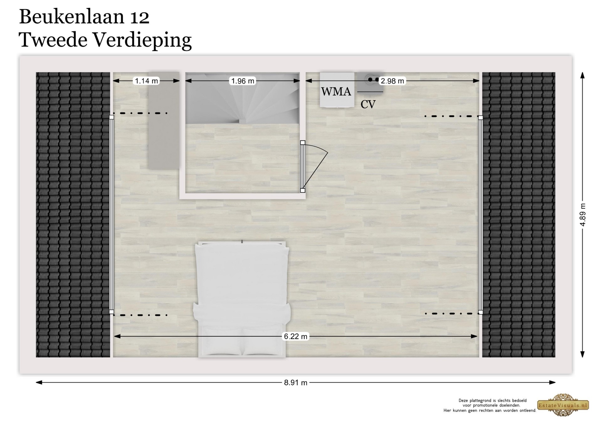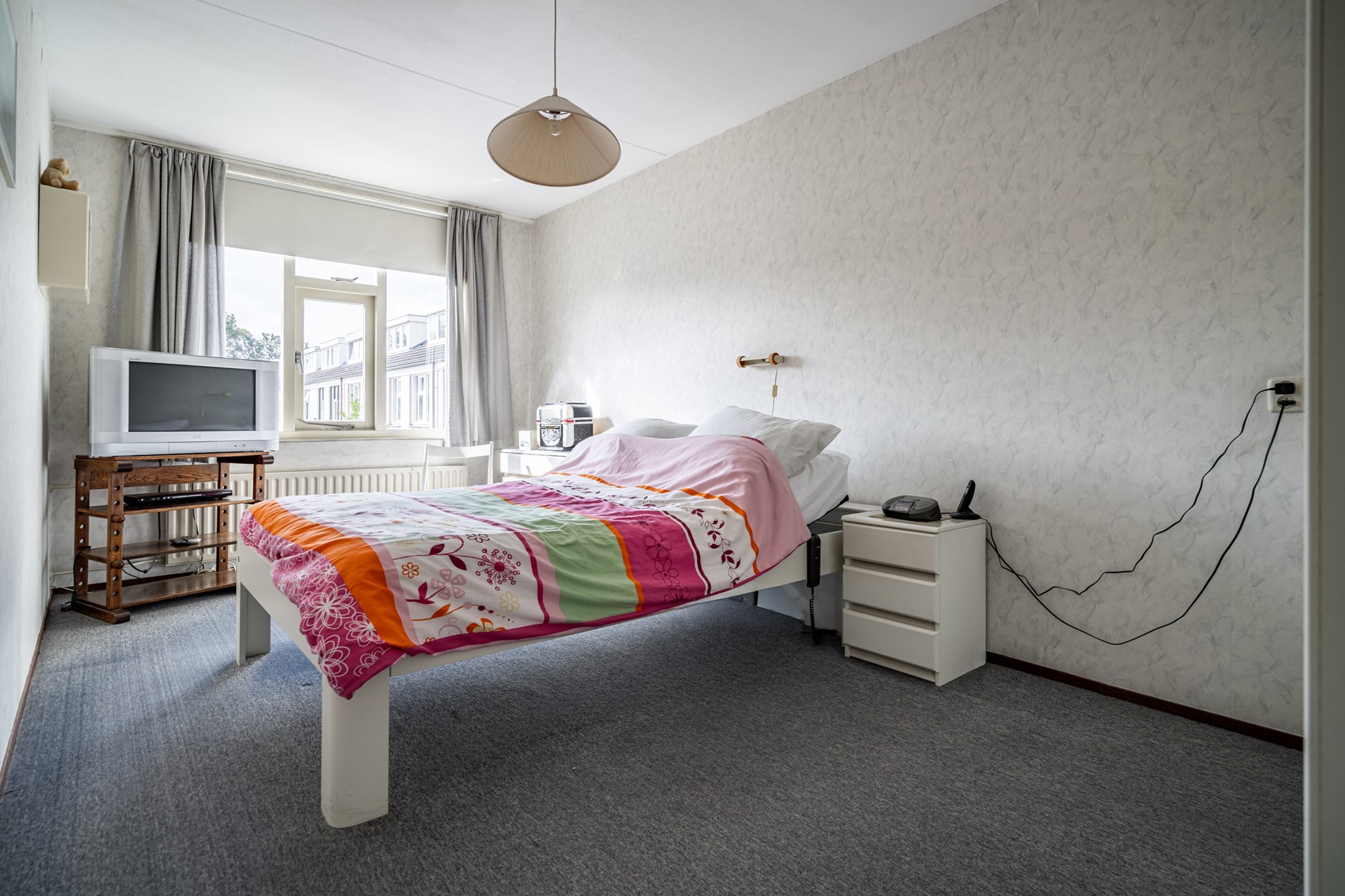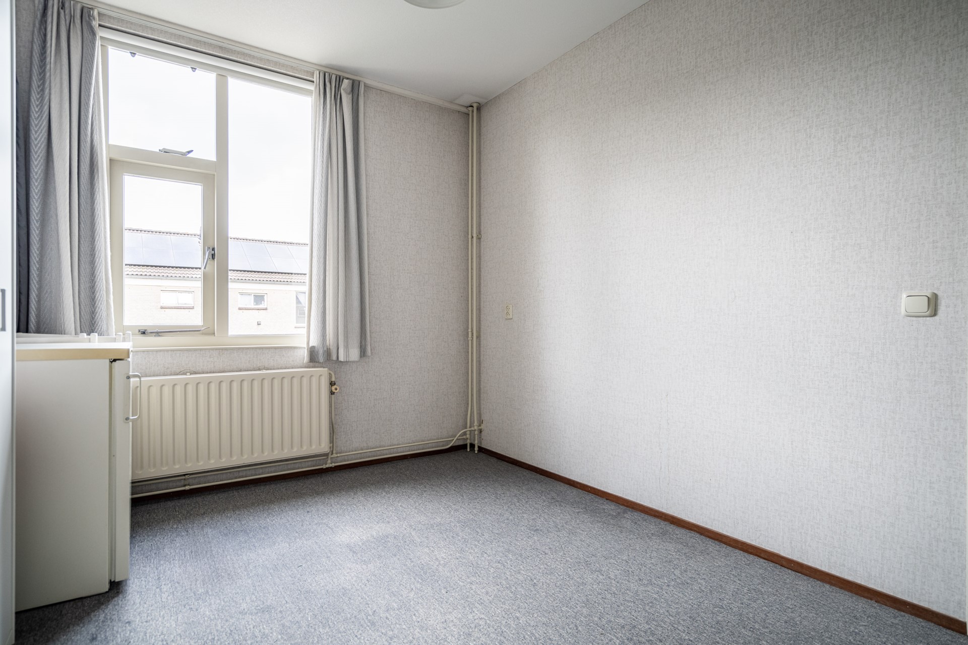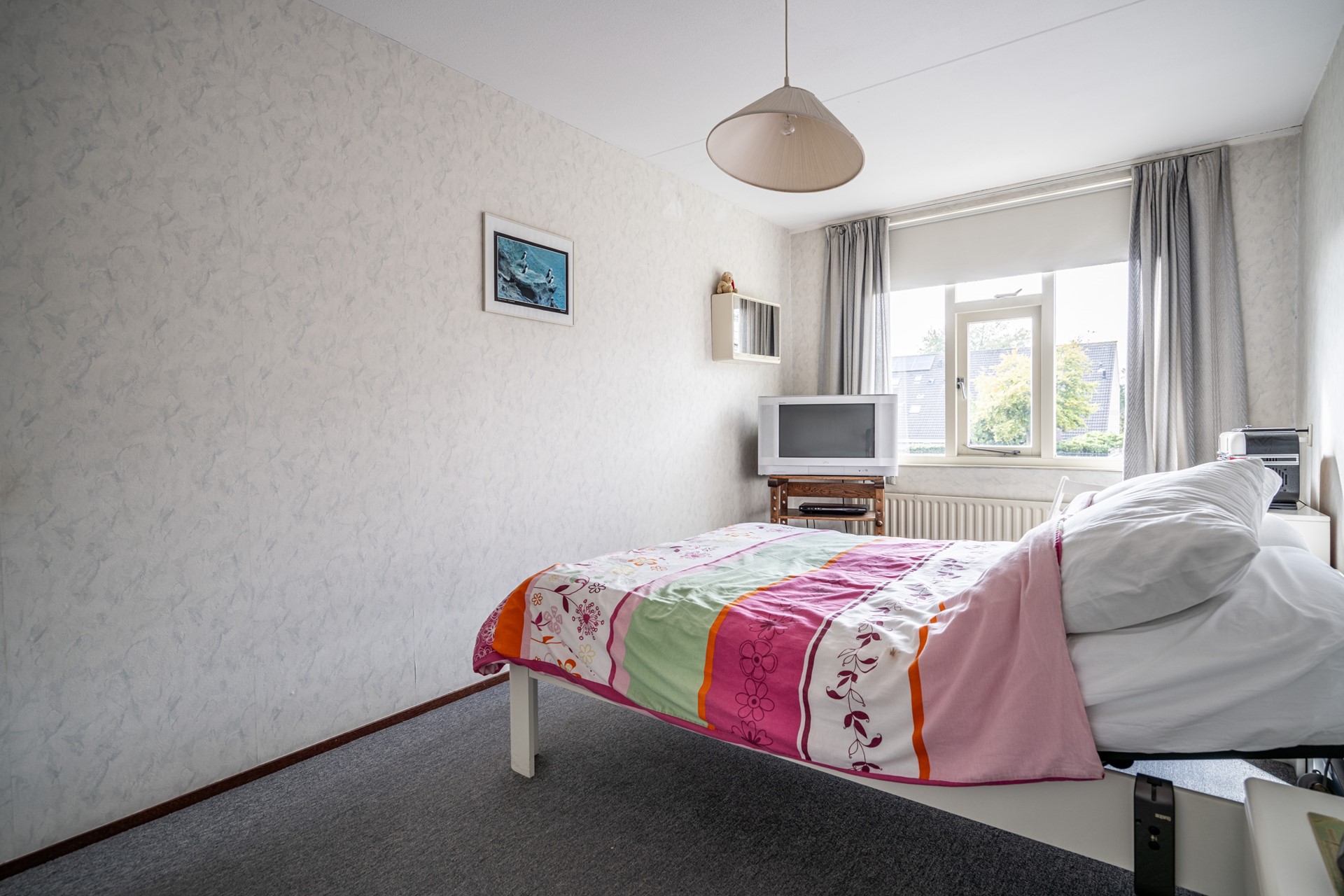 De vierde slaapkamer is heerlijk ruim dankzij het dakkapel en beschikt over veel bergruimte achter de knieschotten. Hier bevinden zich ook de aansluitingen voor de wasmachine/droger en de CV-installatie (2024) met mechanische ventilatie-unit.