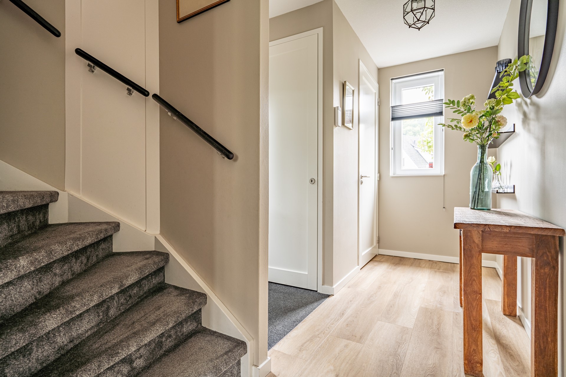 Via een dichte vaste trap met vloerbekleding bereikt u de tweede verdieping.