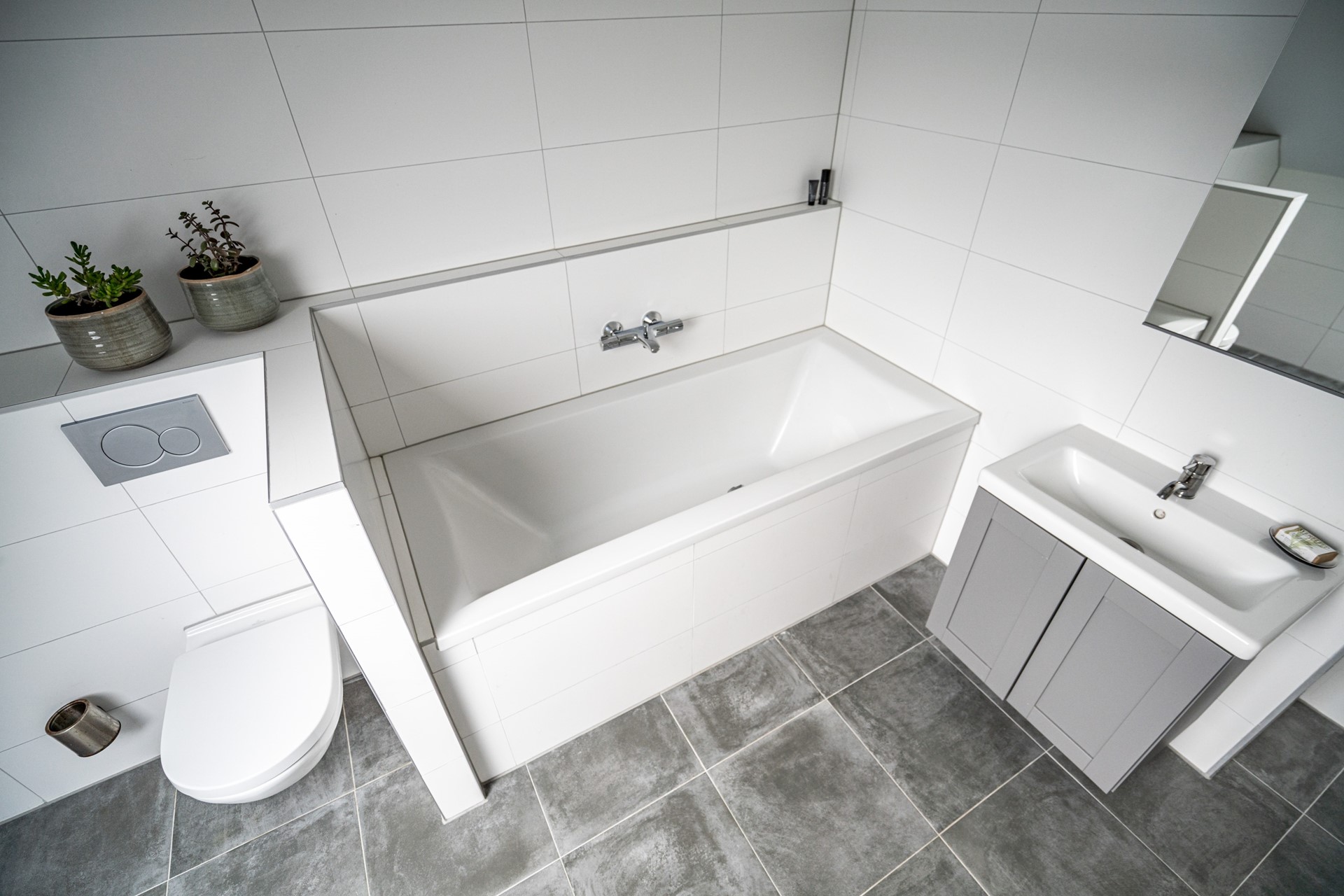 De luxe badkamer heeft een zeer efficiënte en speelse indeling en is afgewerkt met luxe tegels. Er is een toilet, inloopdouche en grote wastafel. In de douche is een nis gecreëerd voor uw doucheproducten.