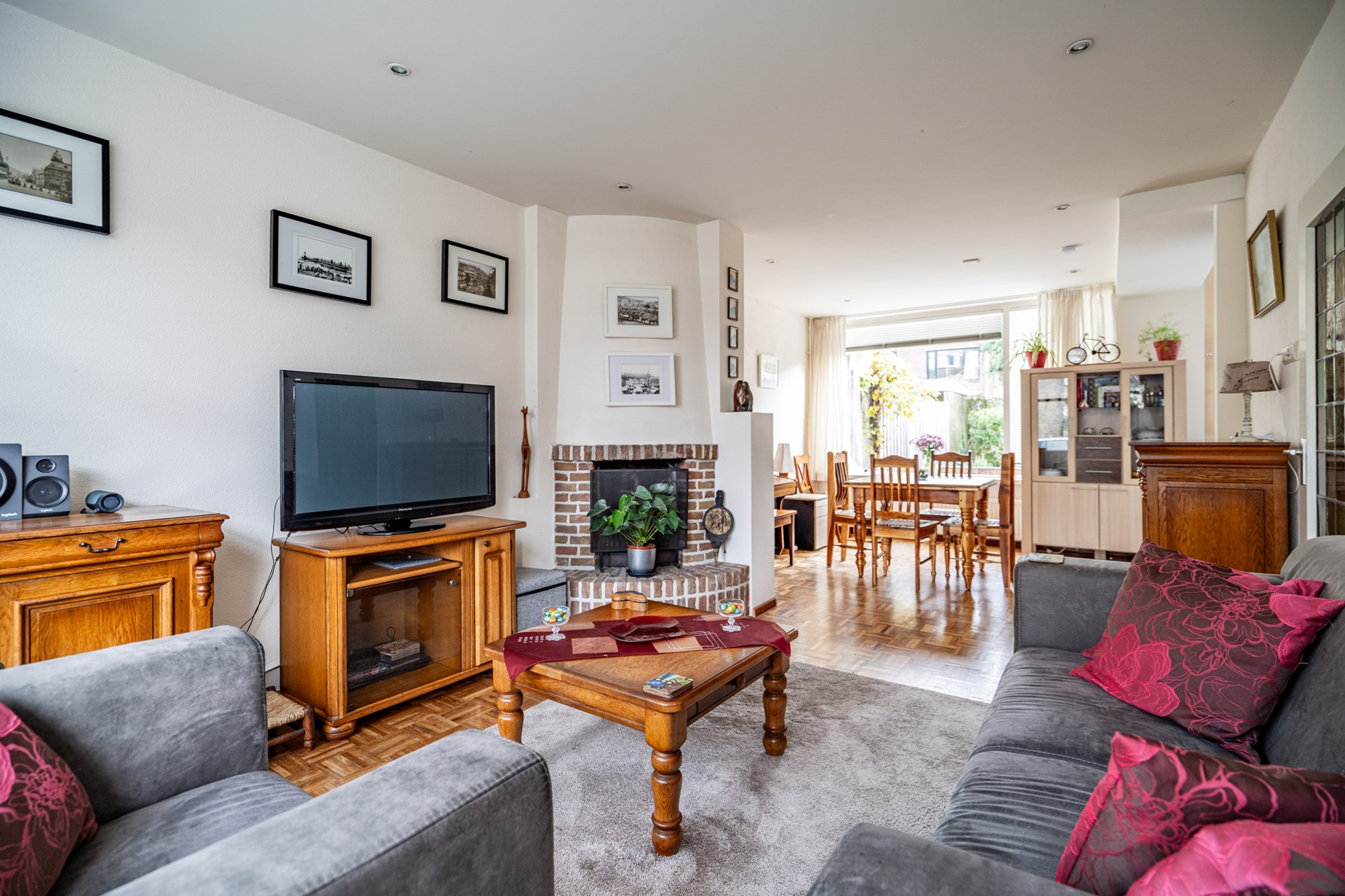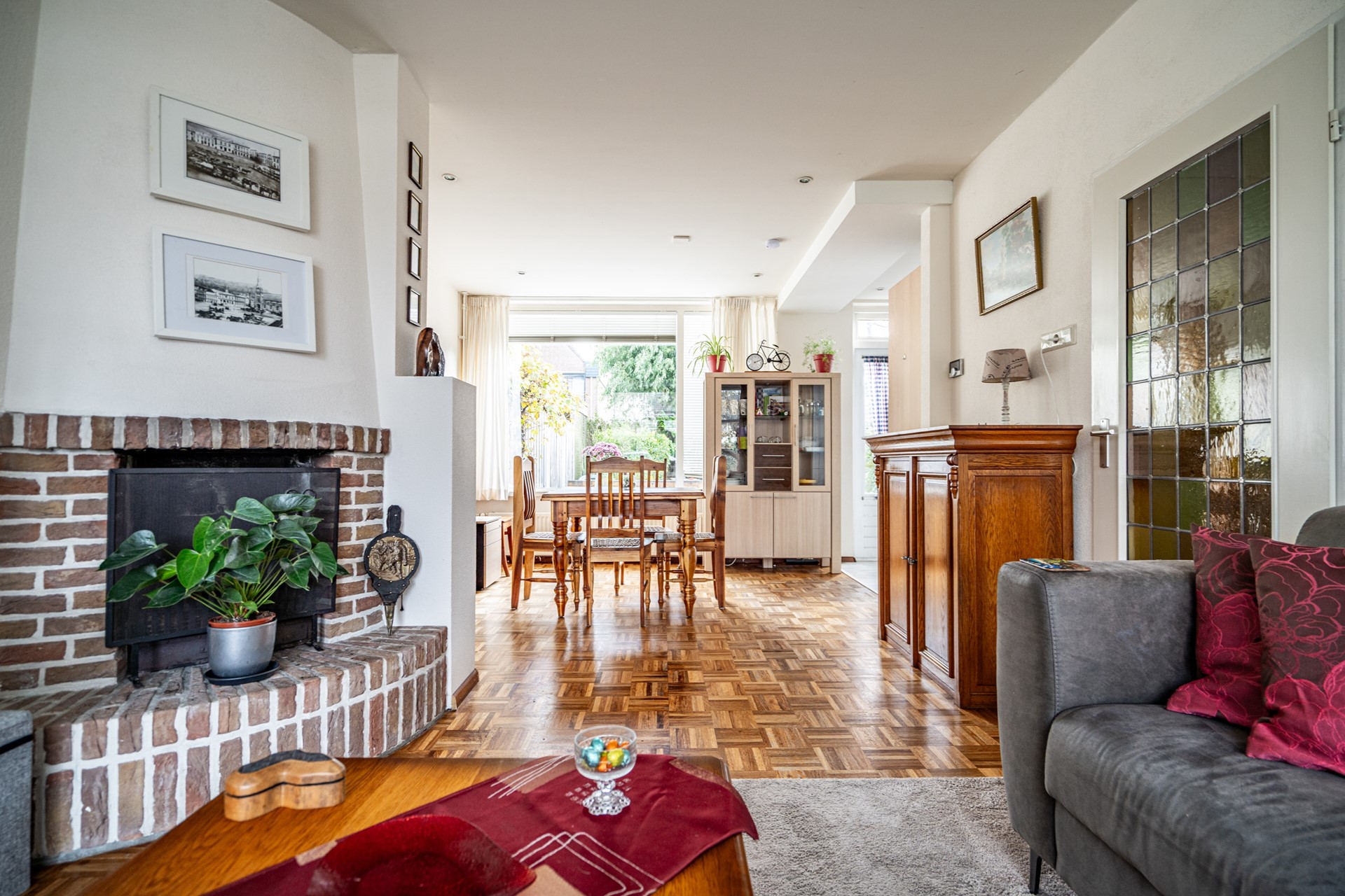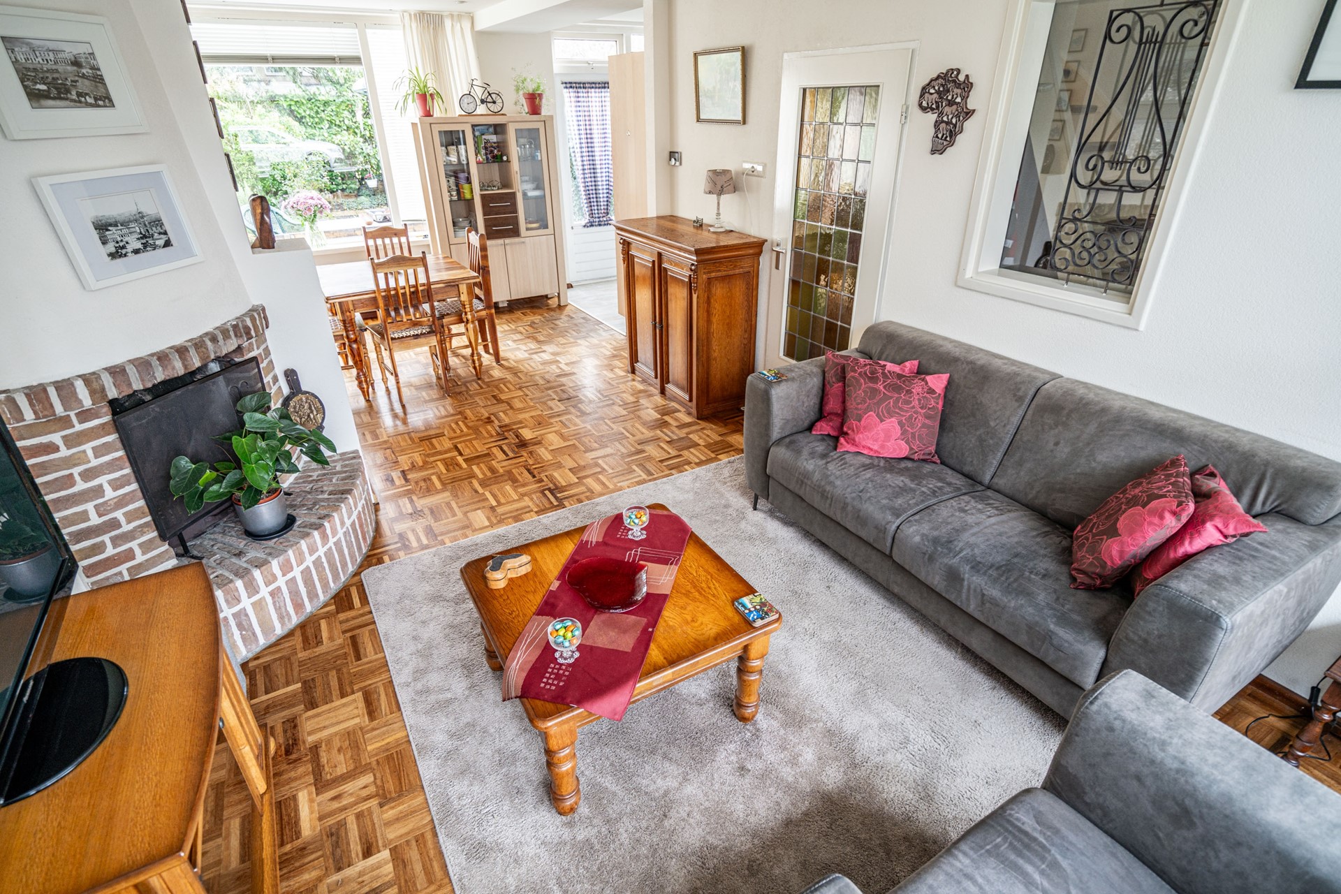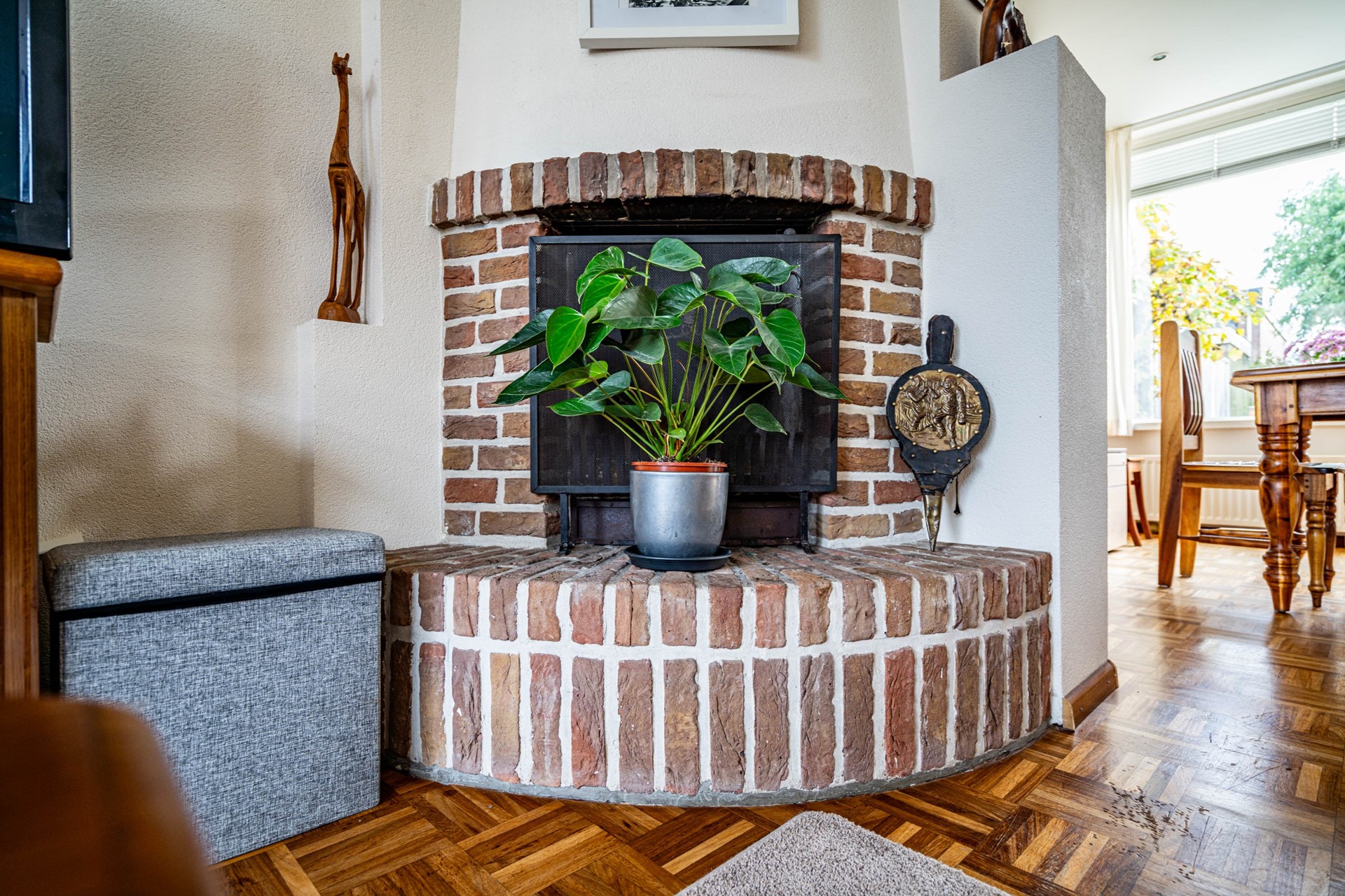 Via de diepe voortuin betreed je de woning en stap je binnen in de lichte woonkamer. De grote ramen aan de voorzijde zorgen voor een prettige lichtinval én een vrij uitzicht op de groene voortuin. De centraal geplaatste open haard vormt een sfeervol middelpunt tussen de zit- en eethoek en geeft de ruimte een warme, huiselijke uitstraling.