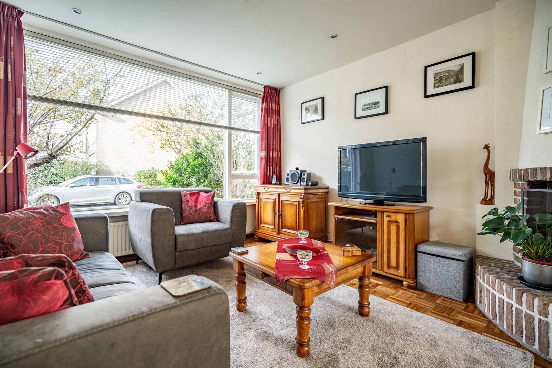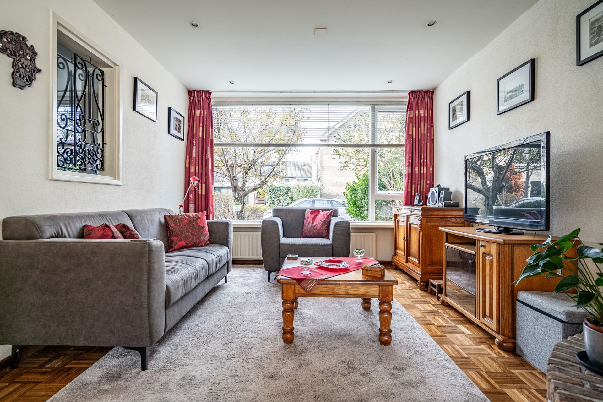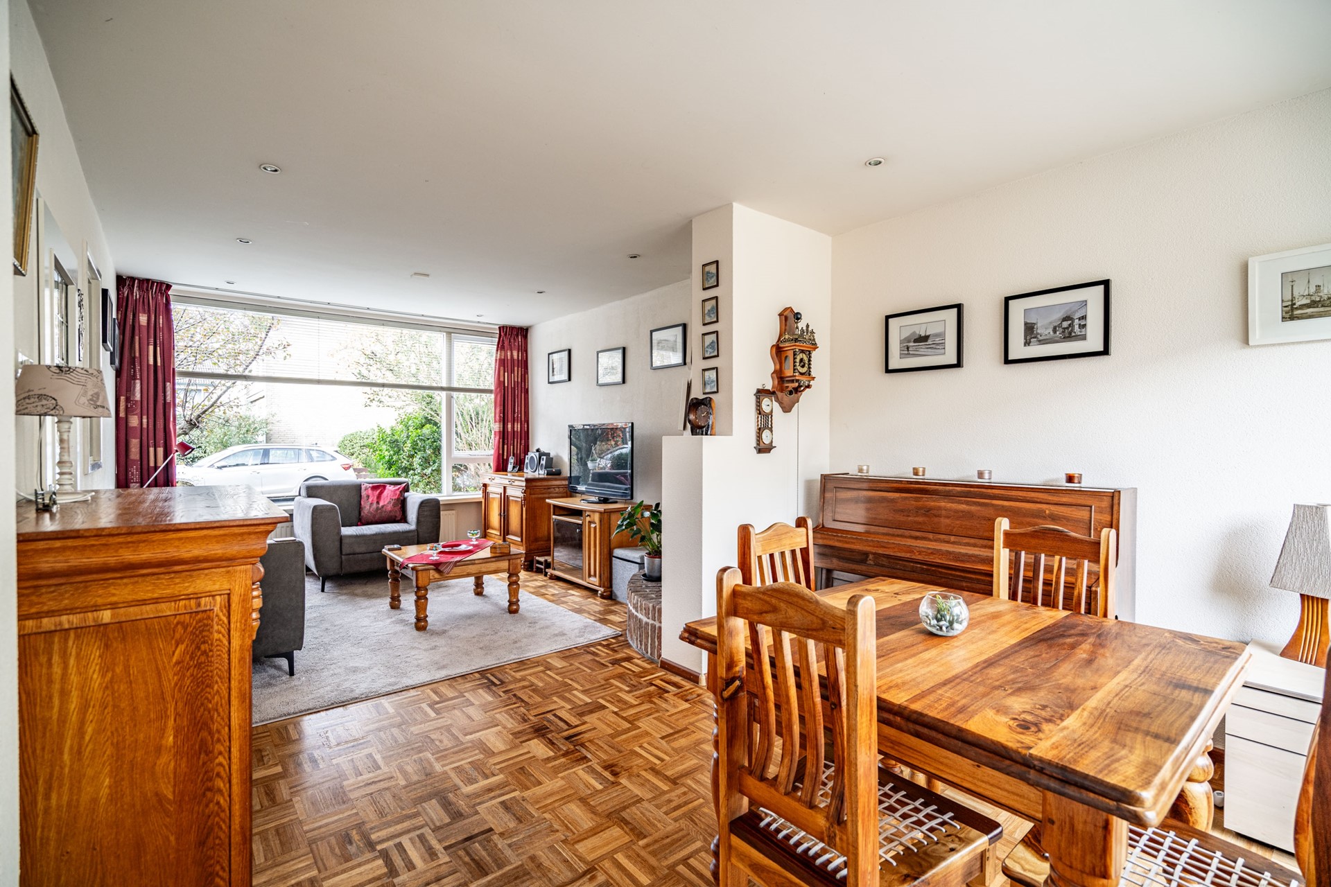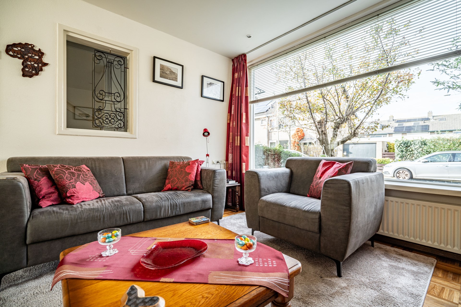 Via de diepe voortuin betreed je de woning en stap je binnen in de lichte woonkamer. De grote ramen aan de voorzijde zorgen voor een prettige lichtinval én een vrij uitzicht op de groene voortuin. De centraal geplaatste open haard vormt een sfeervol middelpunt tussen de zit- en eethoek en geeft de ruimte een warme, huiselijke uitstraling.