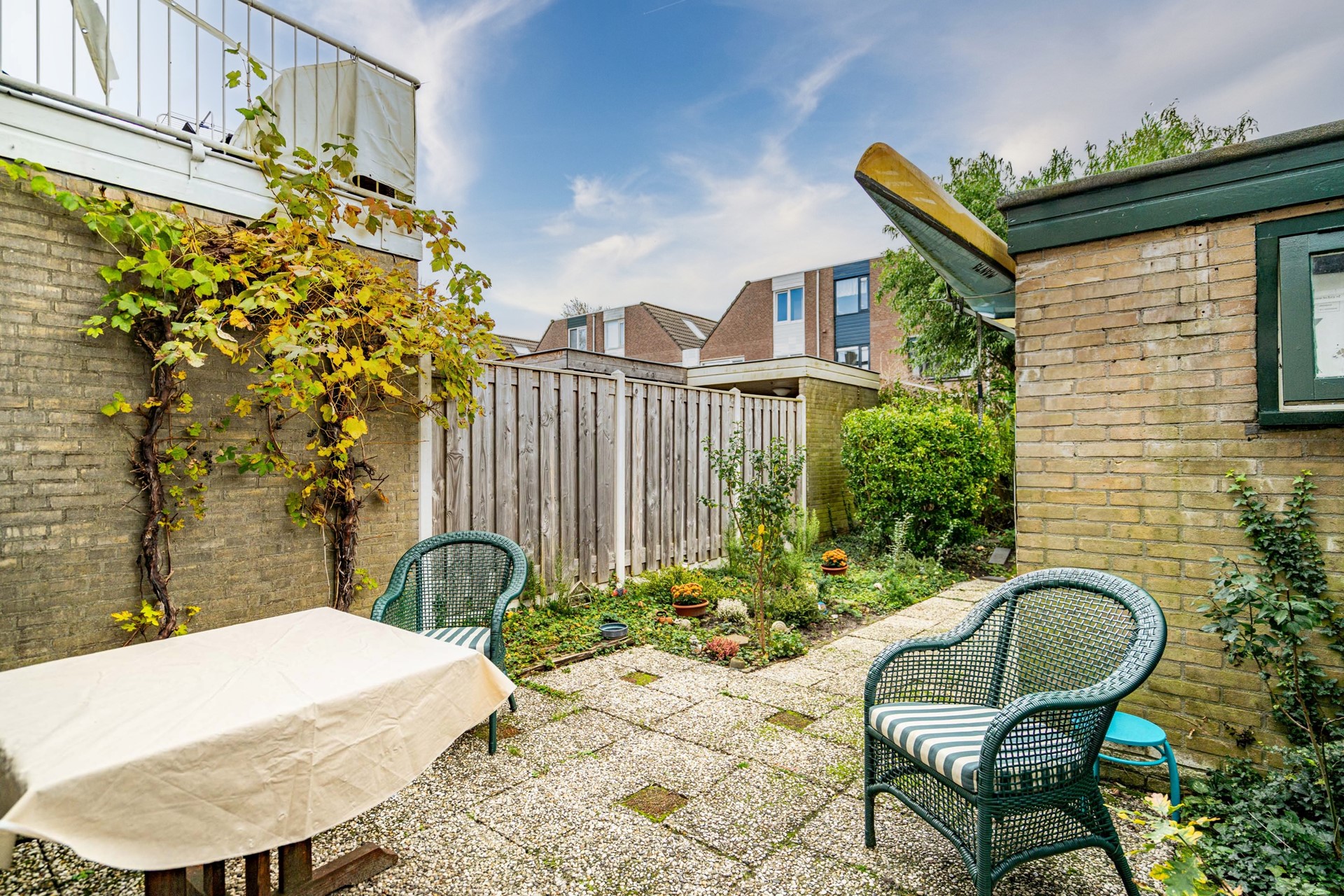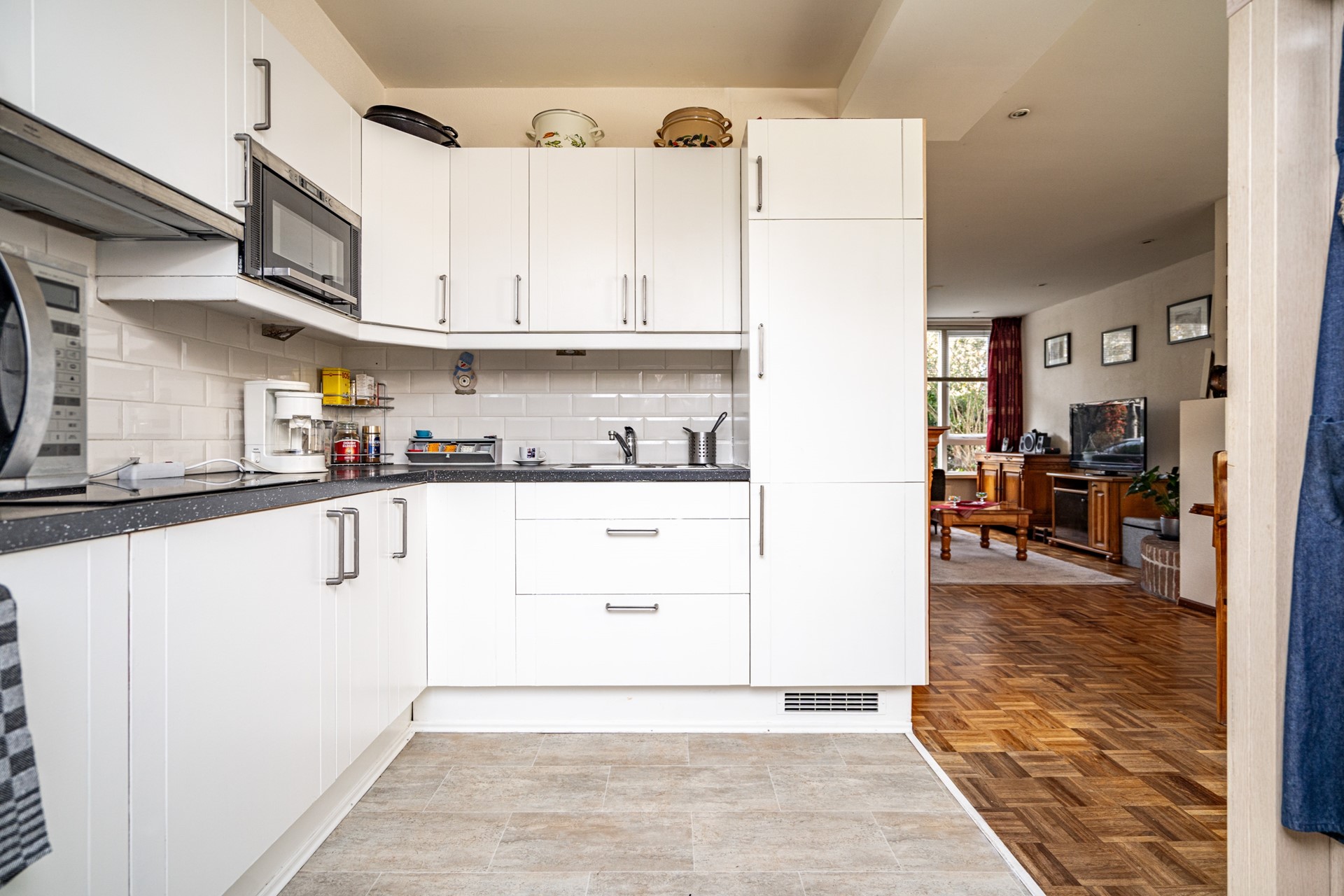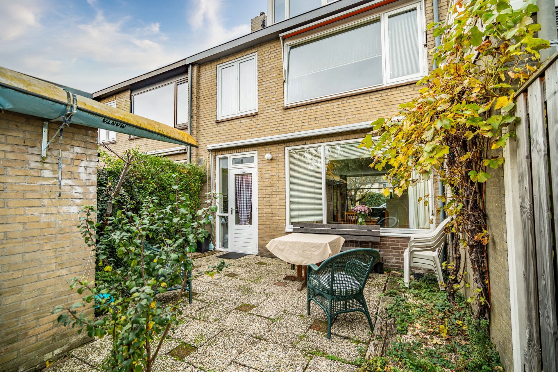 Aan de achterzijde ligt de open keuken, voorzien van diverse inbouwapparatuur zoals een vaatwasser, keramische kookplaat, koel-vriescombinatie en afzuigkap. Vanuit hier loop je zo de zonnige achtertuin in: een diepe, veelzijdige buitenruimte waar je dankzij de goede ligging altijd wel een plek in de zon of schaduw vindt. Met een achterom en berging is het bovendien praktisch ingericht. De tuin biedt volop mogelijkheden om geheel naar eigen wens opnieuw in te richten of zelfs uit te bouwen.