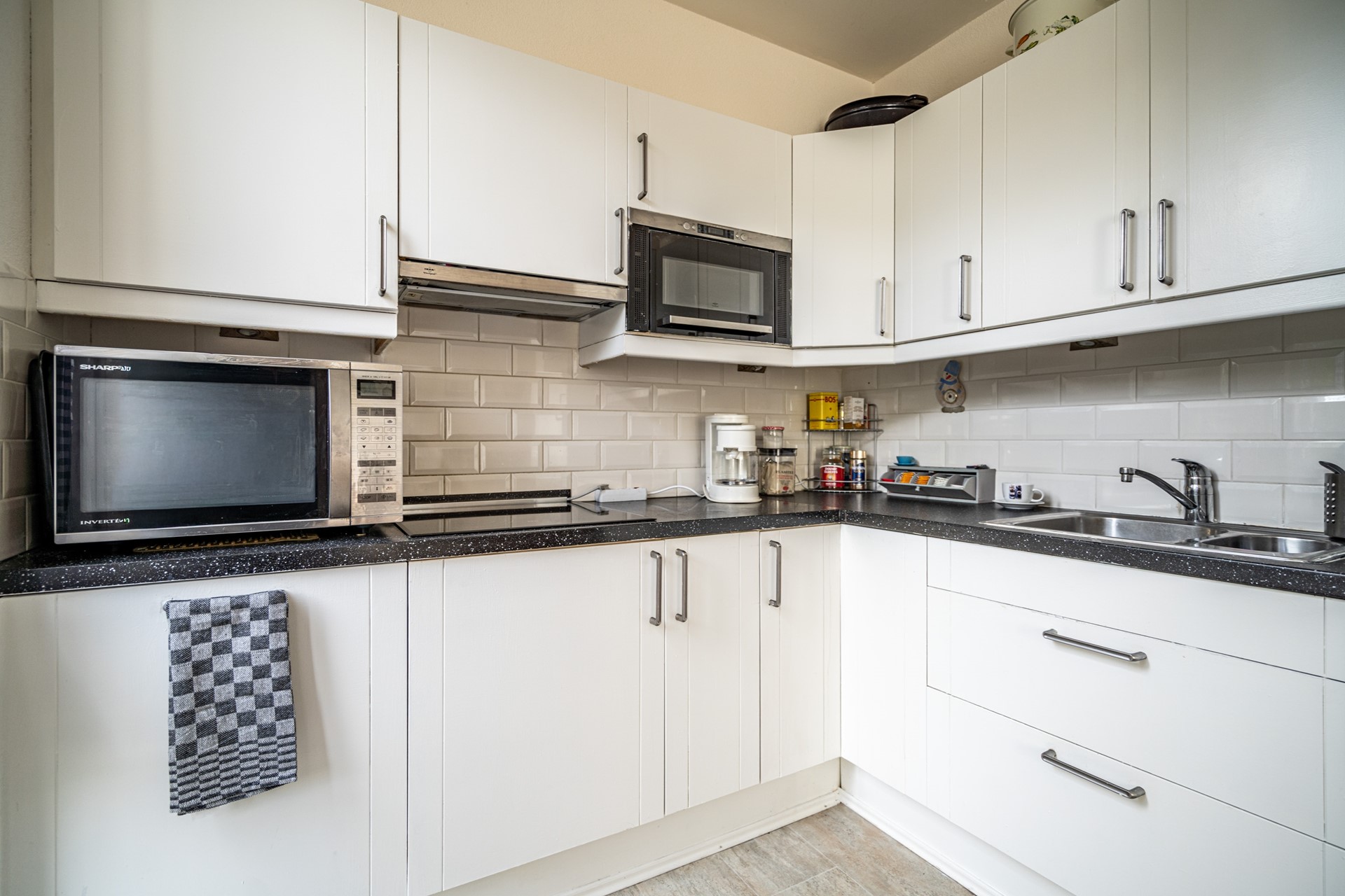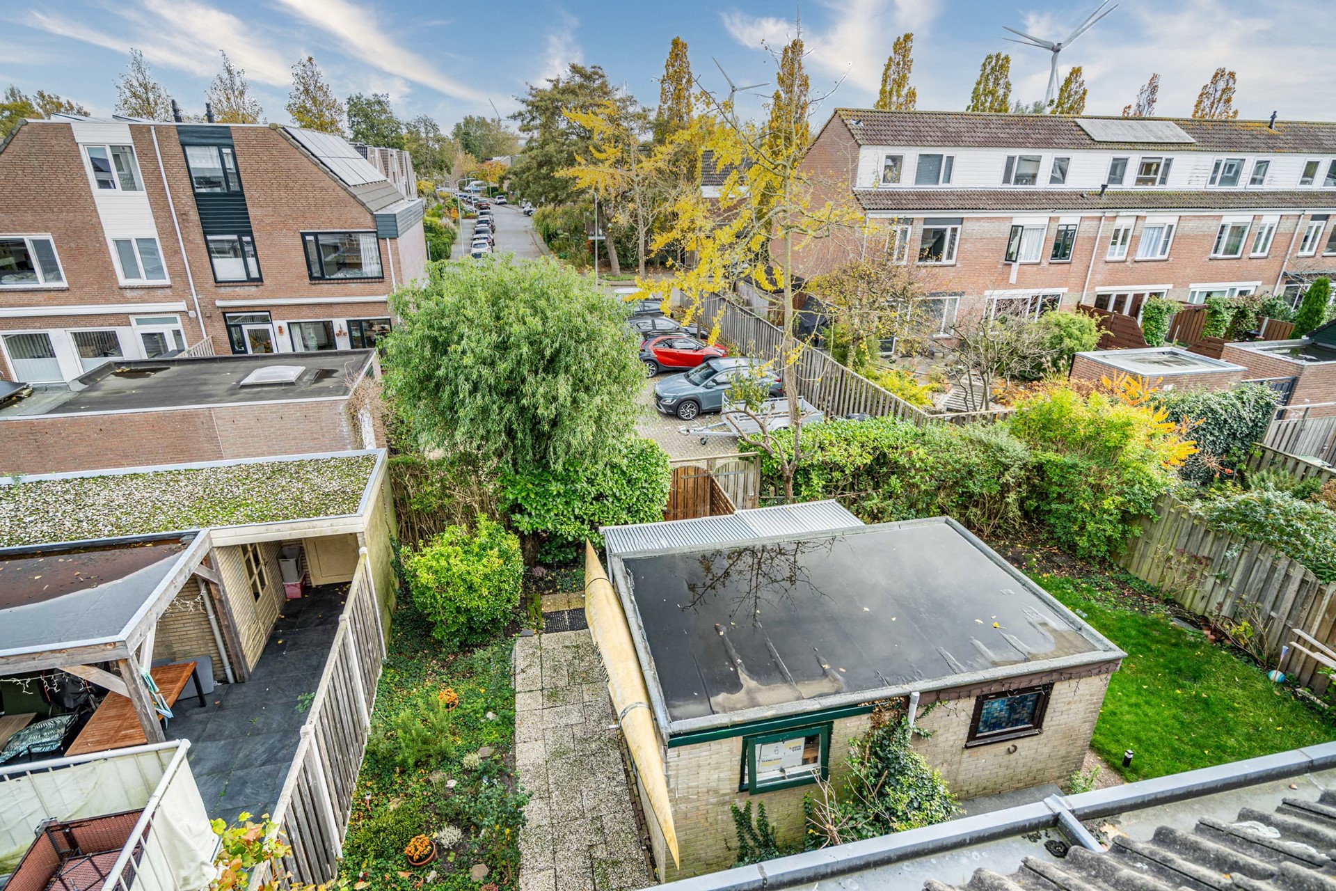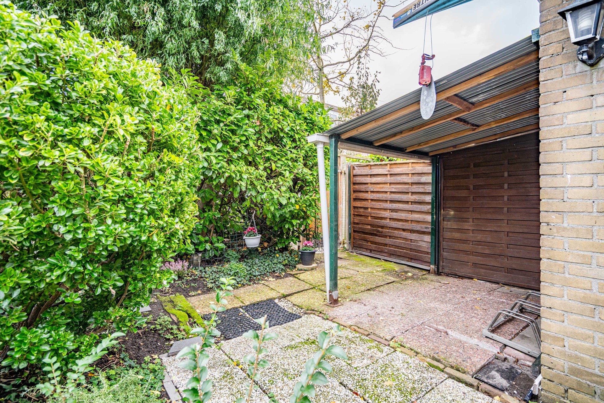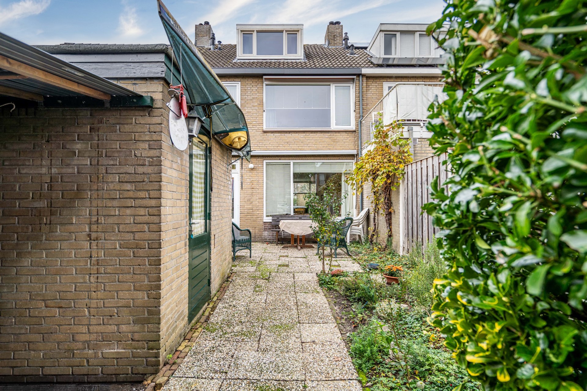 Aan de achterzijde ligt de open keuken, voorzien van diverse inbouwapparatuur zoals een vaatwasser, keramische kookplaat, koel-vriescombinatie en afzuigkap. Vanuit hier loop je zo de zonnige achtertuin in: een diepe, veelzijdige buitenruimte waar je dankzij de goede ligging altijd wel een plek in de zon of schaduw vindt. Met een achterom en berging is het bovendien praktisch ingericht. De tuin biedt volop mogelijkheden om geheel naar eigen wens opnieuw in te richten of zelfs uit te bouwen.