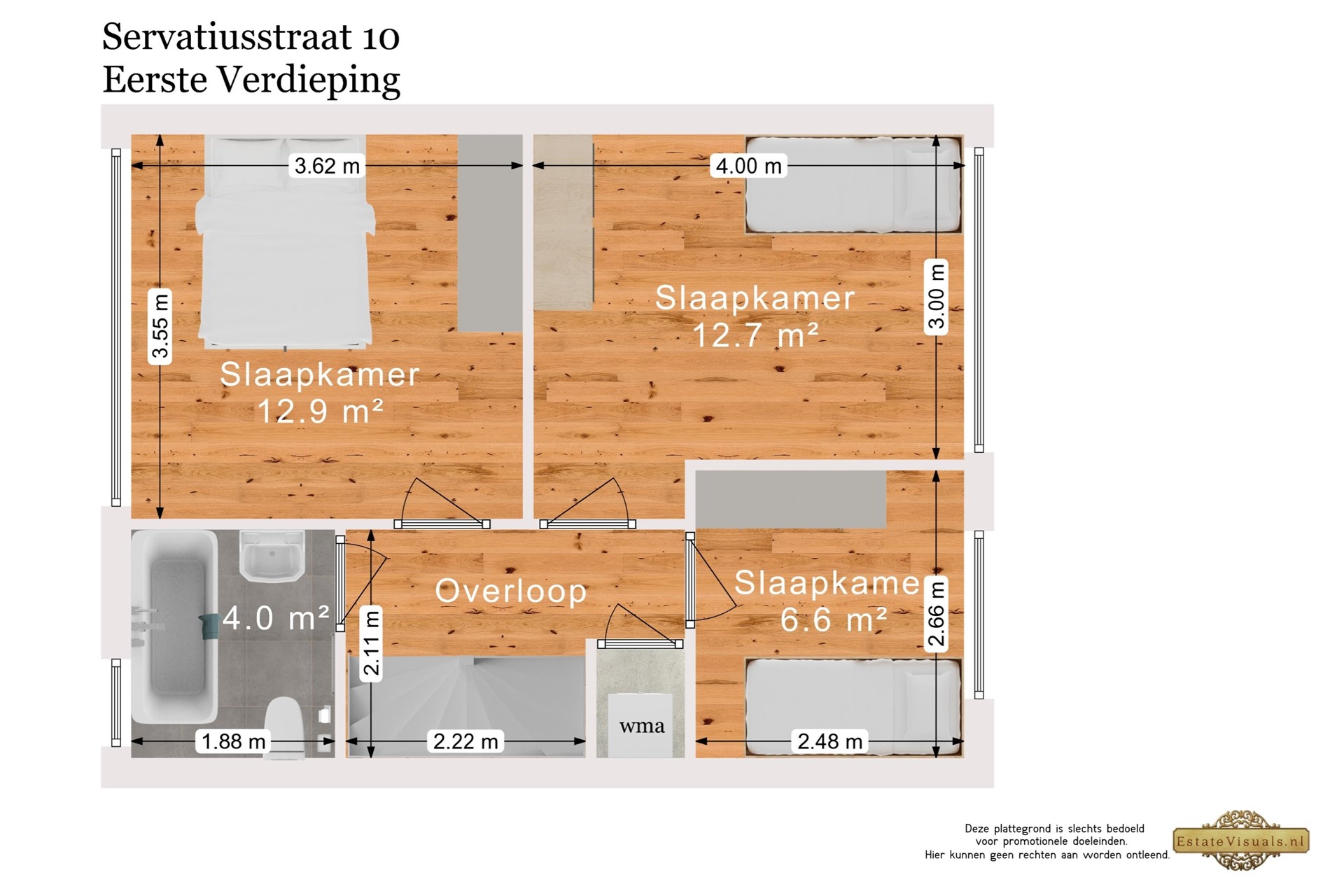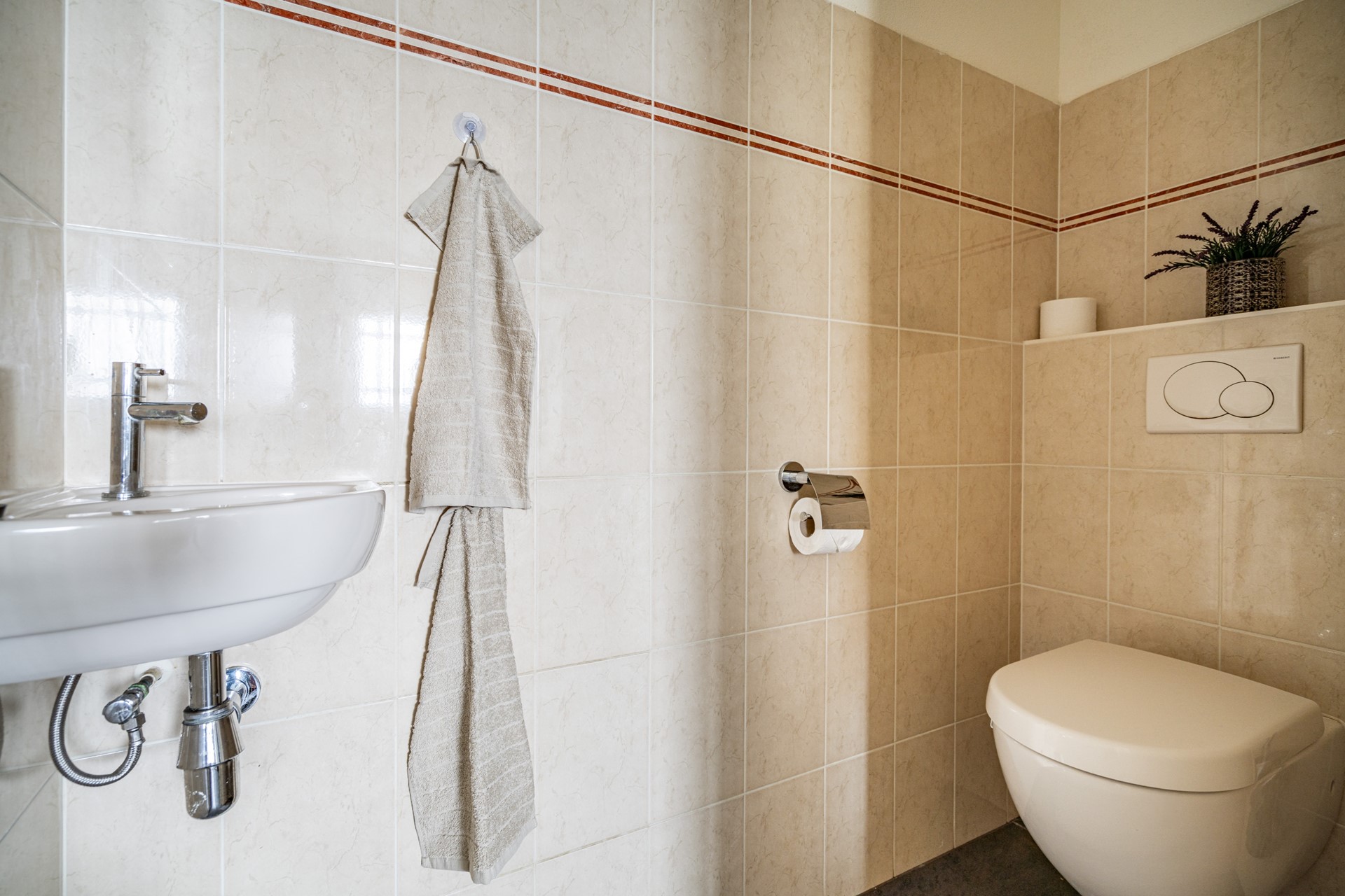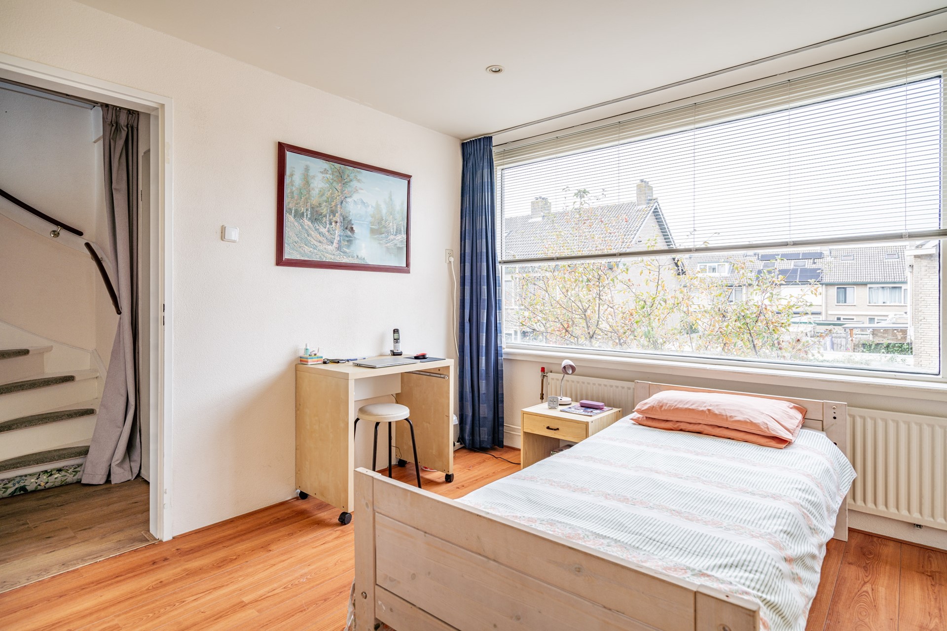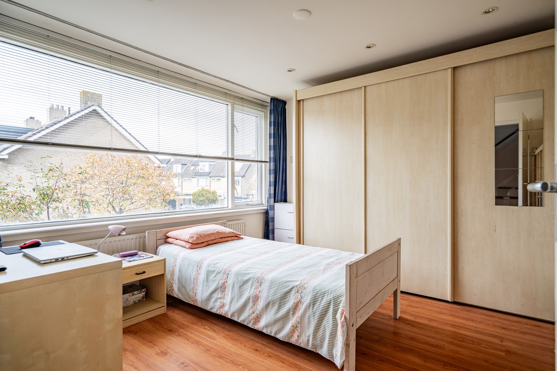 De eerste verdieping beschikt over twee ruime slaapkamers én een derde, kleinere kamer. De twee grote slaapkamers zijn allebei voorzien van royale vaste kastenwanden, ideaal voor extra opbergruimte. Aan de voorzijde ligt de badkamer met ligbad, toilet, wastafel en een raam dat zorgt voor veel aangenaam daglicht.